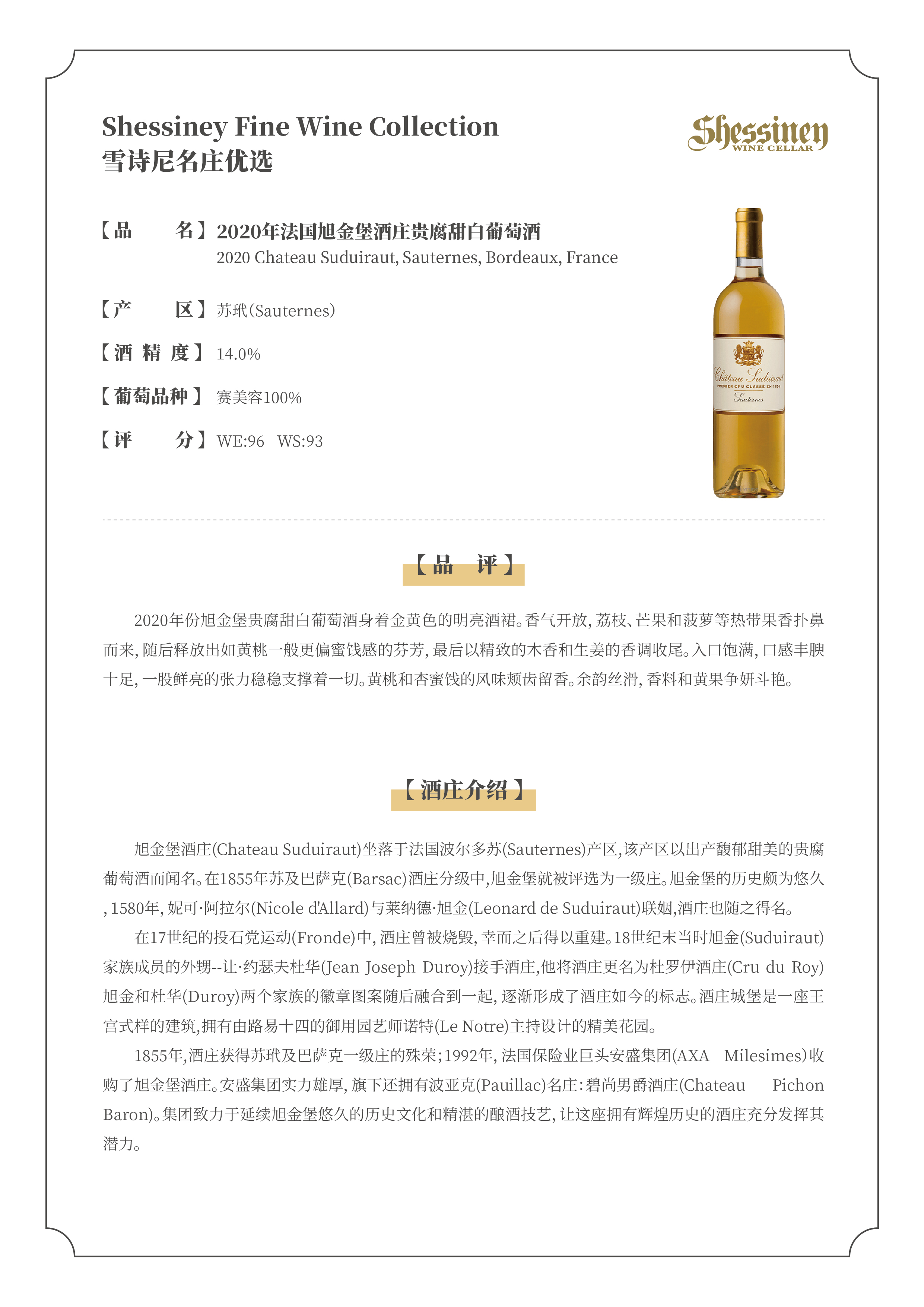 法国旭金堡酒庄贵腐甜白葡萄酒2009/2020