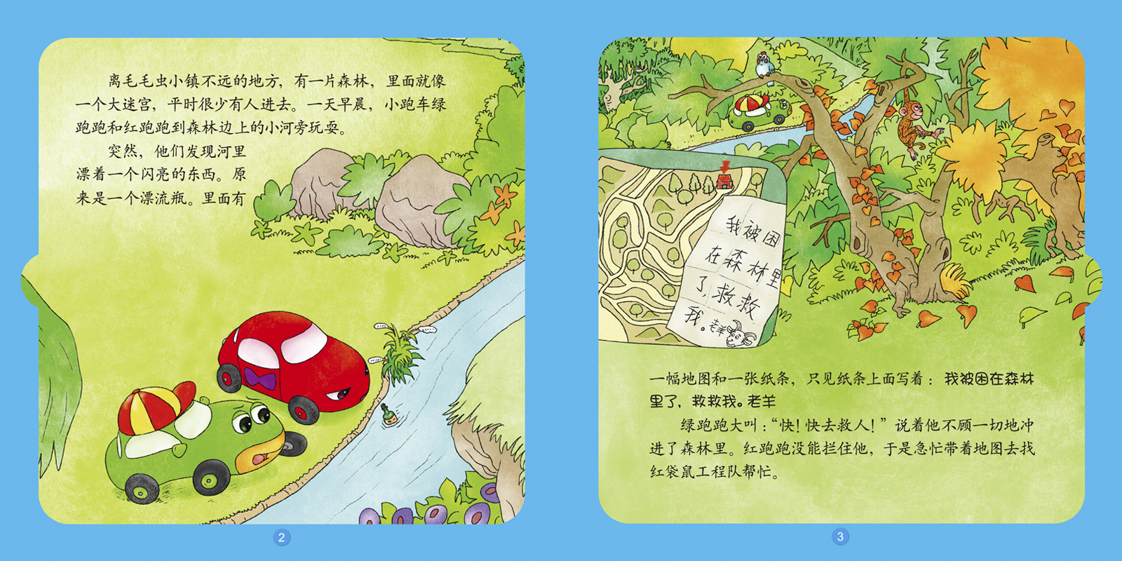 一天早晨,红跑跑和绿跑跑在森林边的小河里发现了一个漂流瓶,里面有一张求救的纸条。绿跑跑不顾一切地冲进了森林,红跑跑则去找红袋鼠工程队帮忙。在工程队的帮助下,他们一步步靠近了求救的对象。他们最终能成功解救漂流瓶的发出者吗?