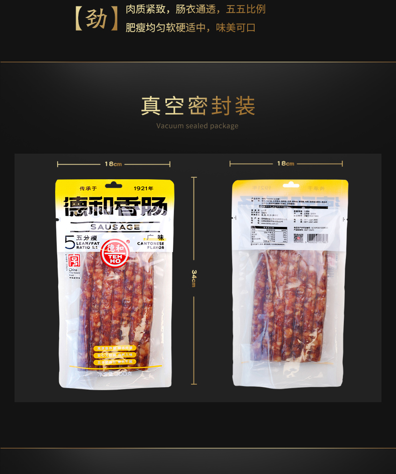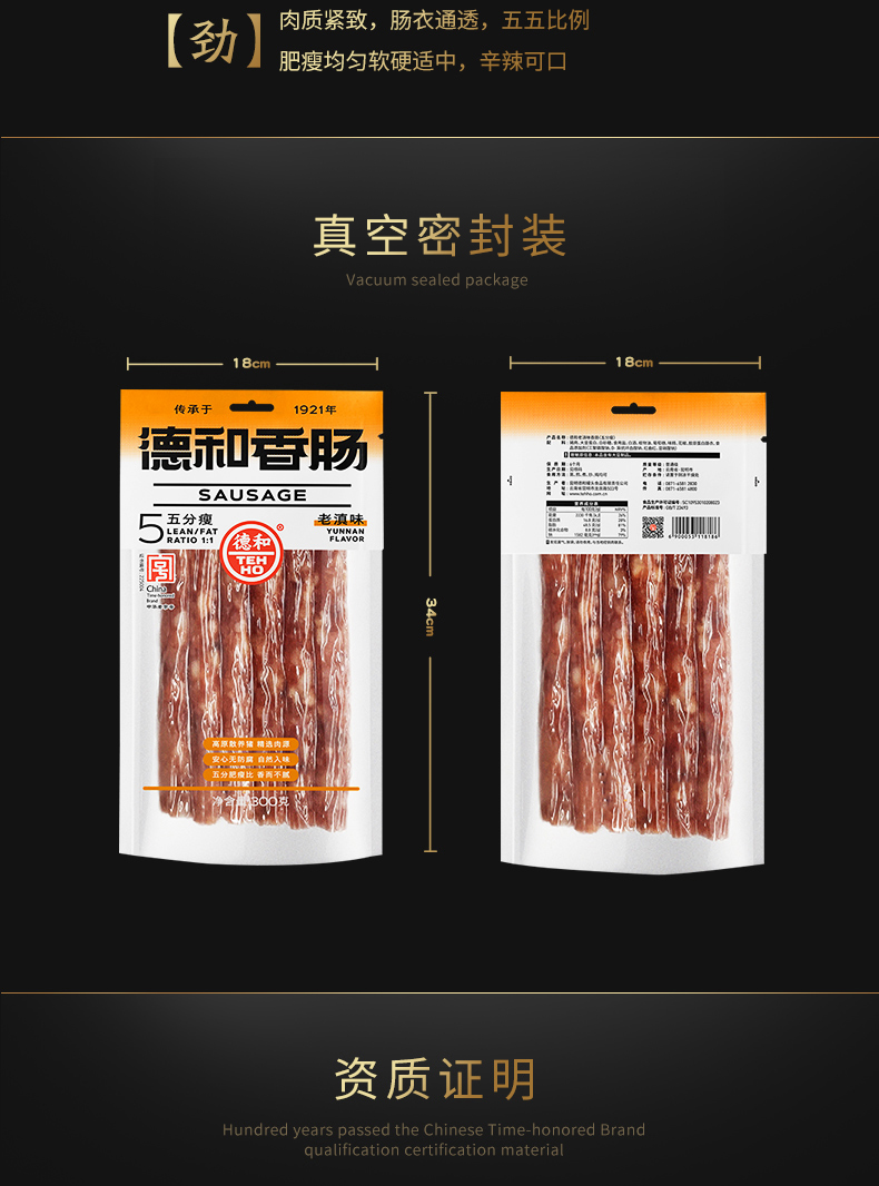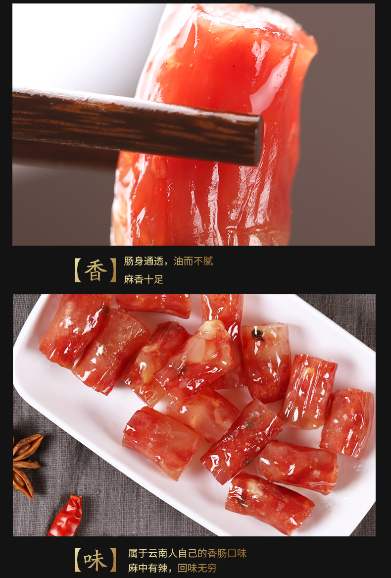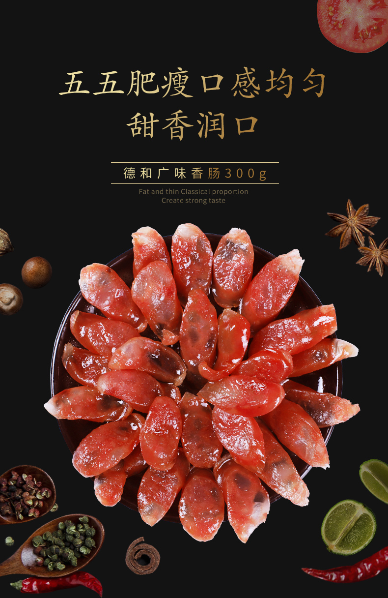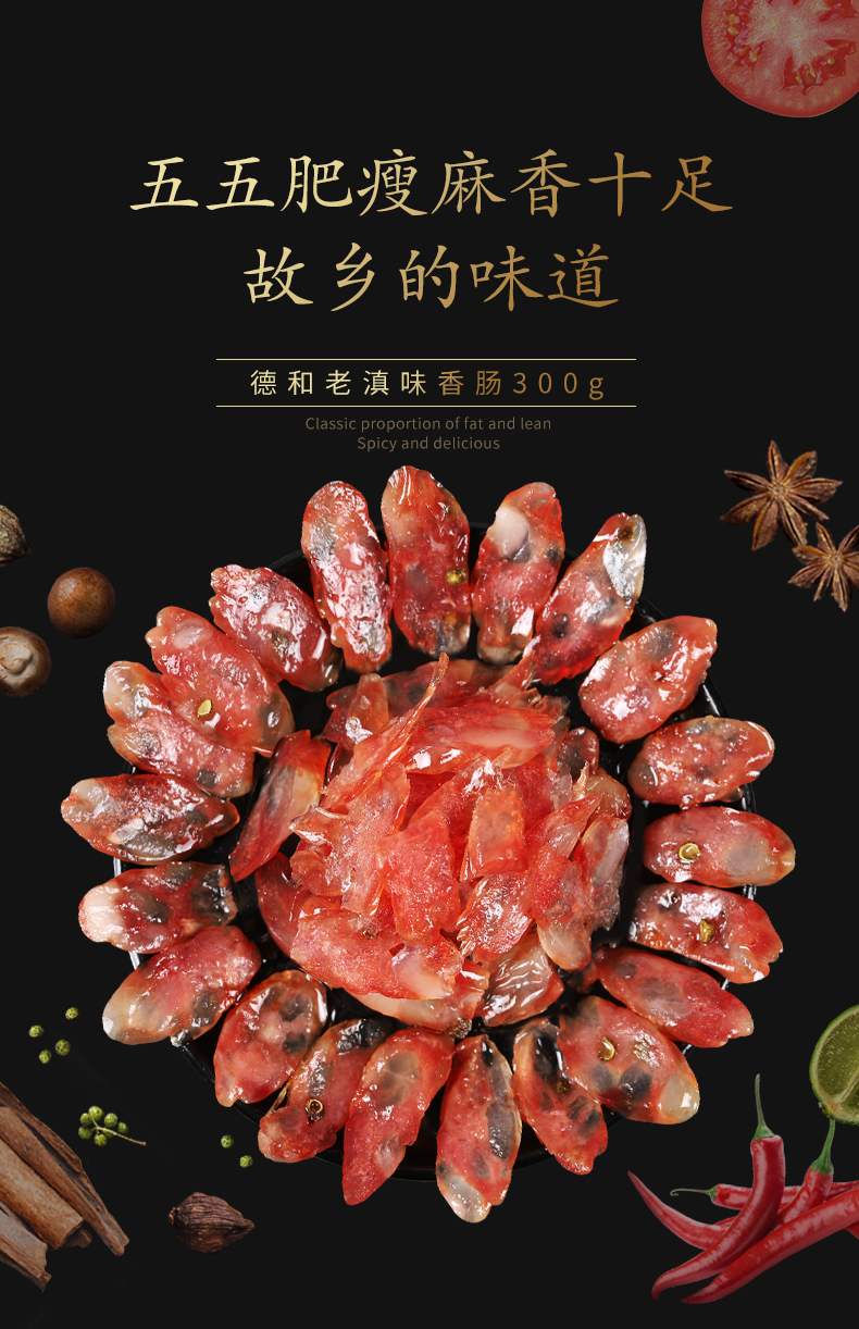 德和五分瘦 老滇味 广味 麻辣味香肠腊肠300g/袋 腊味 年味#腌腊