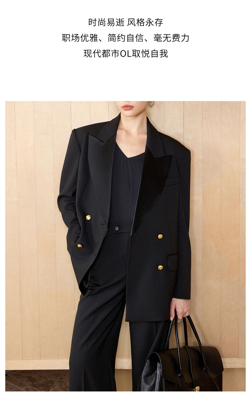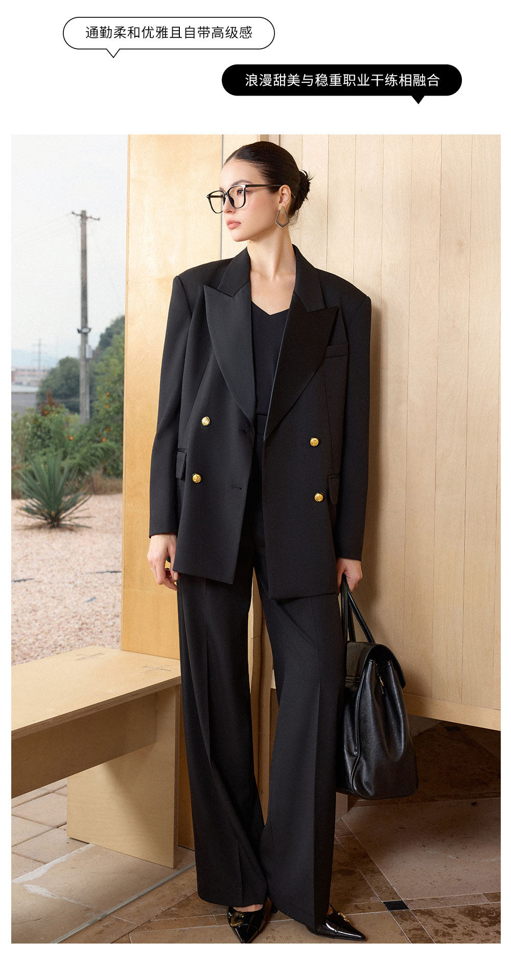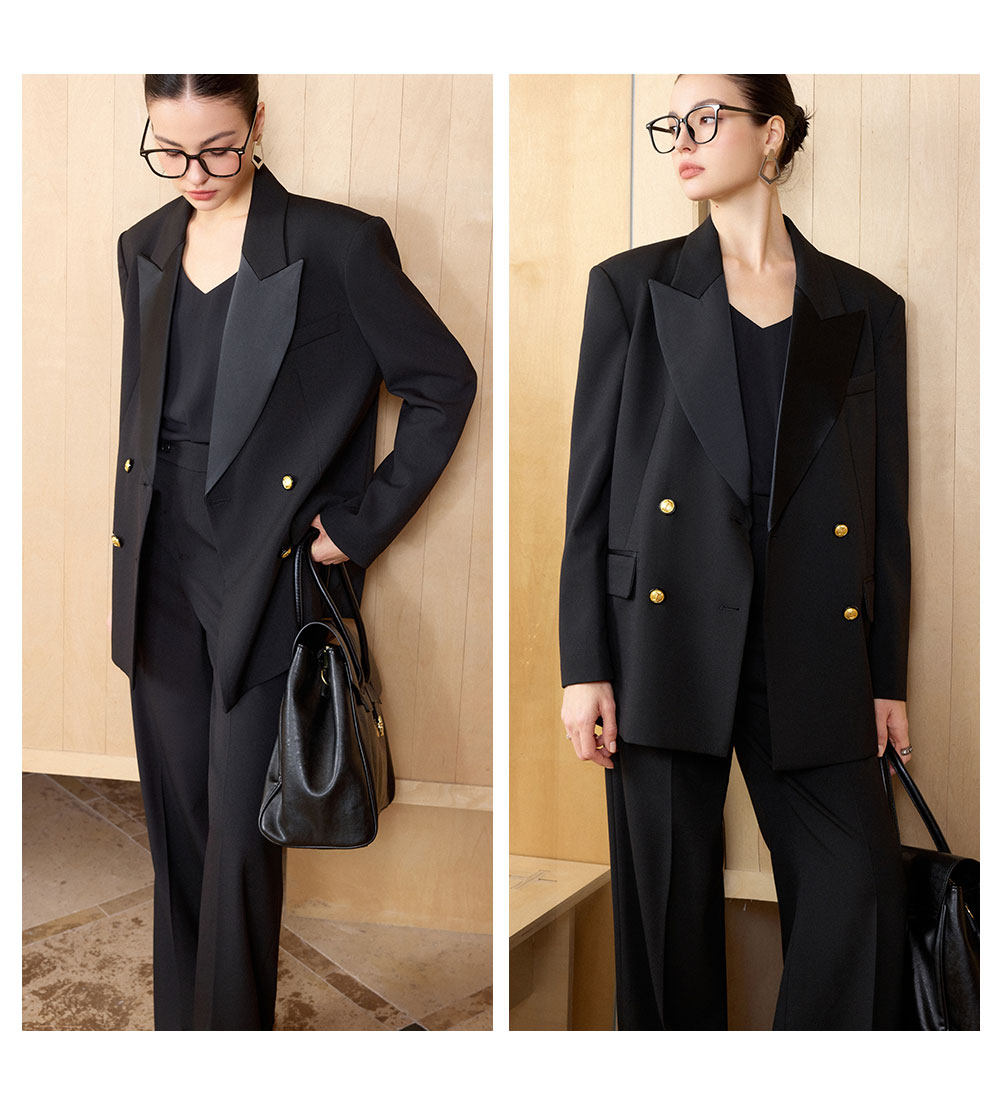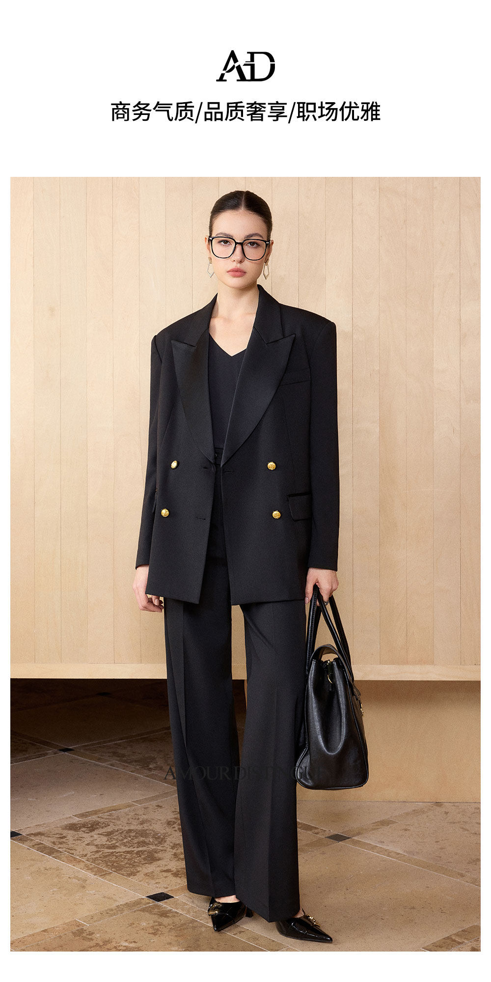 AD气质老钱风黑色双排扣西装套装女职业装阔形商务正装长裤2026春
