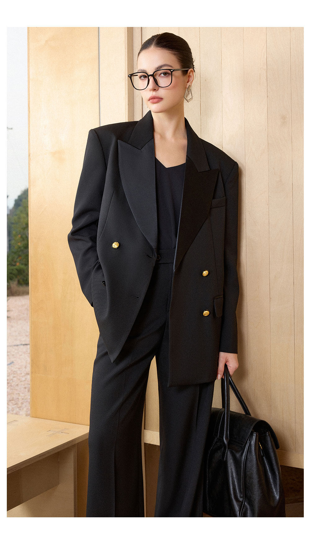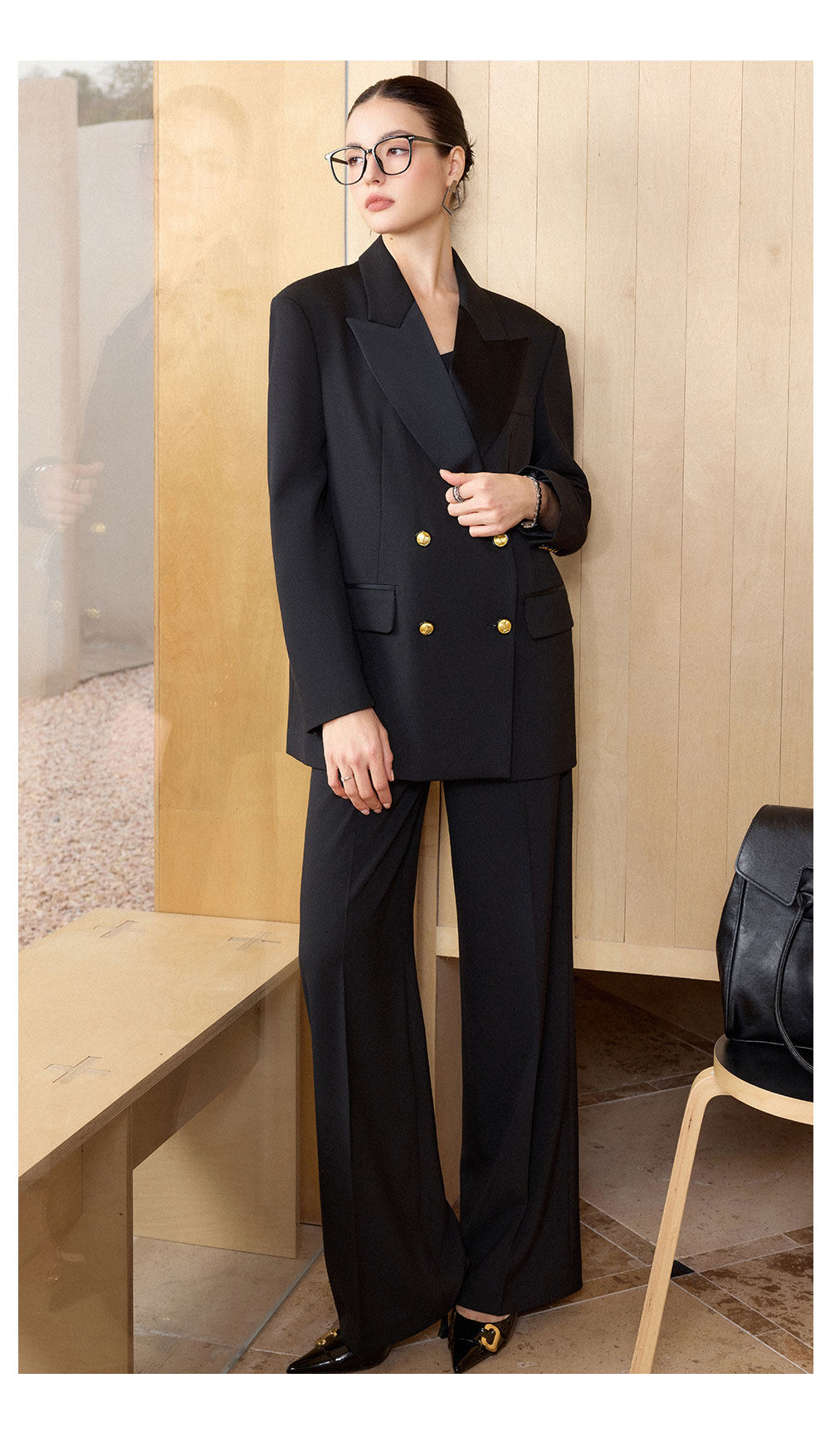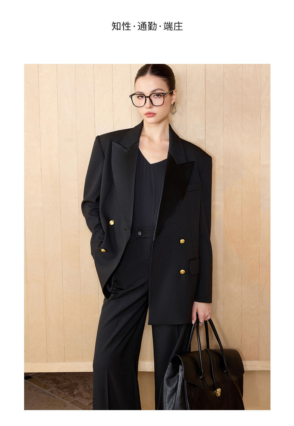 AD气质老钱风黑色双排扣西装套装女职业装阔形商务正装长裤2026春