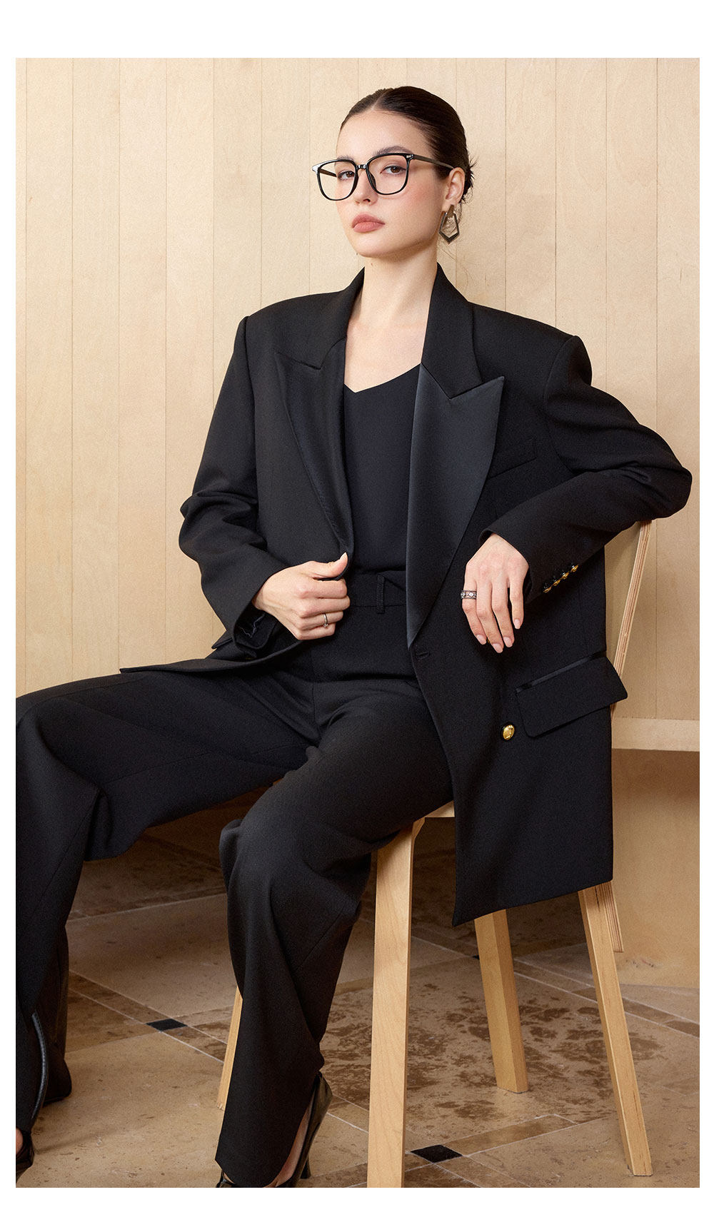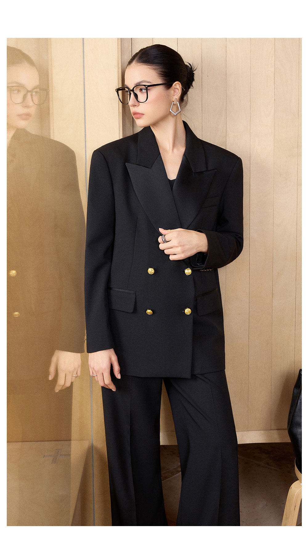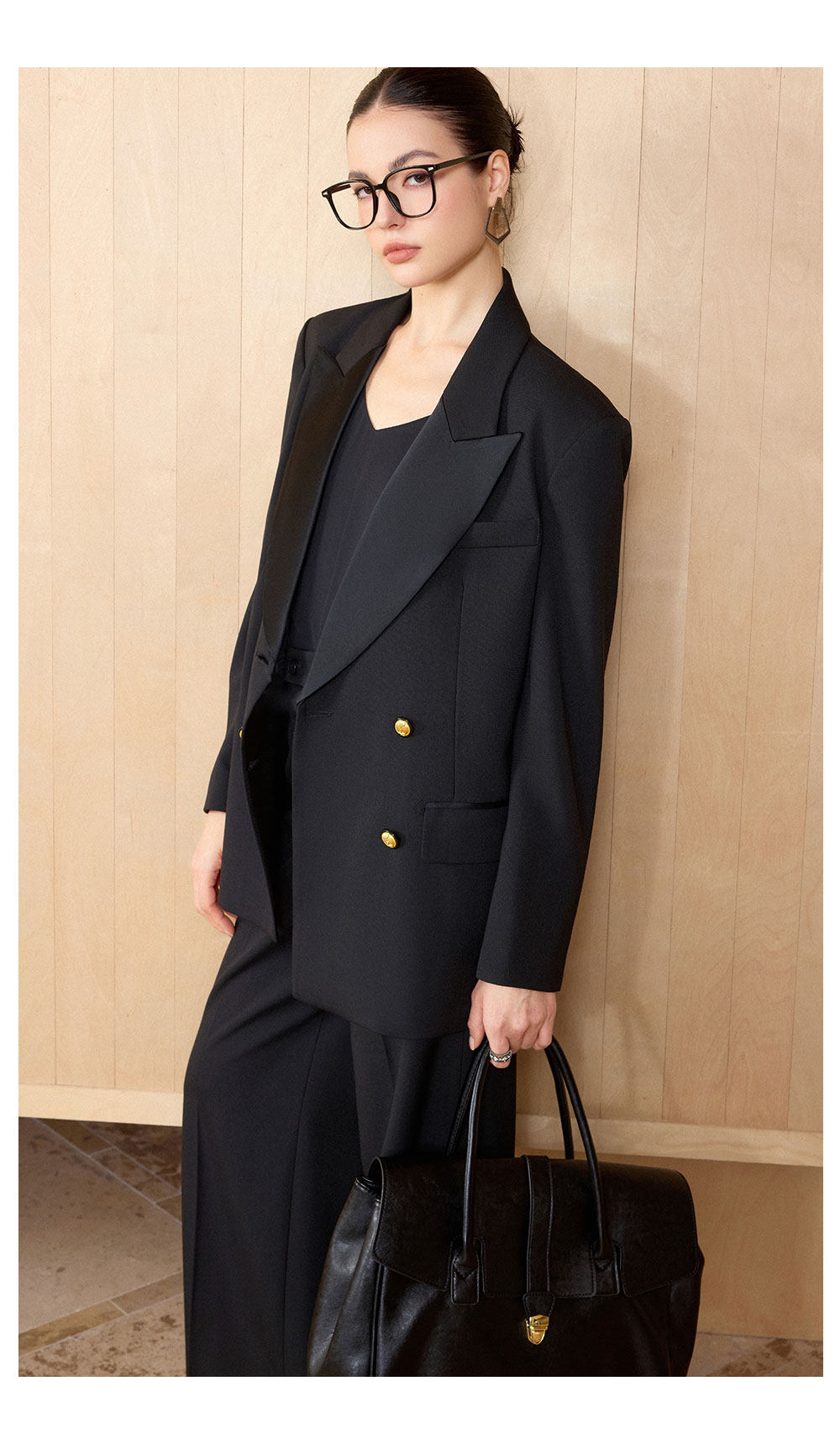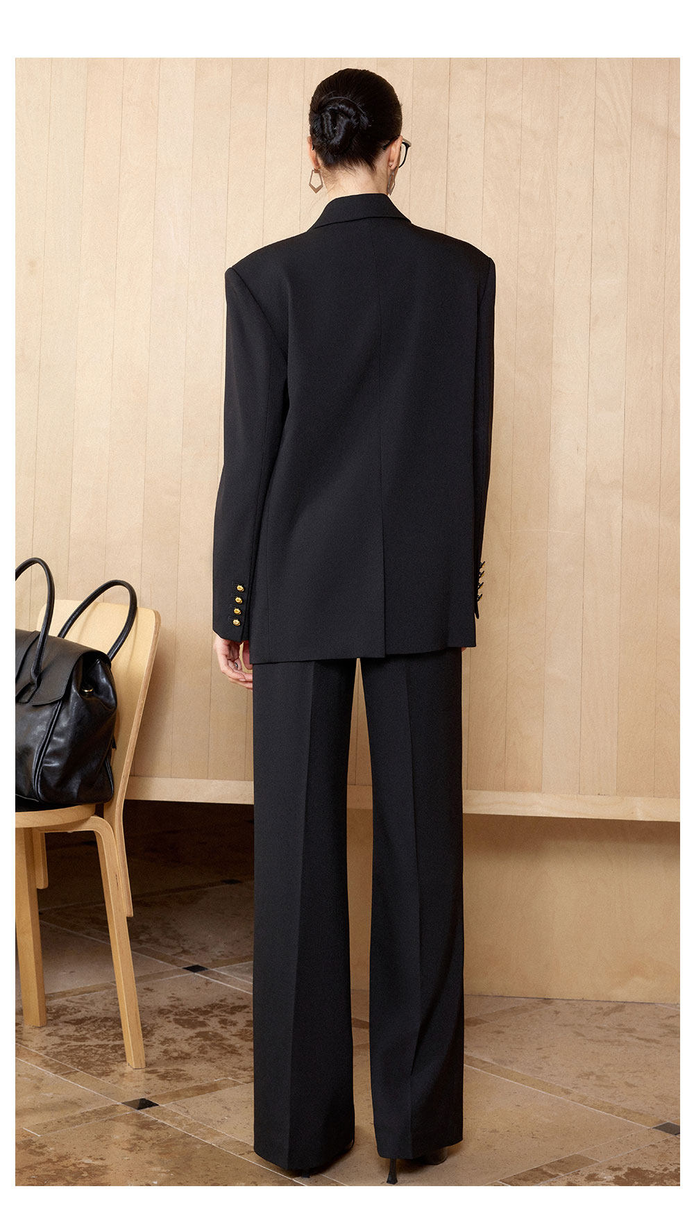 AD气质老钱风黑色双排扣西装套装女职业装阔形商务正装长裤2026春