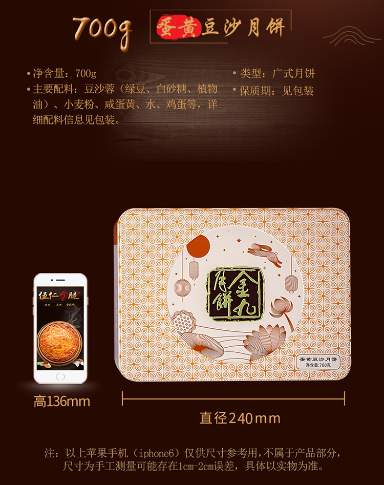 吴川金九月饼蛋黄豆沙中秋送礼团购手工传统广式大月饼礼盒700g