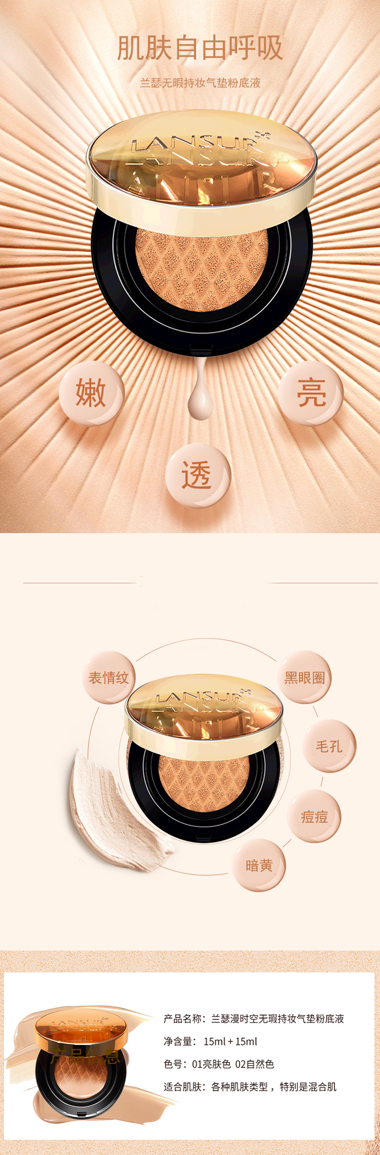 兰瑟漫时空无暇持妆气垫粉底液1#(15ml+15ml)【30162020】