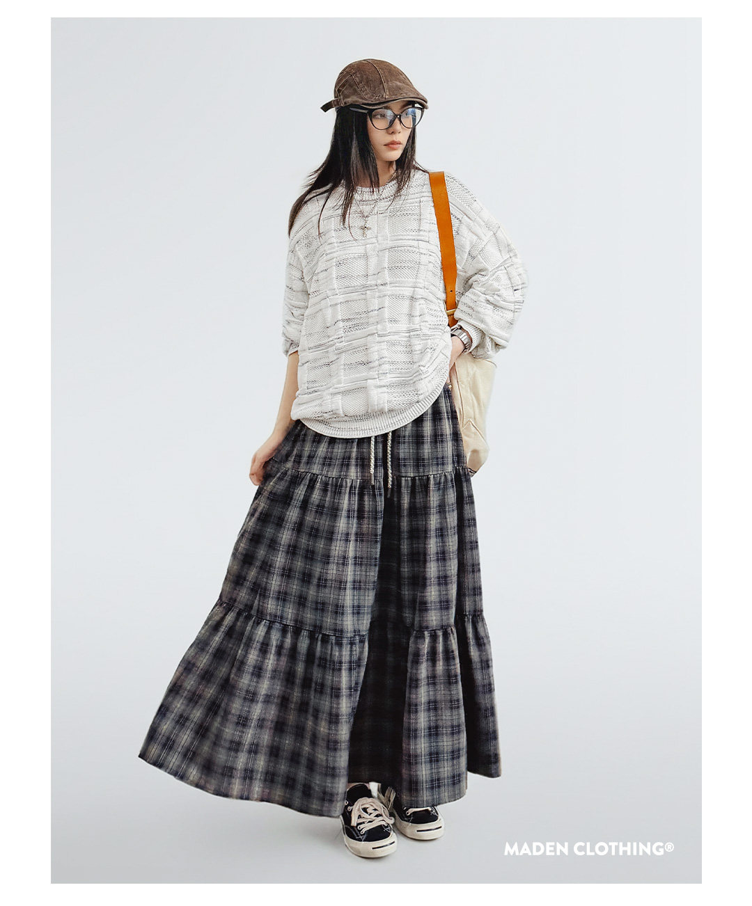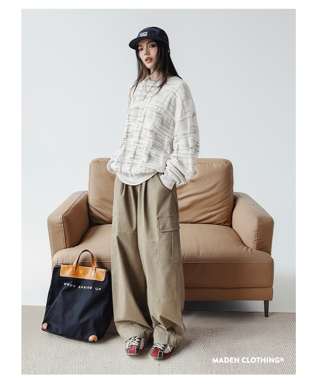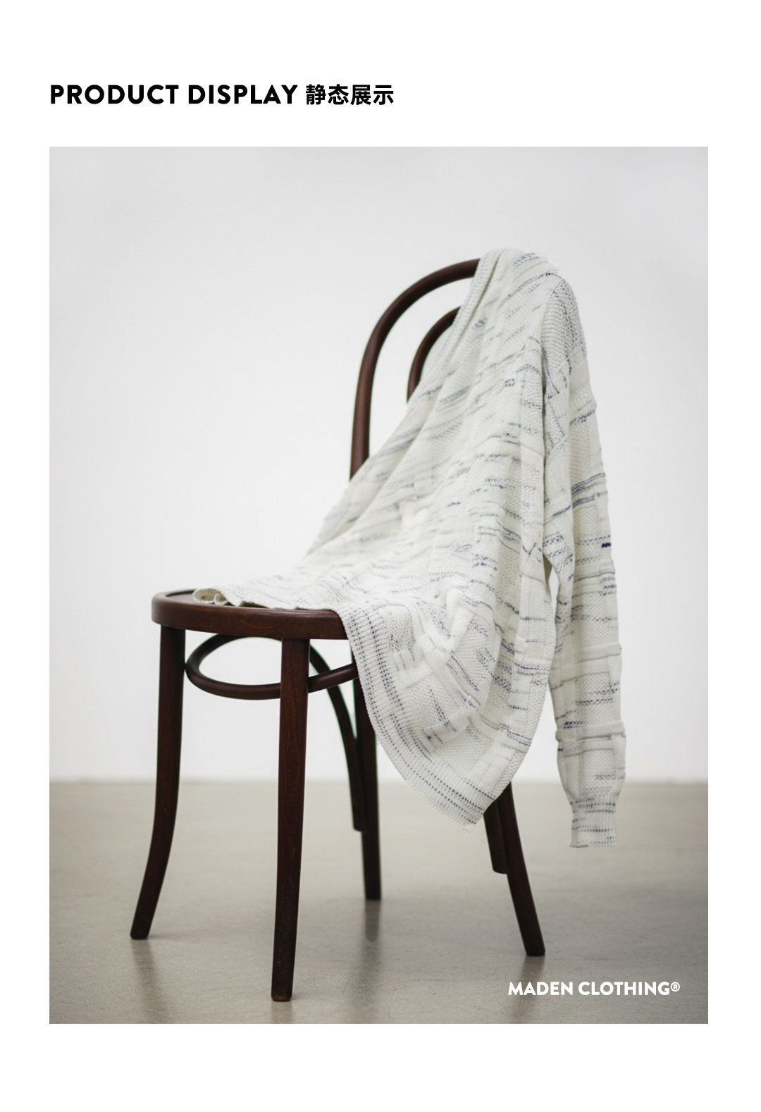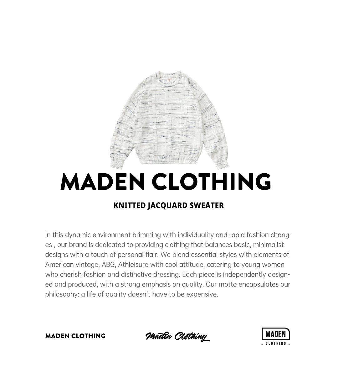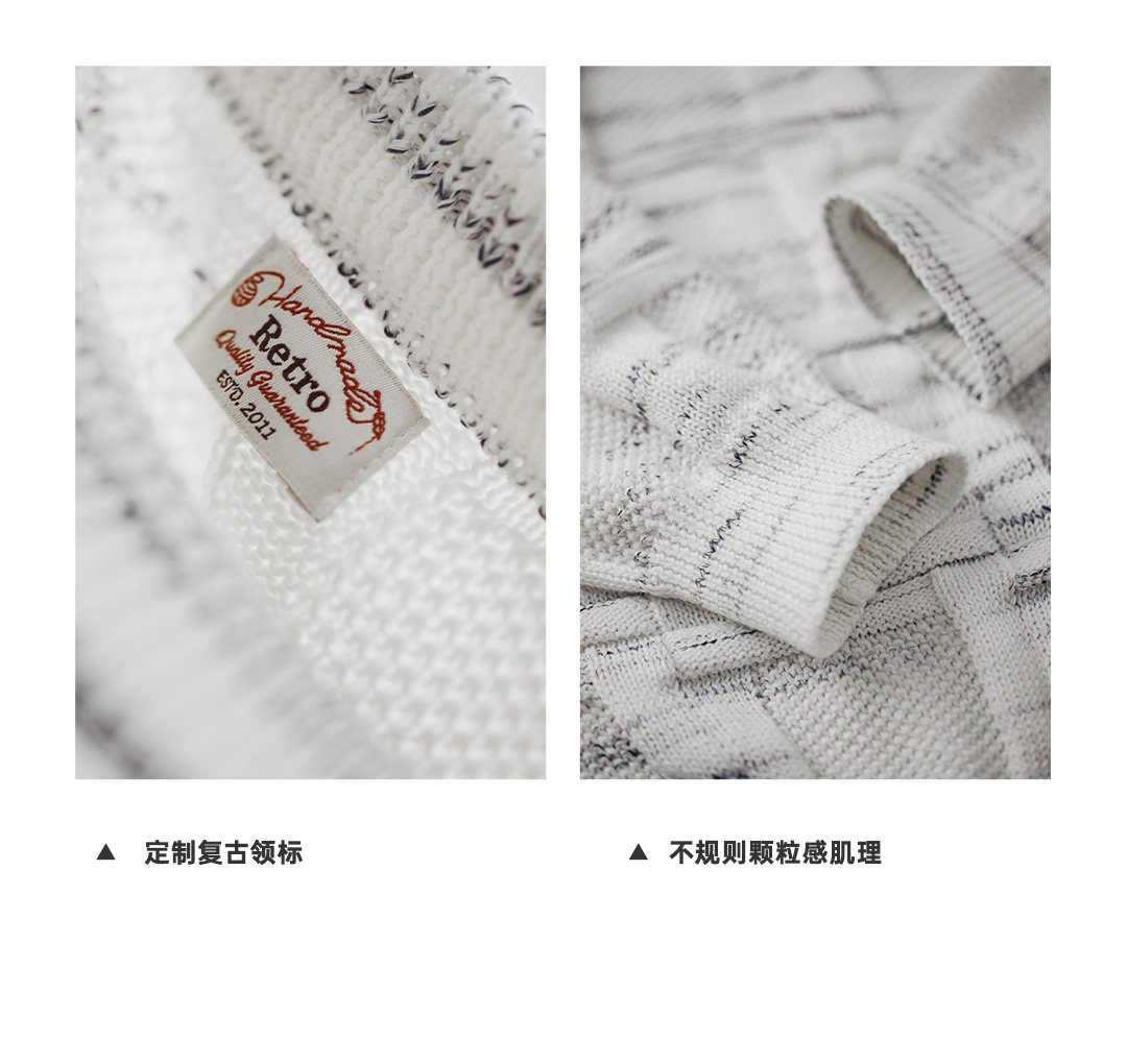 马登美式复古宽松肌理感圆领套头撞色针织条纹提花内搭毛衣女士春