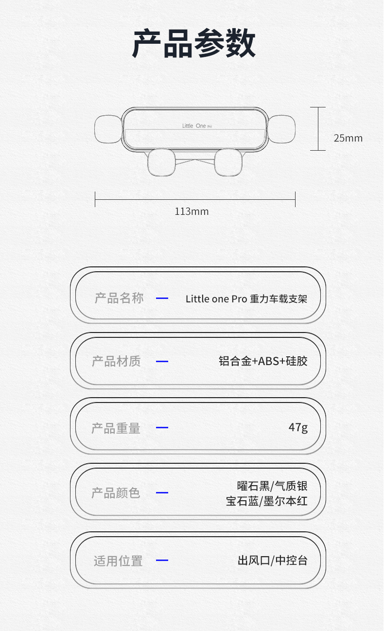 爱丽新幻影 little one 隐形伸缩重力车载支架 出风口车载手机架