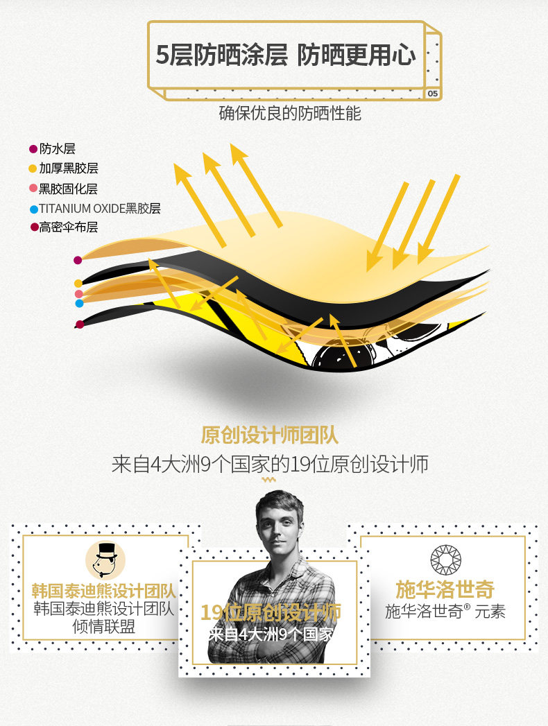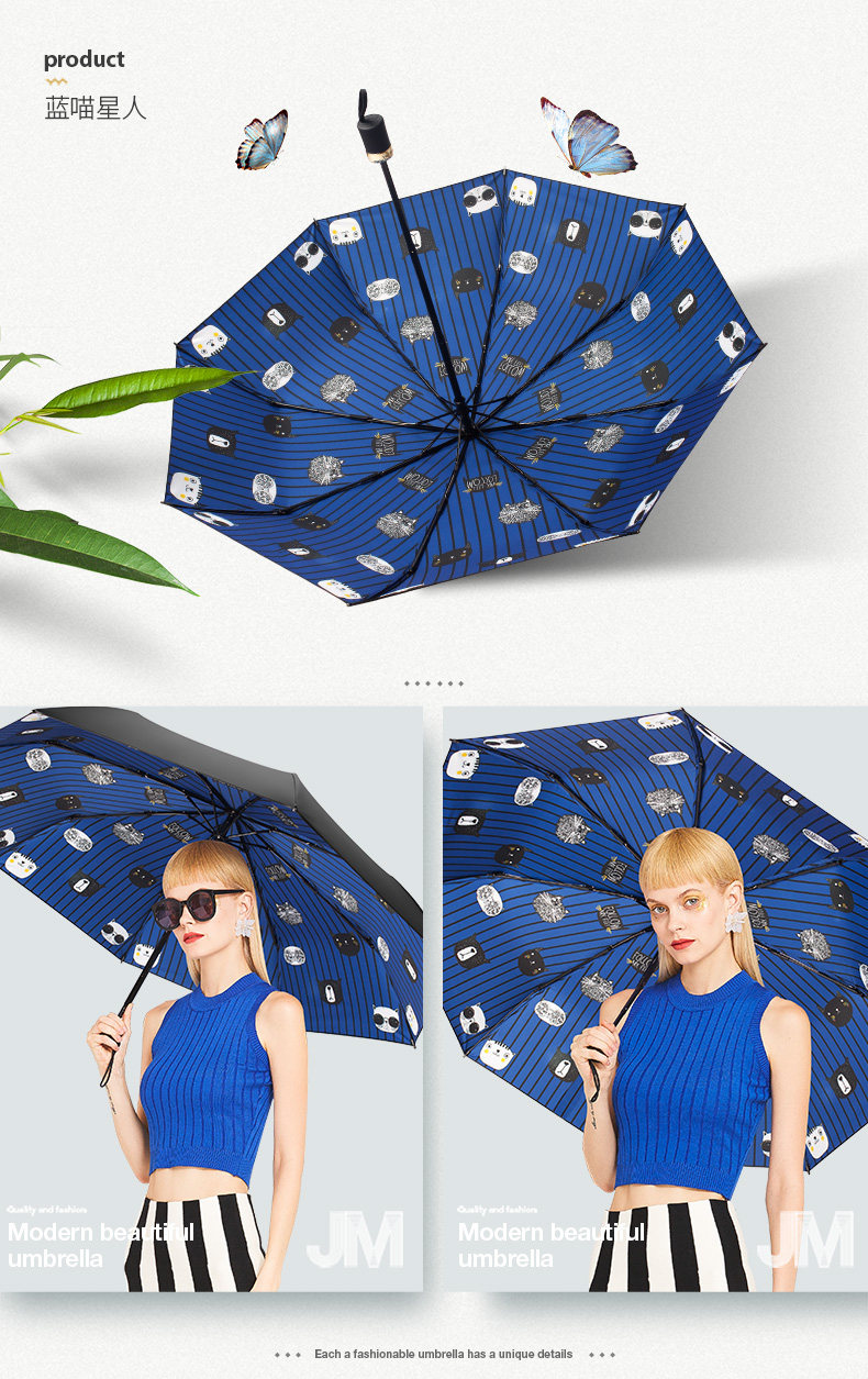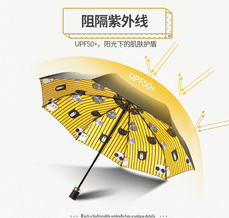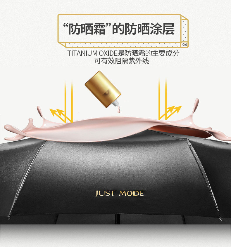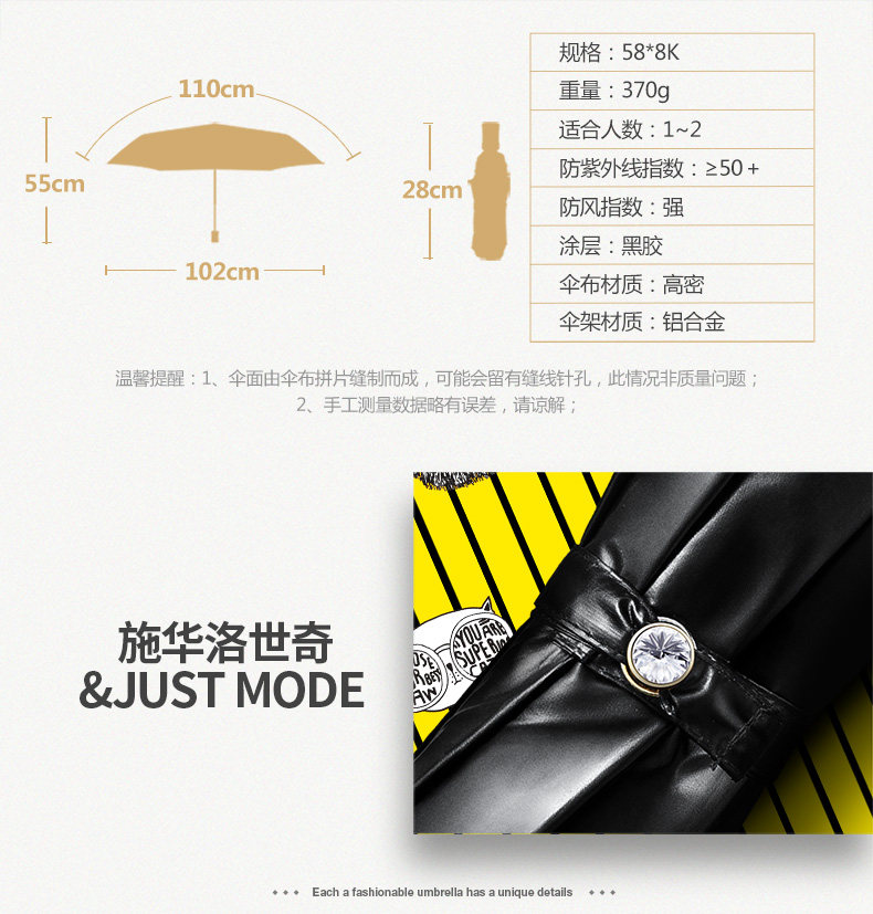 摩登justmode卡通太阳伞防晒 100%防紫外线遮黑胶晴雨伞