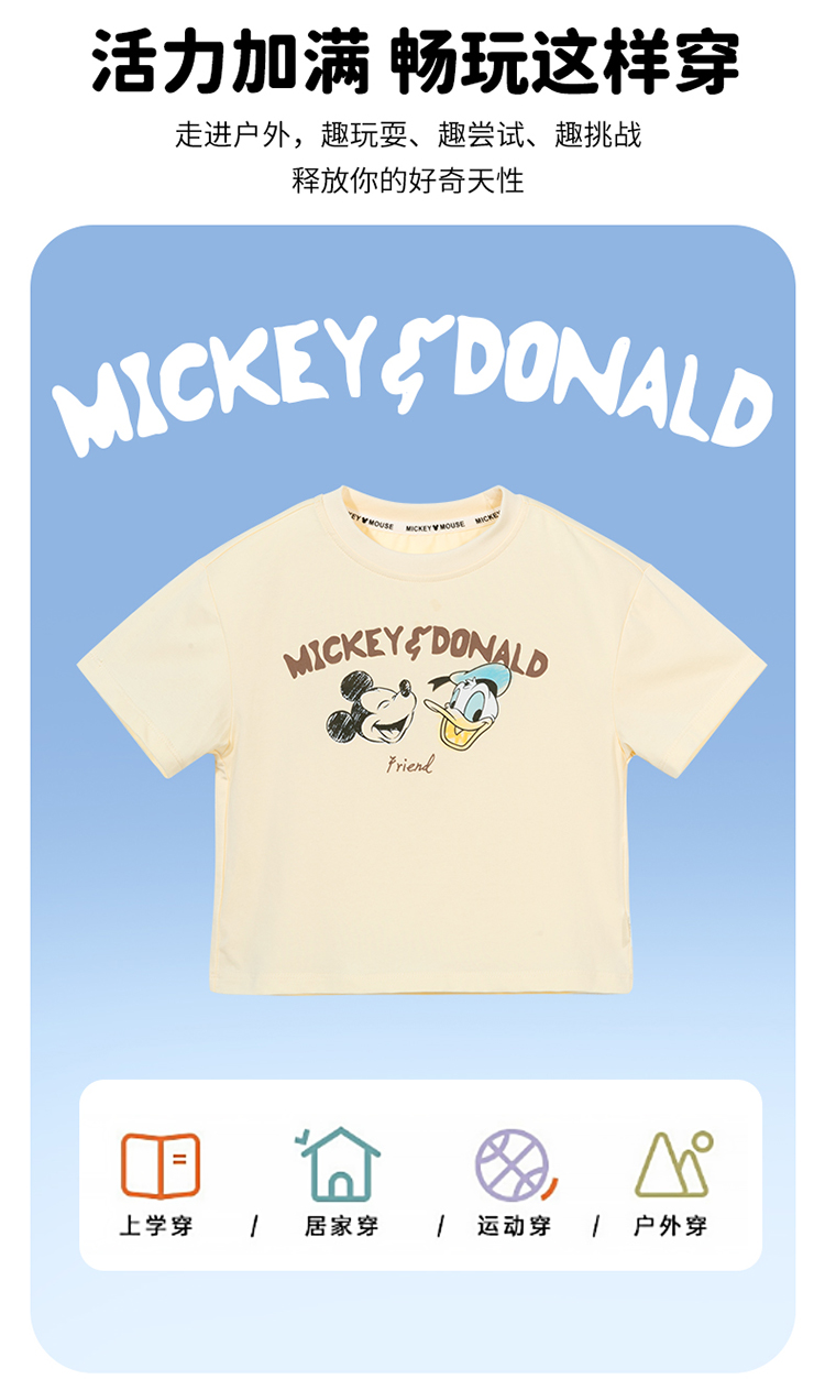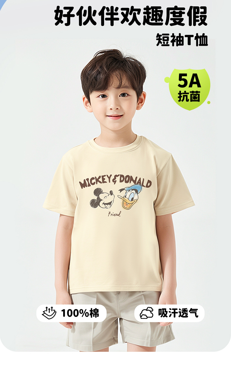 迪士尼【5A抑菌】24夏款男童短袖T恤卡通印花舒适透气短袖T恤ZD2DS030