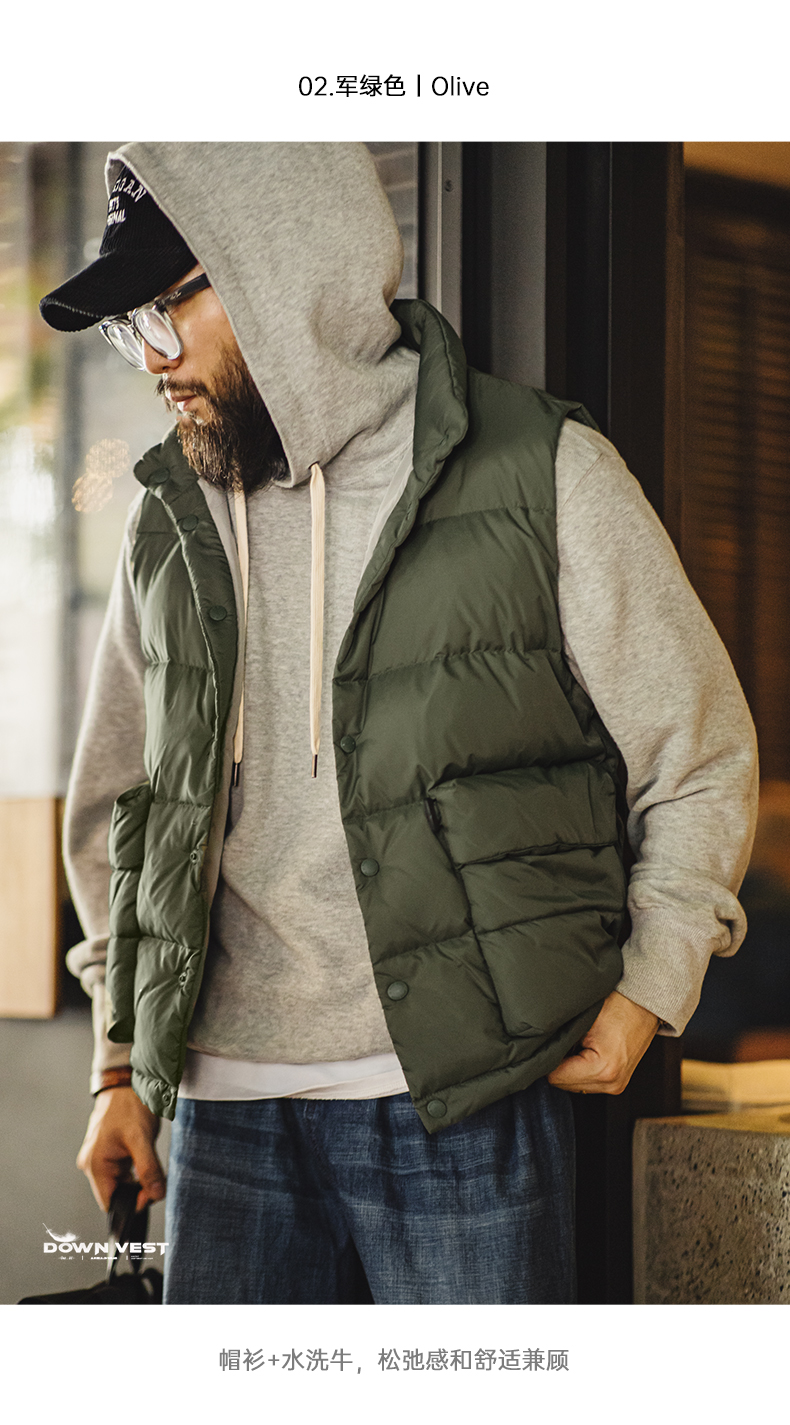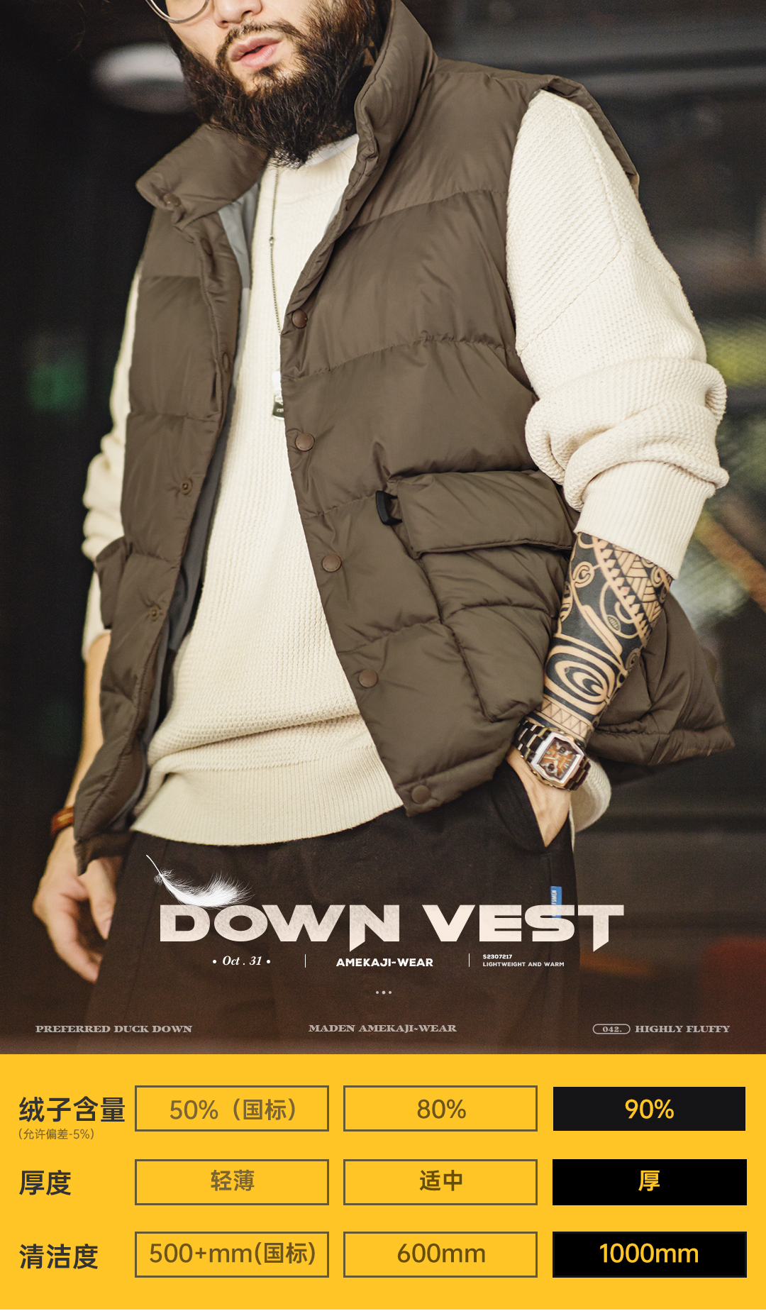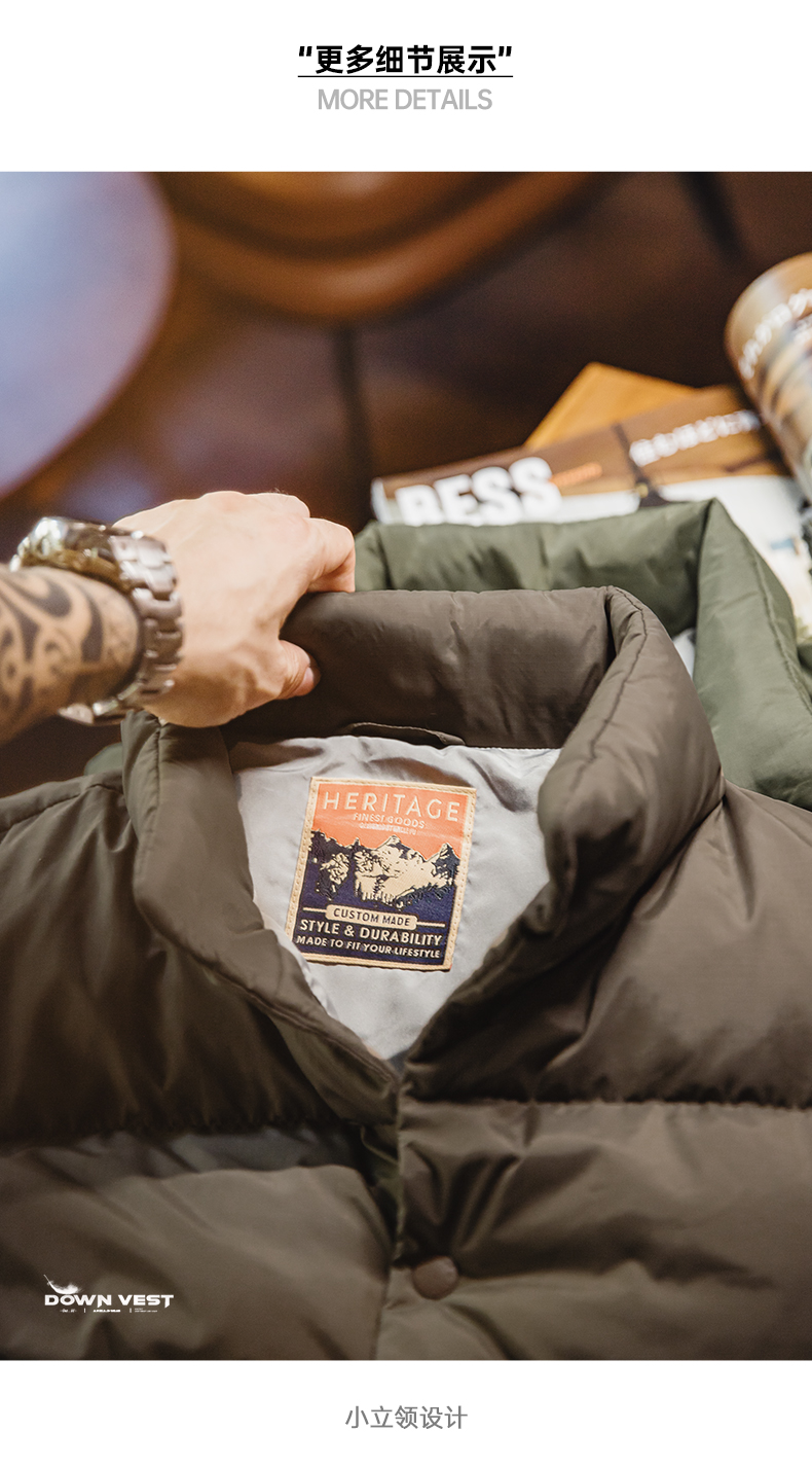 工装优选 美式休闲轻薄羽绒马甲鸭绒保暖立领内搭外穿背心马夹男秋