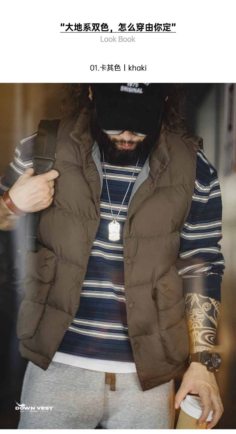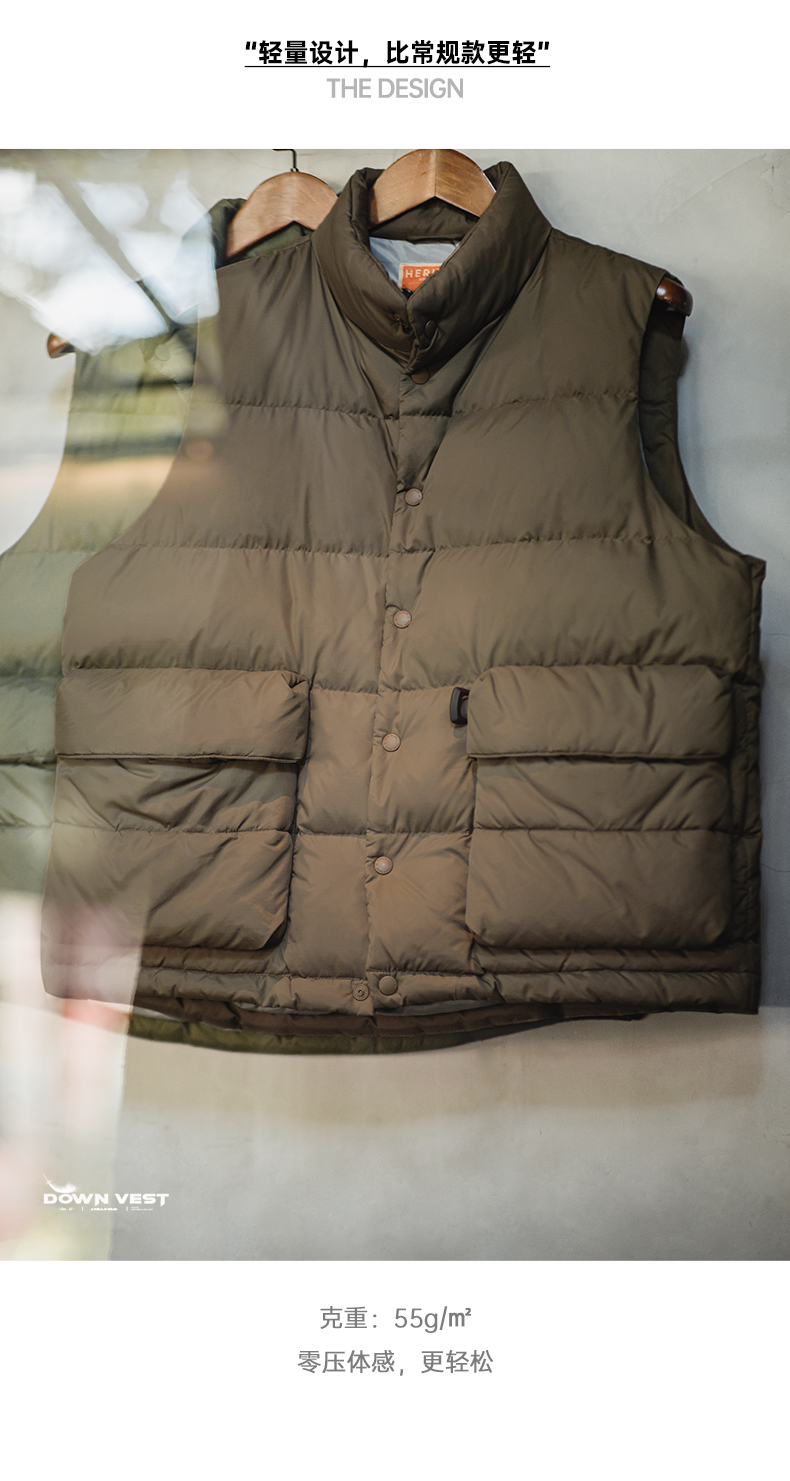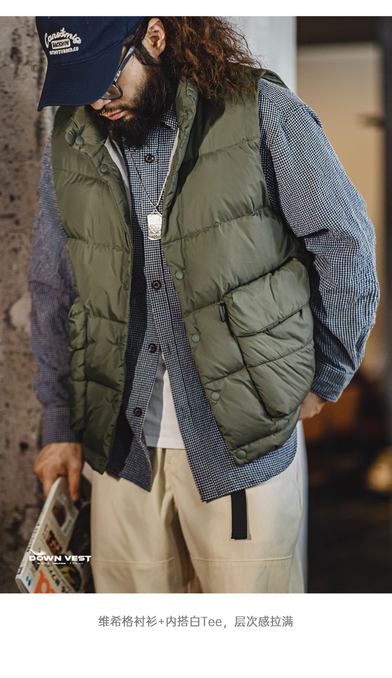 工装优选 美式休闲轻薄羽绒马甲鸭绒保暖立领内搭外穿背心马夹男秋