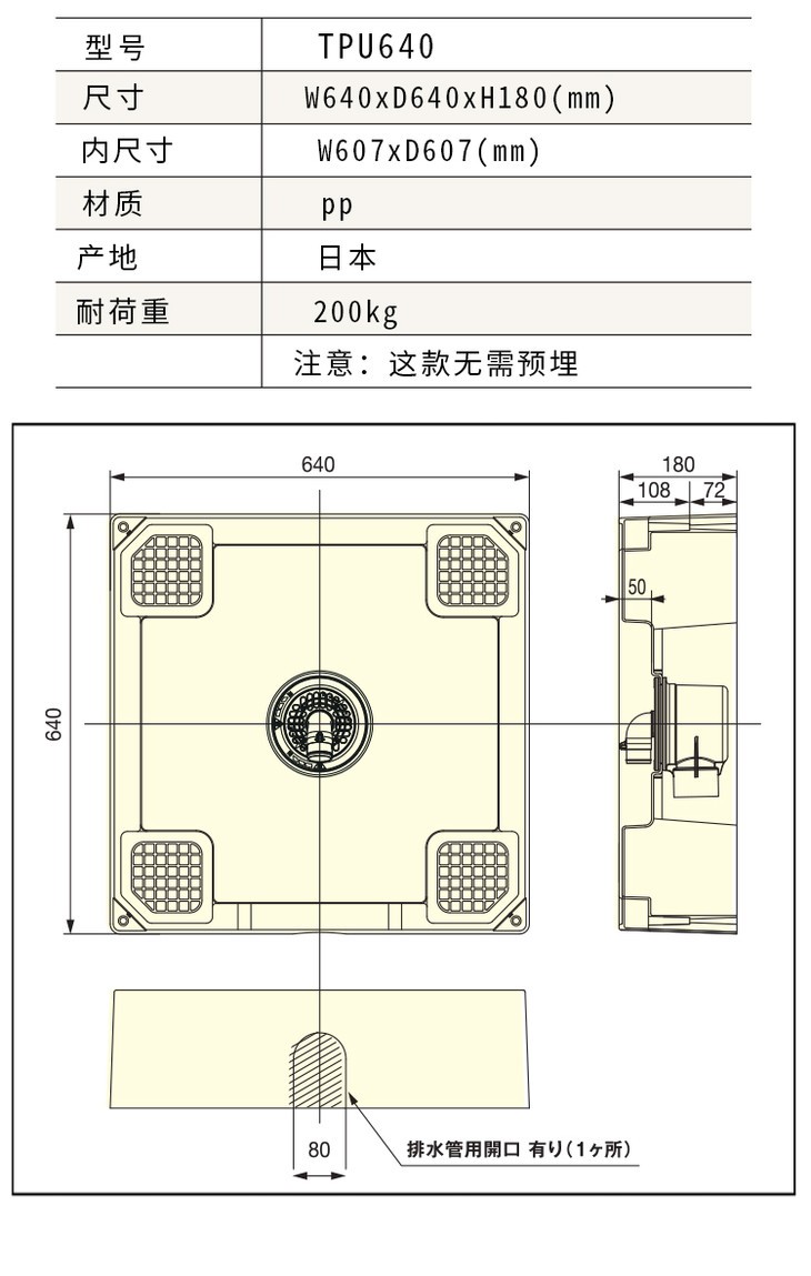 日本进口公寓房滚筒洗衣机垫高底座ABS树脂及排水软管通用托架TP640RE