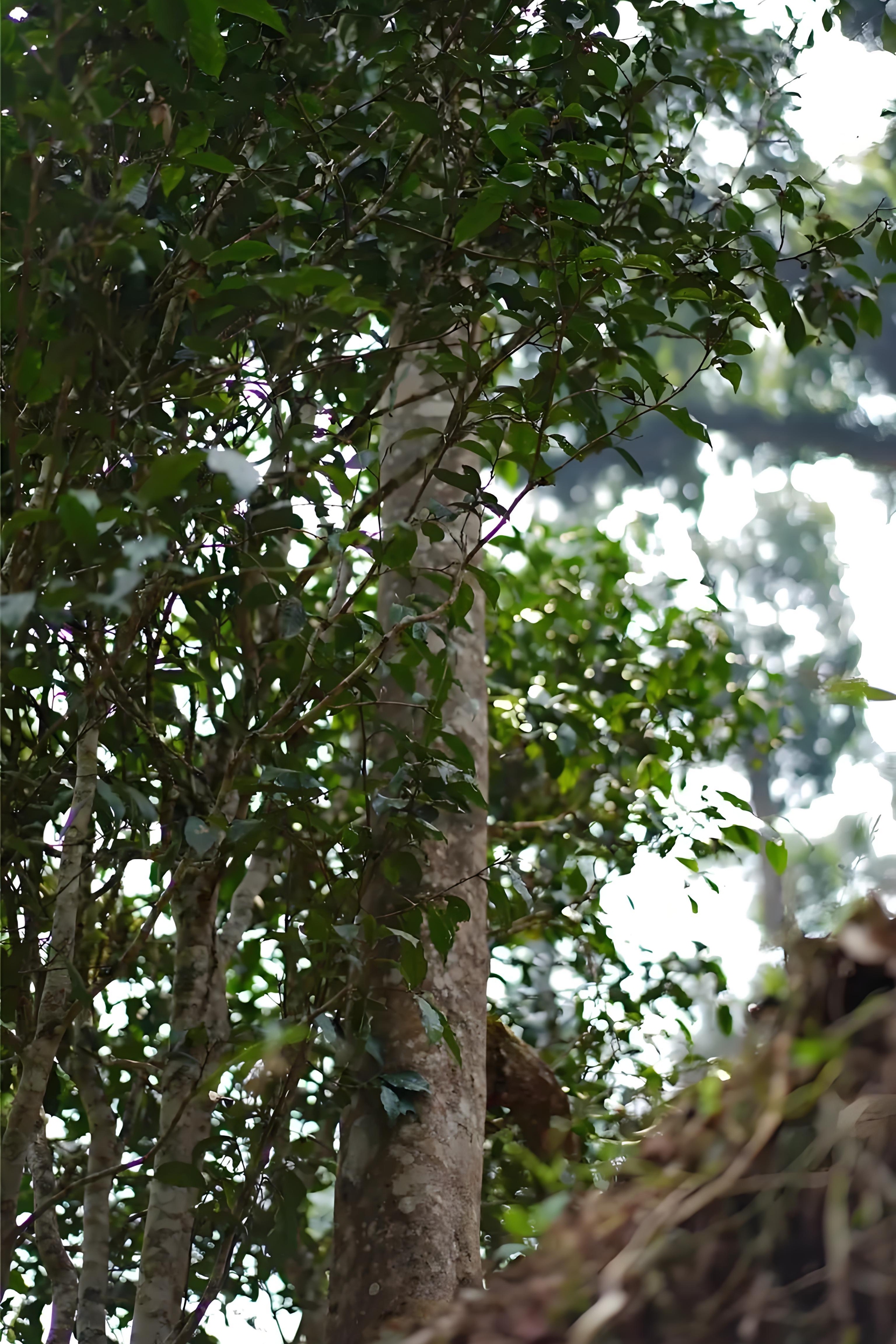 石门坎隐于深山密林之中,生态保持着原始状态。这片茶林很有特点,属于茶中有林,林中有茶。石门坎属典型的超大叶种茶,代表古茶树的高度平均在5米左右,茶树根部非常粗壮,枝条柔软如藤条般。