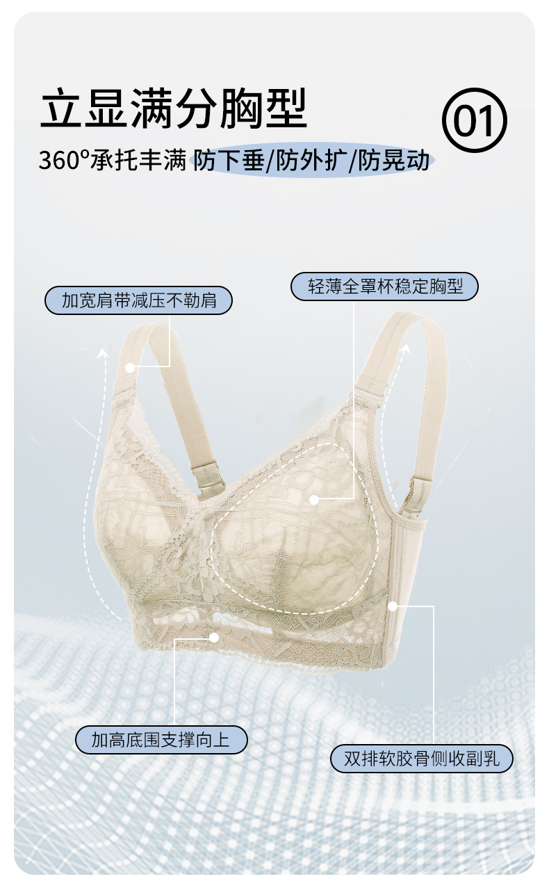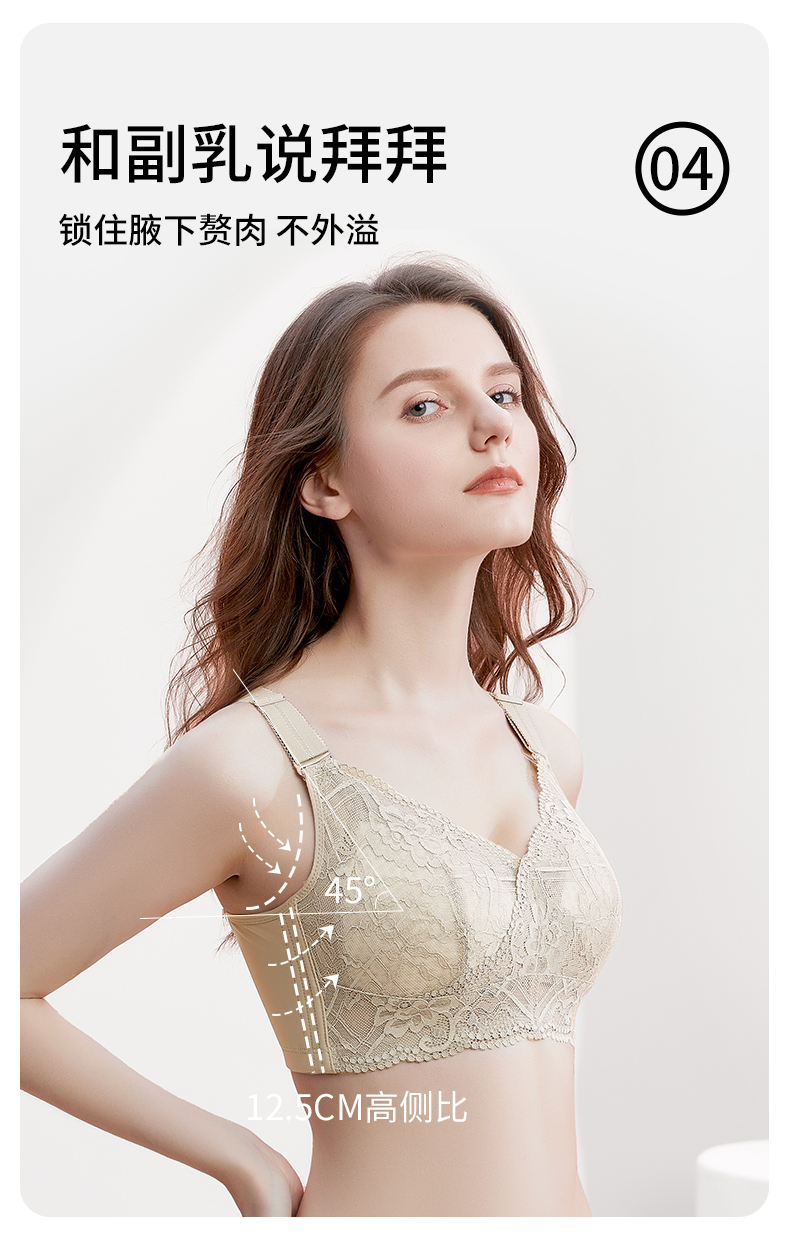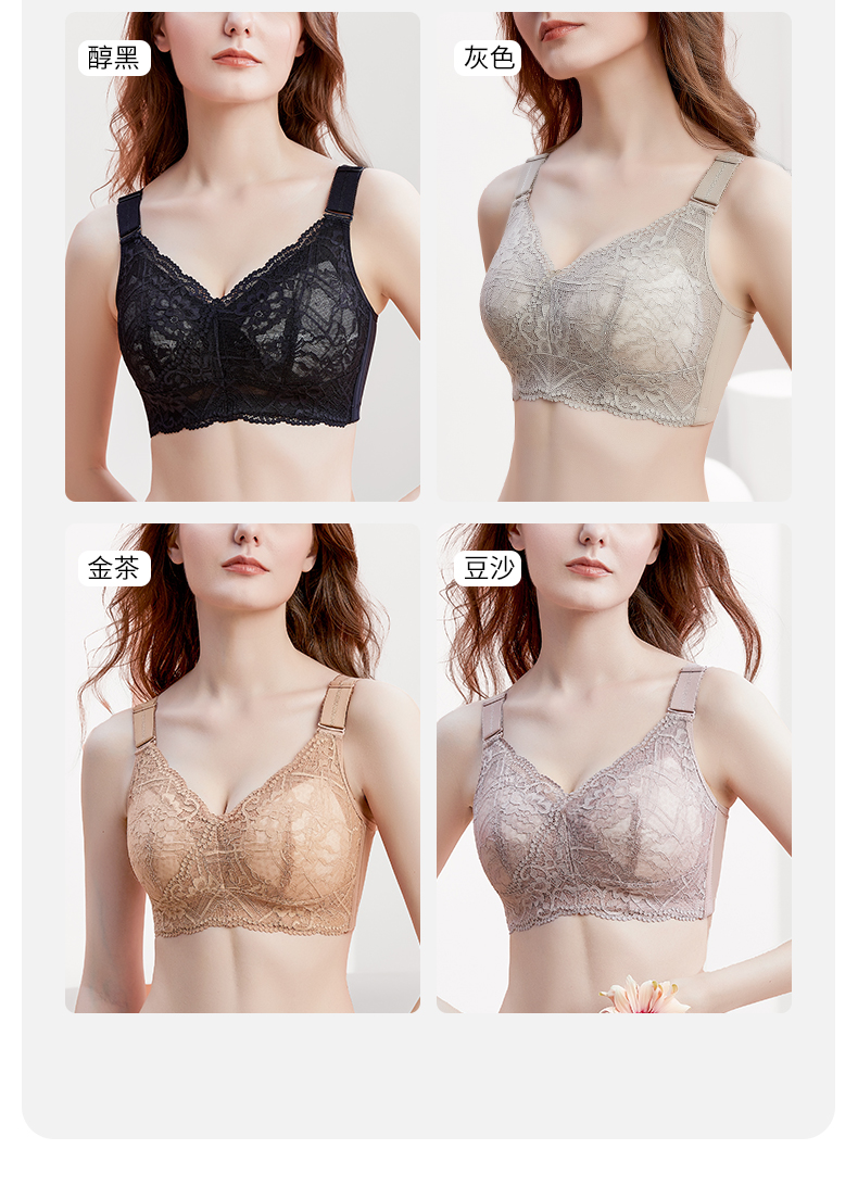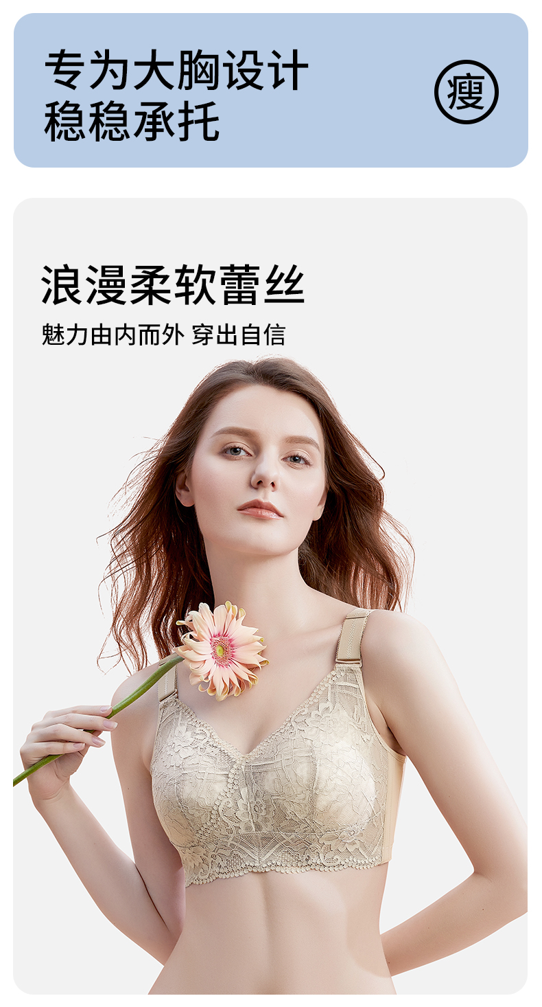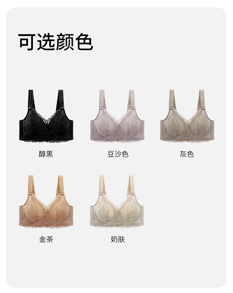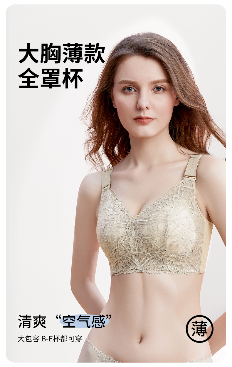 雅黛丽内衣女薄款大胸显小性感无钢圈聚拢文胸薄杯蕾丝大码胸罩女