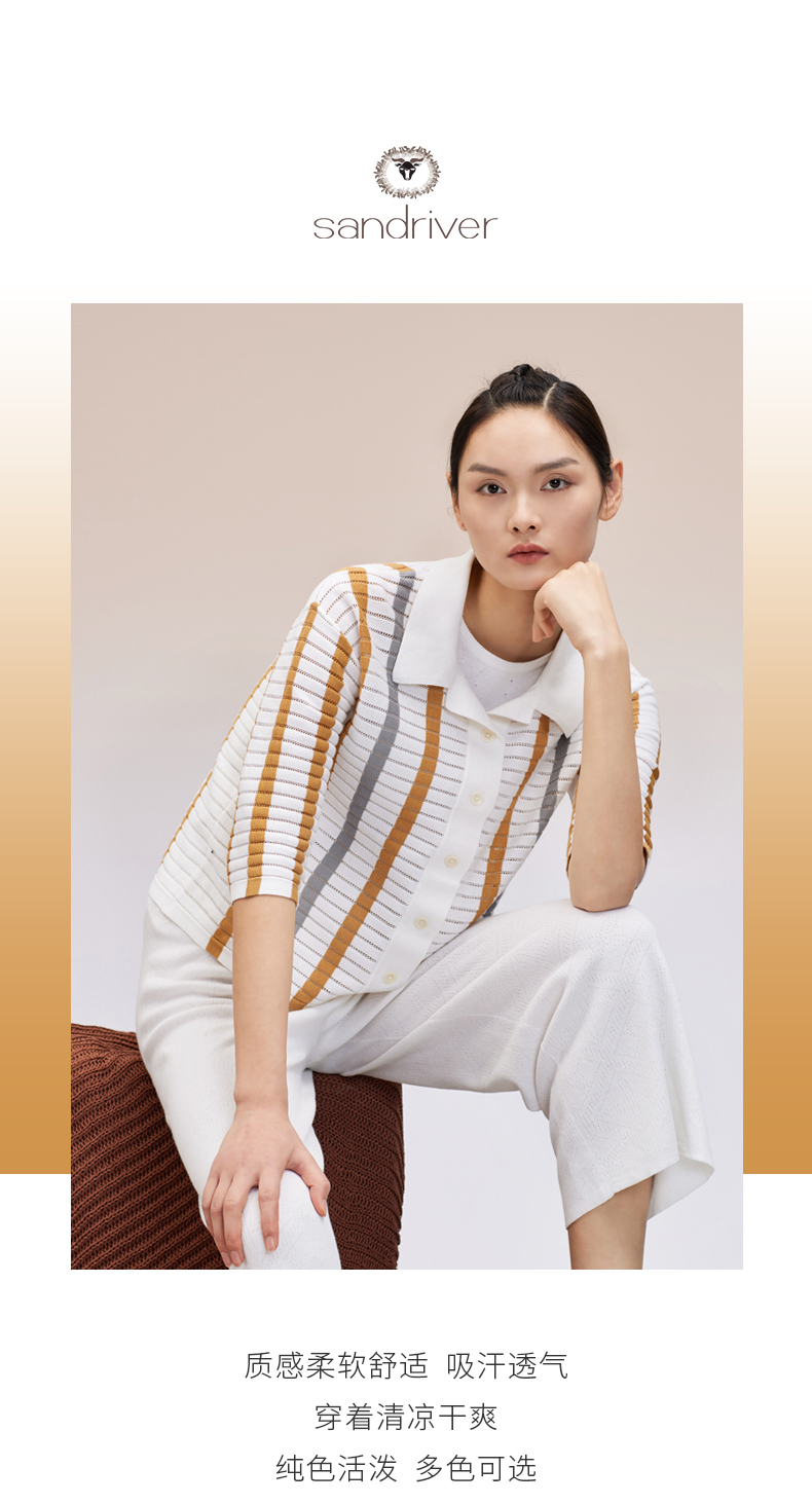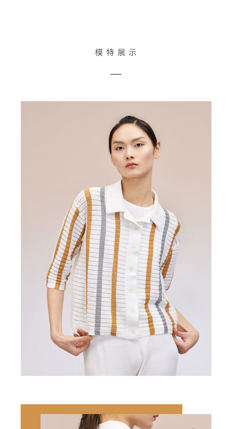 夹条挑孔衬衫领女开衫 SJS95W016K