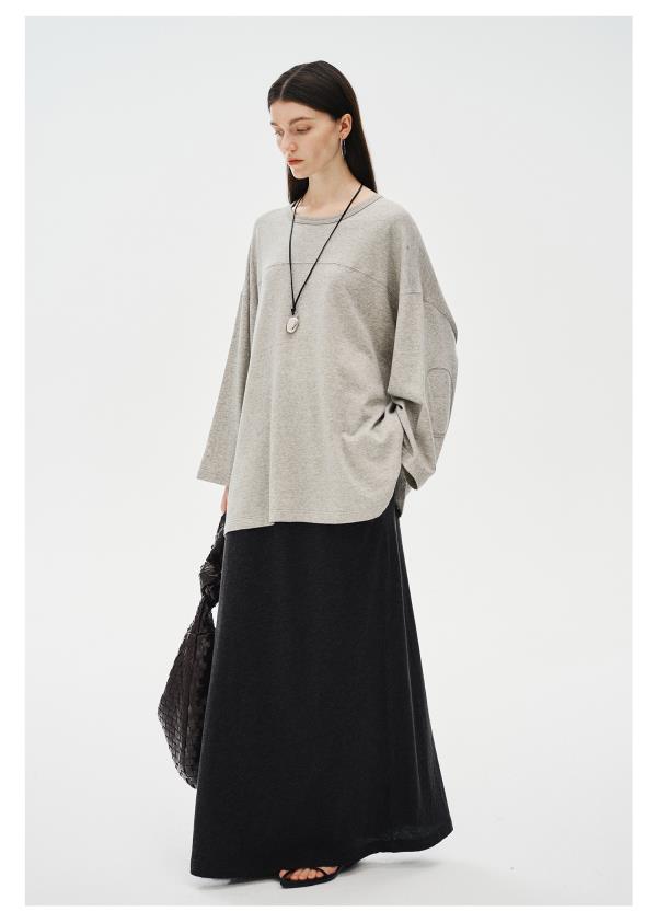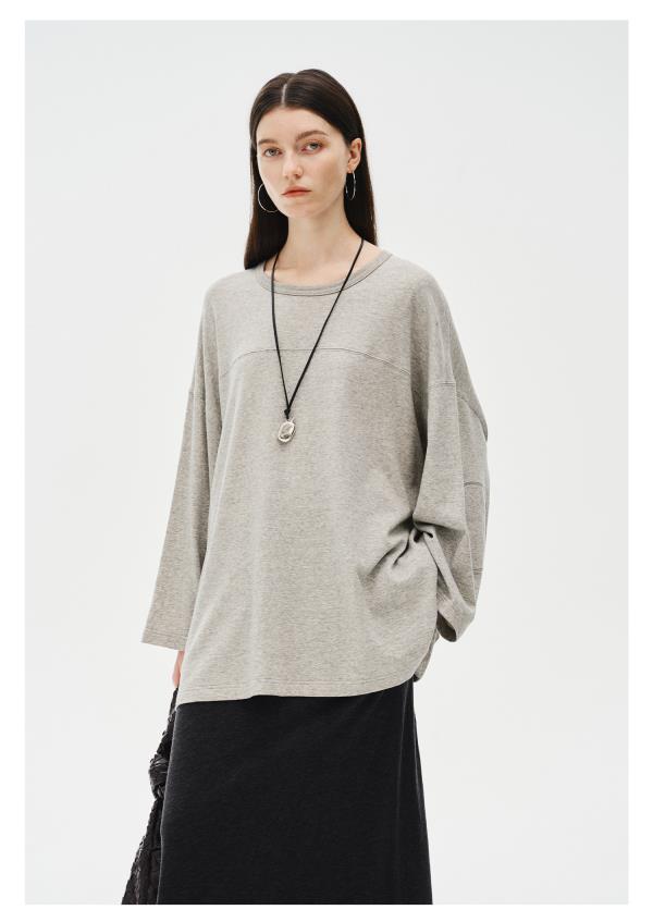 棉仓3621508001-IACHOE宽松宽袖T恤