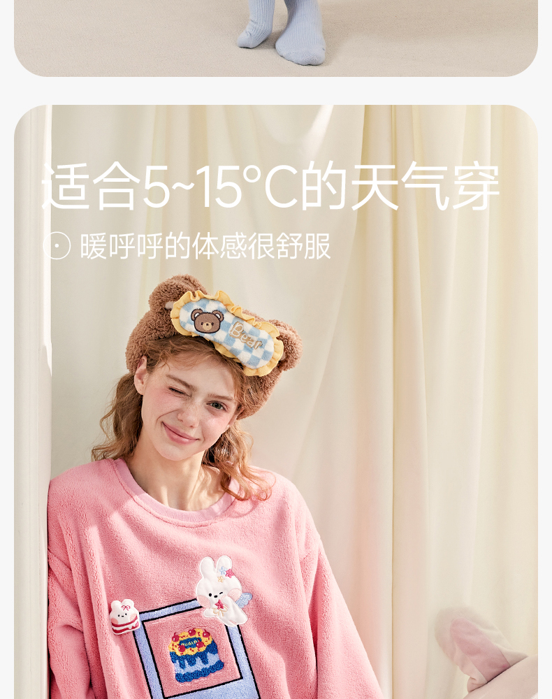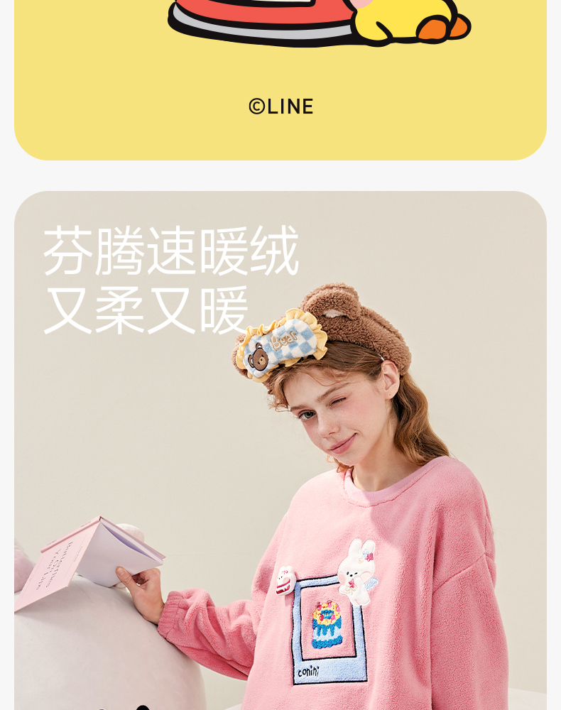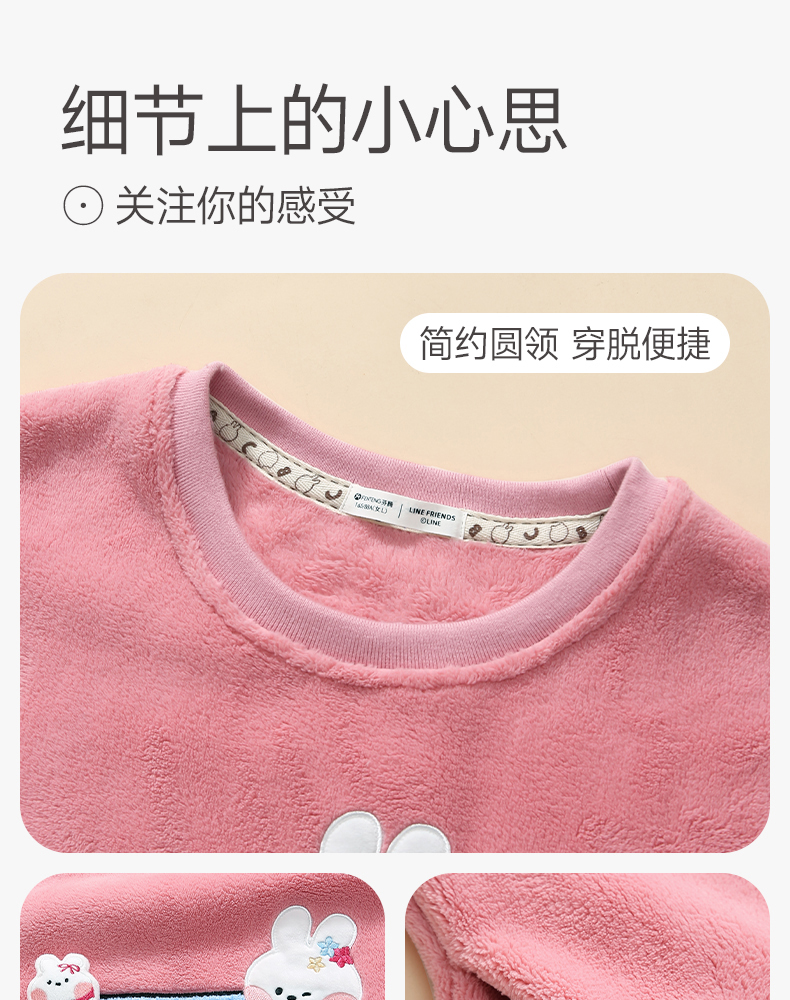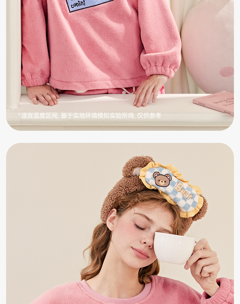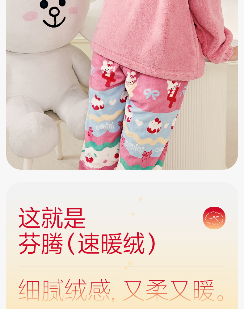 芬腾珊瑚绒女士睡衣秋冬加绒加厚保暖布朗熊套装法兰绒大码家居服
