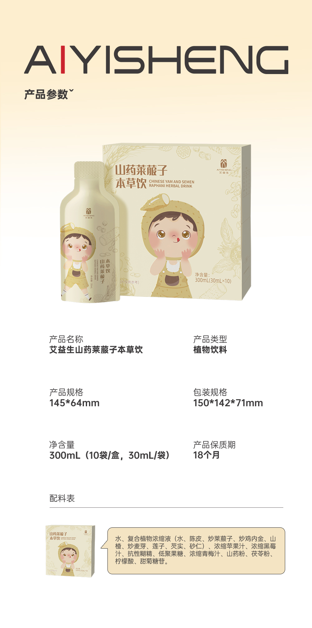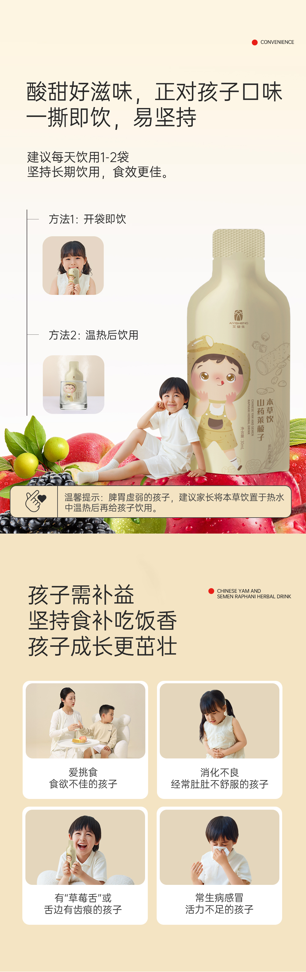 【山药莱菔子本草饮-升级款(儿童款,成人亦可)】每天1袋,养出孩子好脾胃