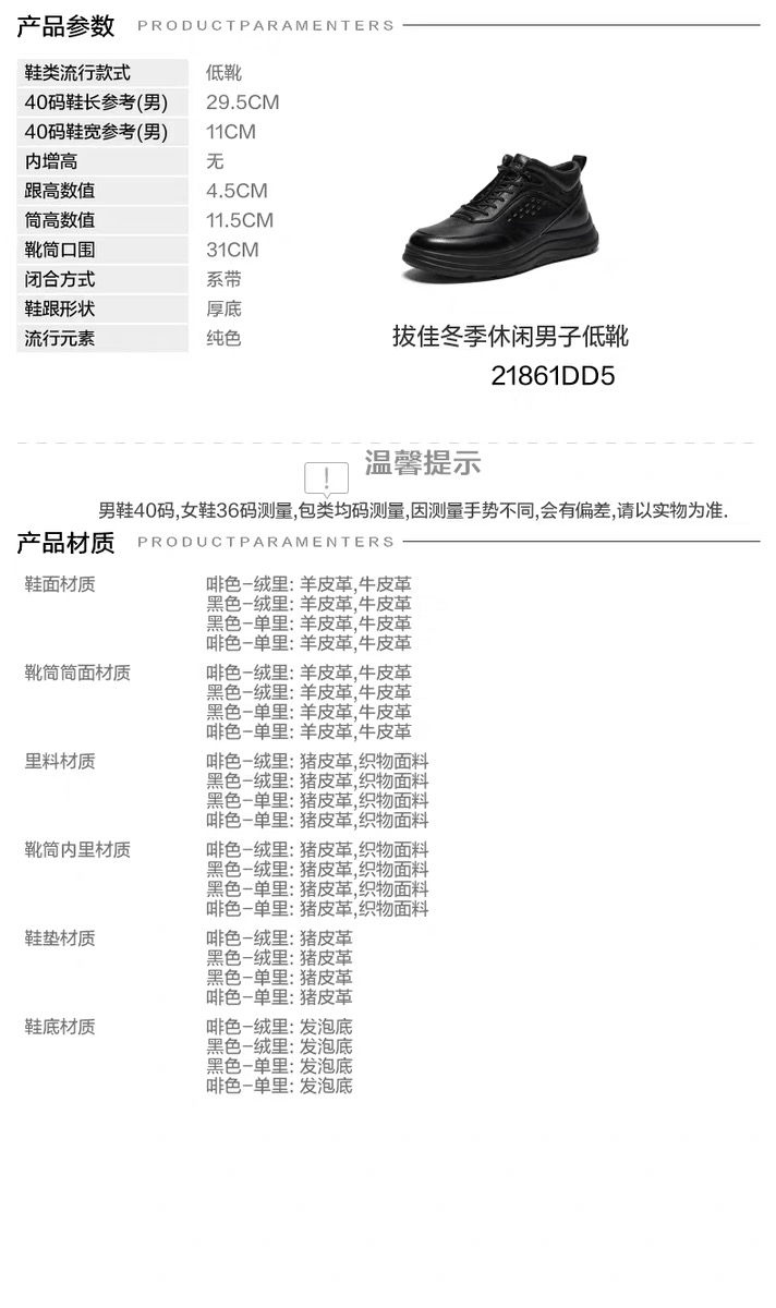 【云粉节】【拔佳】BF楼Bata时装靴男2025冬款牛皮通勤户外休闲厚底低靴21861DD5 吊牌价1259 活动价699