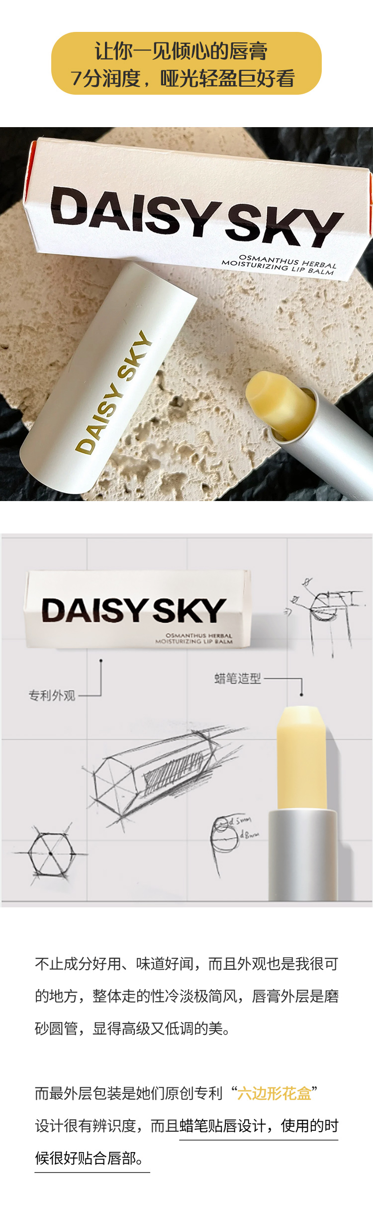 【99元2支/湖南发】雏菊的天空,用过就会回购的润唇膏!持久滋润、高效保湿轻盈不糊嘴,兼具镇静修护、消炎舒缓嘴巴脱皮/唇炎/干纹的入起来,薄涂当口红打底,厚涂当唇膜都巨赞,get水润嘟嘟唇~