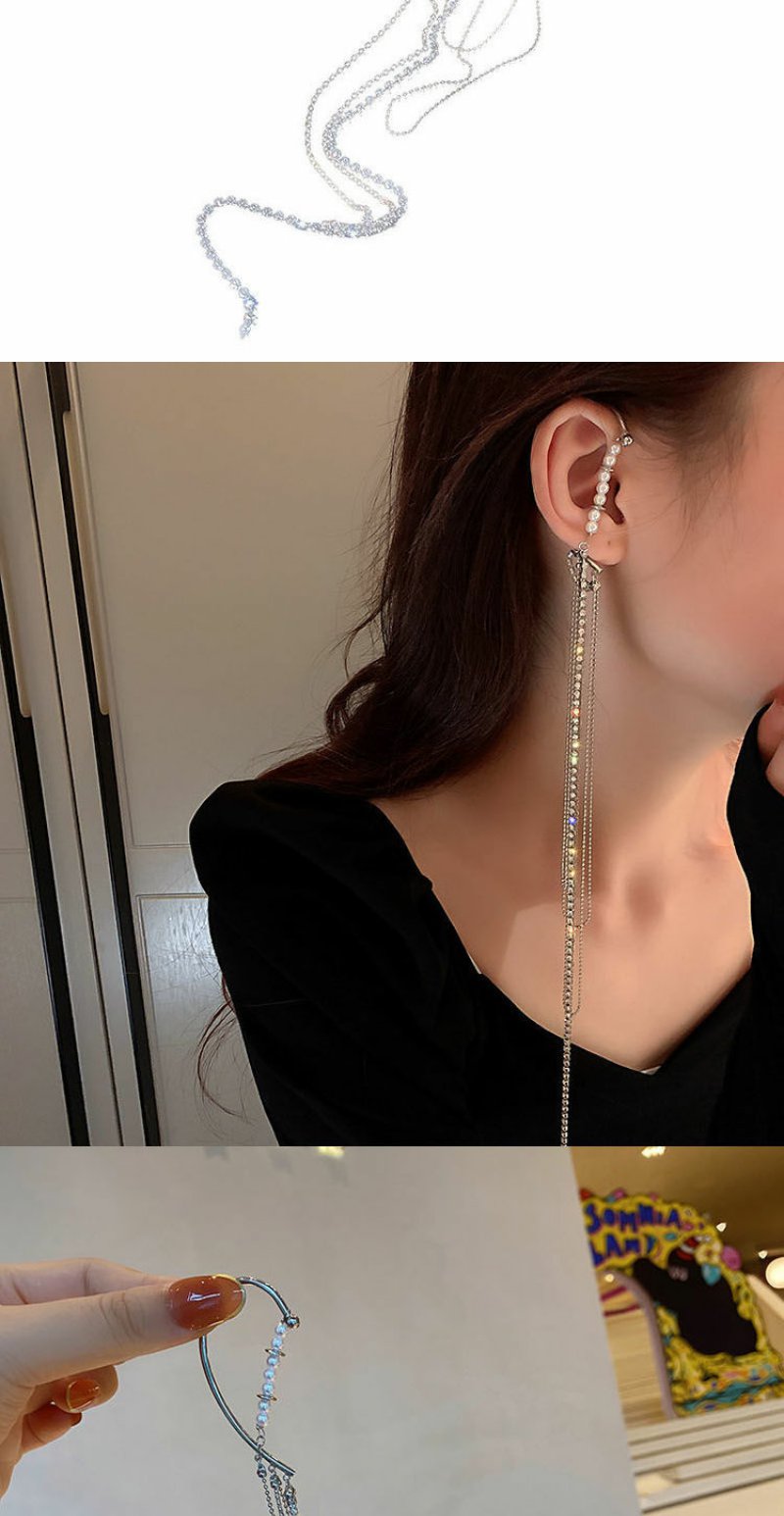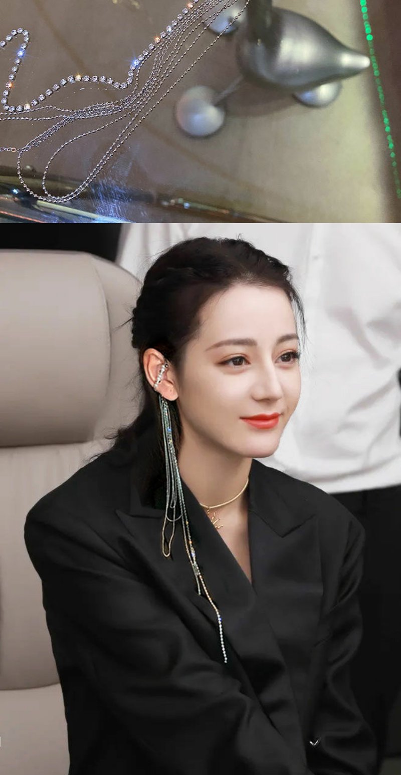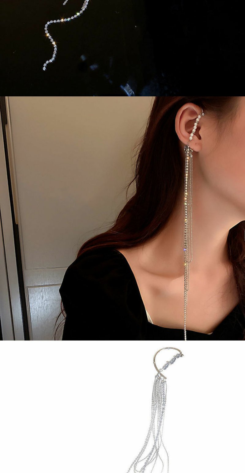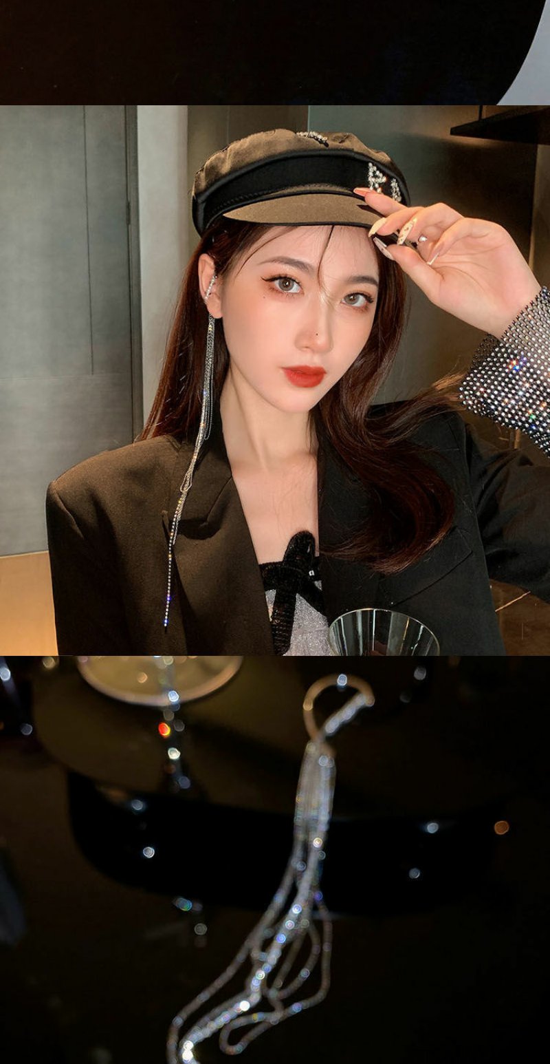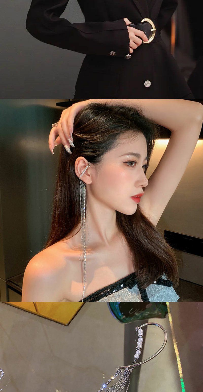 远方情新款超长镶钻流苏耳挂小众设计冷淡风无耳洞超仙耳环E1158