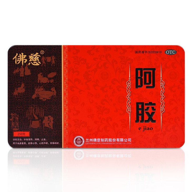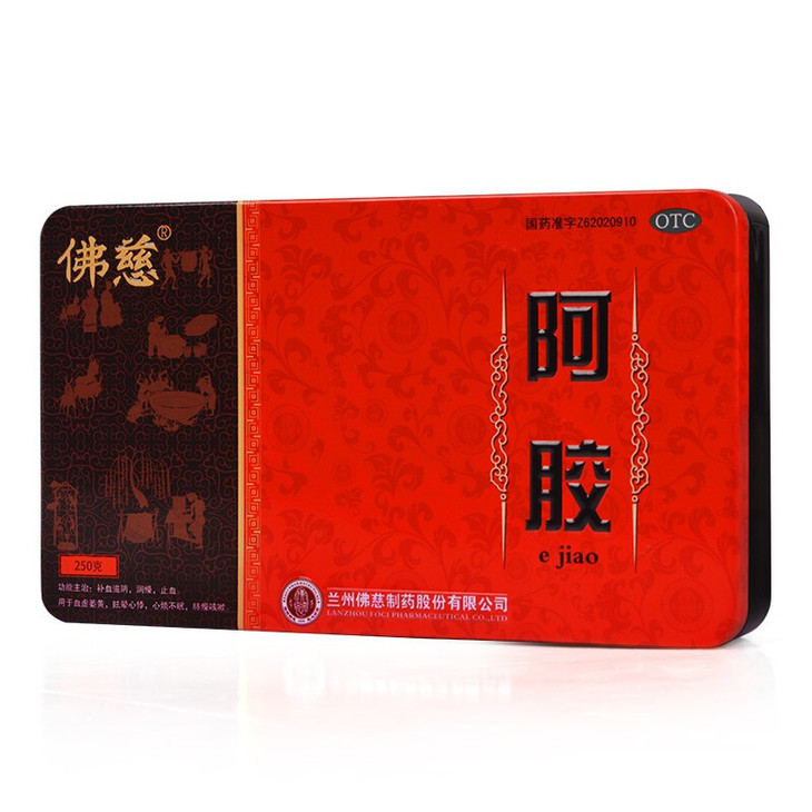 佛慈 阿胶250克 补血滋阴润燥止血血虚萎黄眩晕心悸心烦不眠肺燥咳嗽OTC阿胶糕阿胶块 1盒装