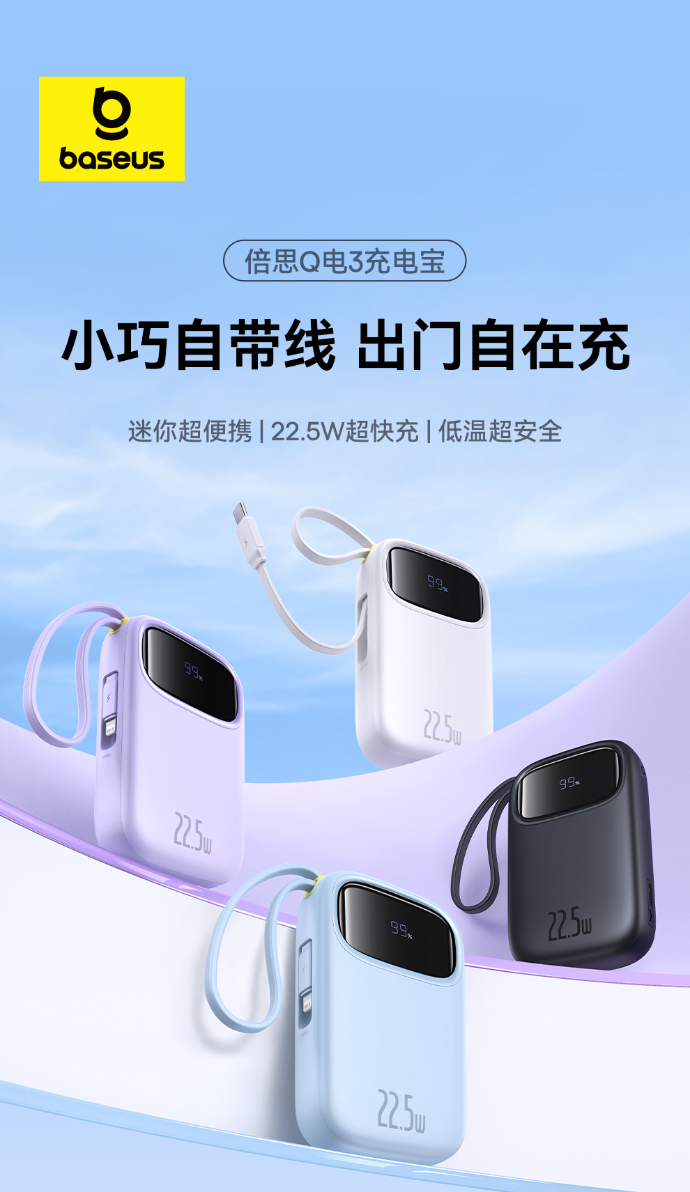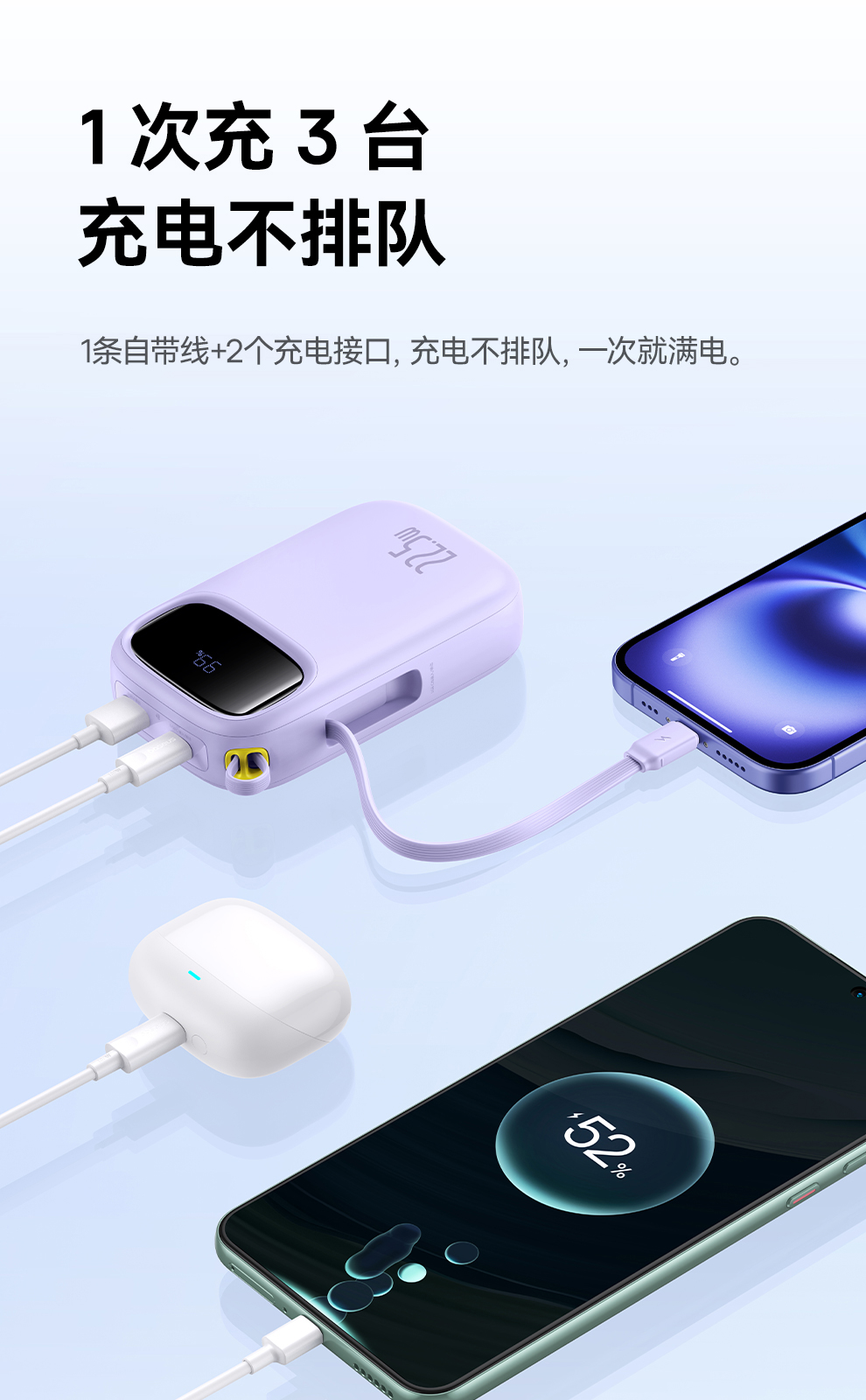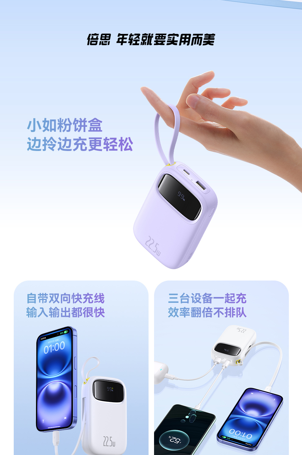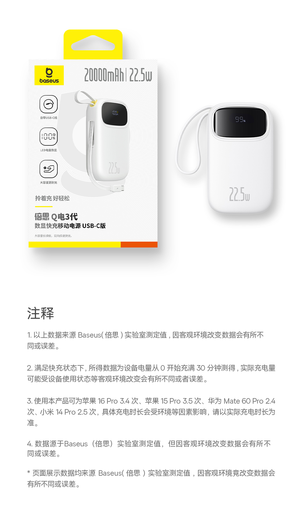 倍思 Q电3 数显快充移动电源 单线版