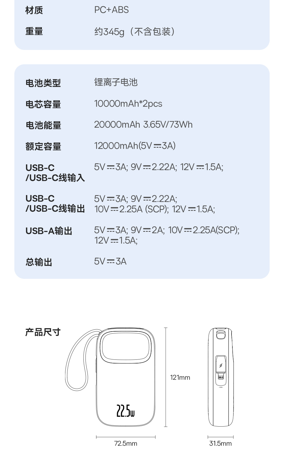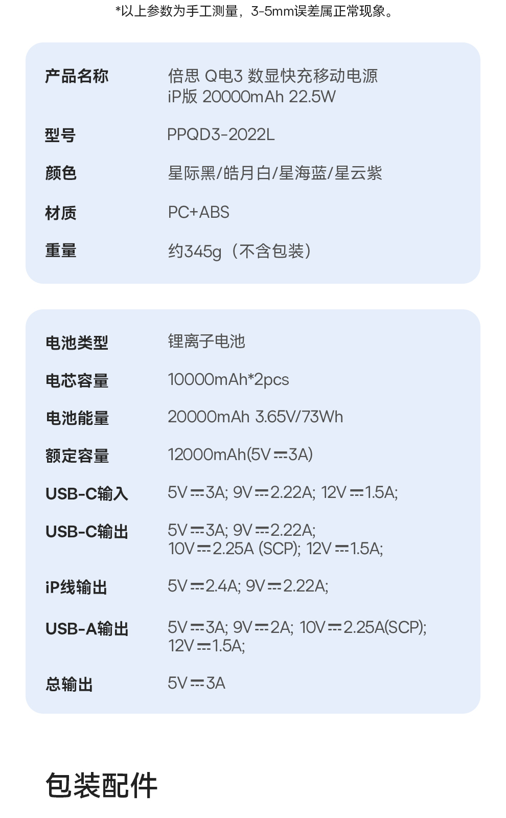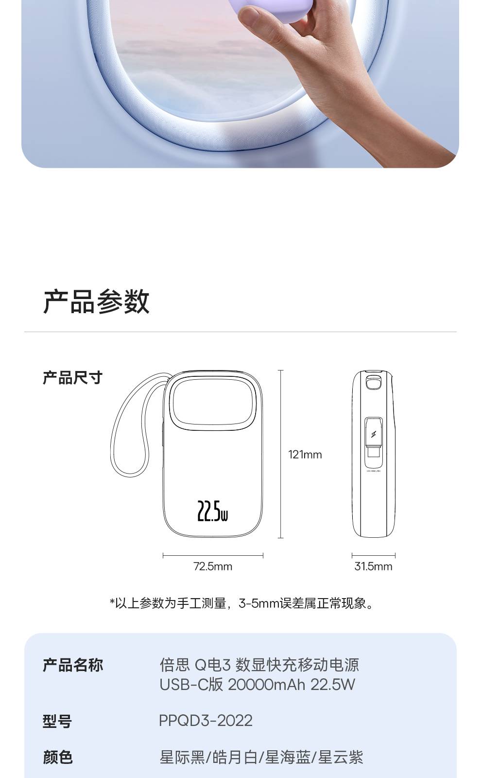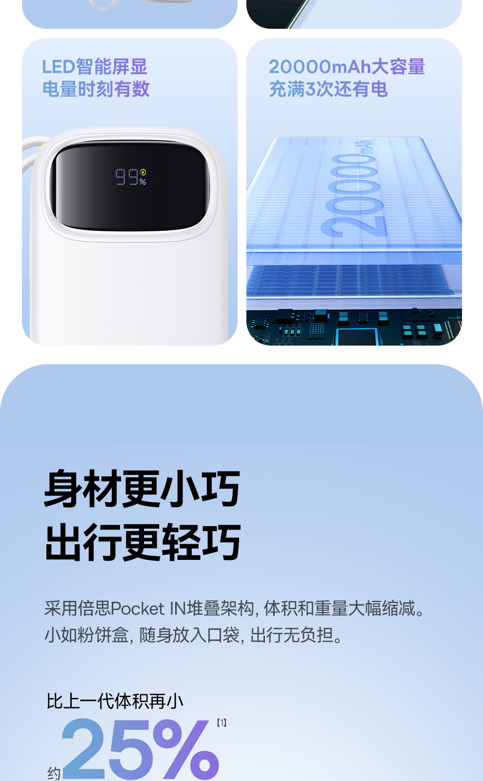 倍思 Q电3 数显快充移动电源 单线版