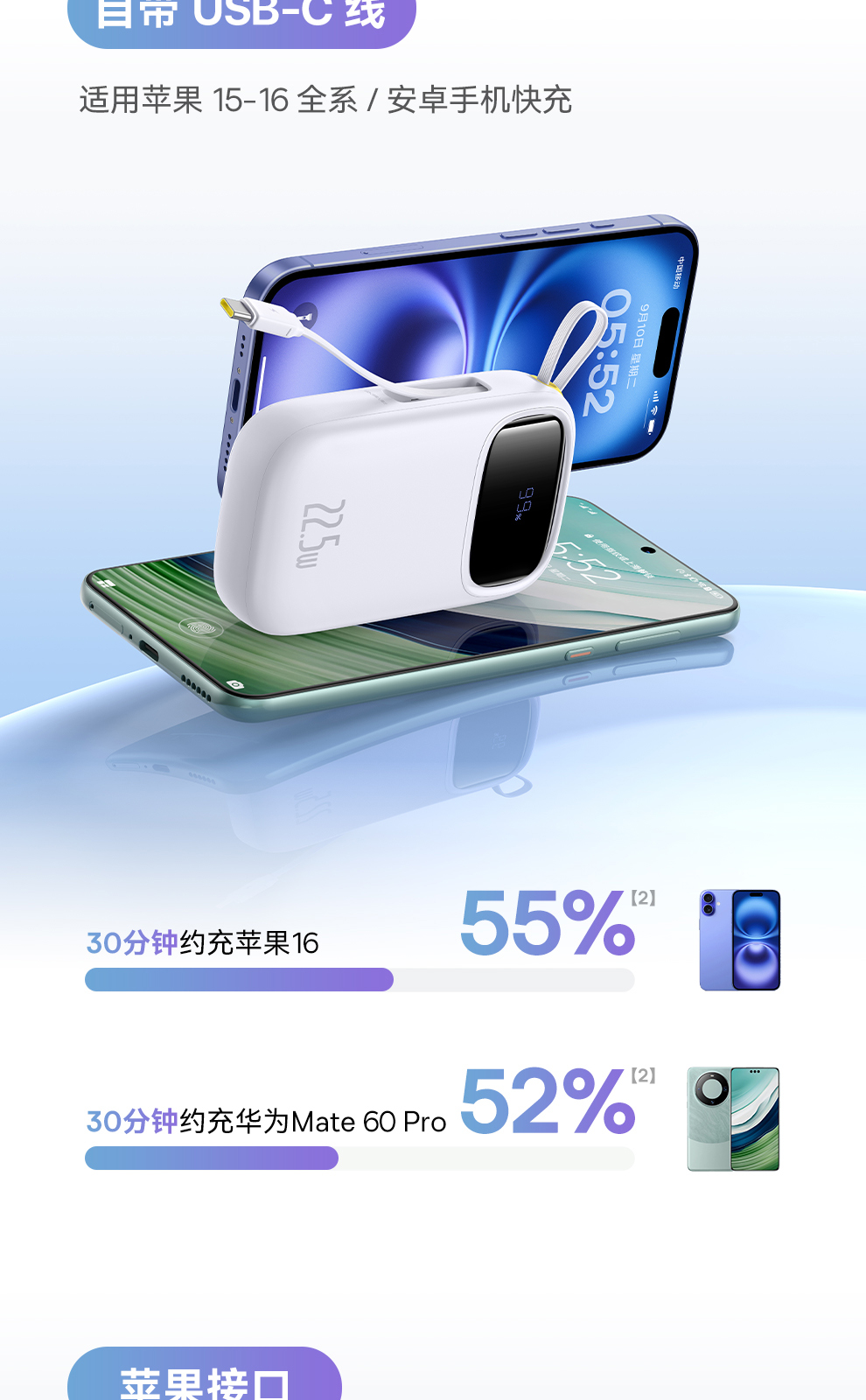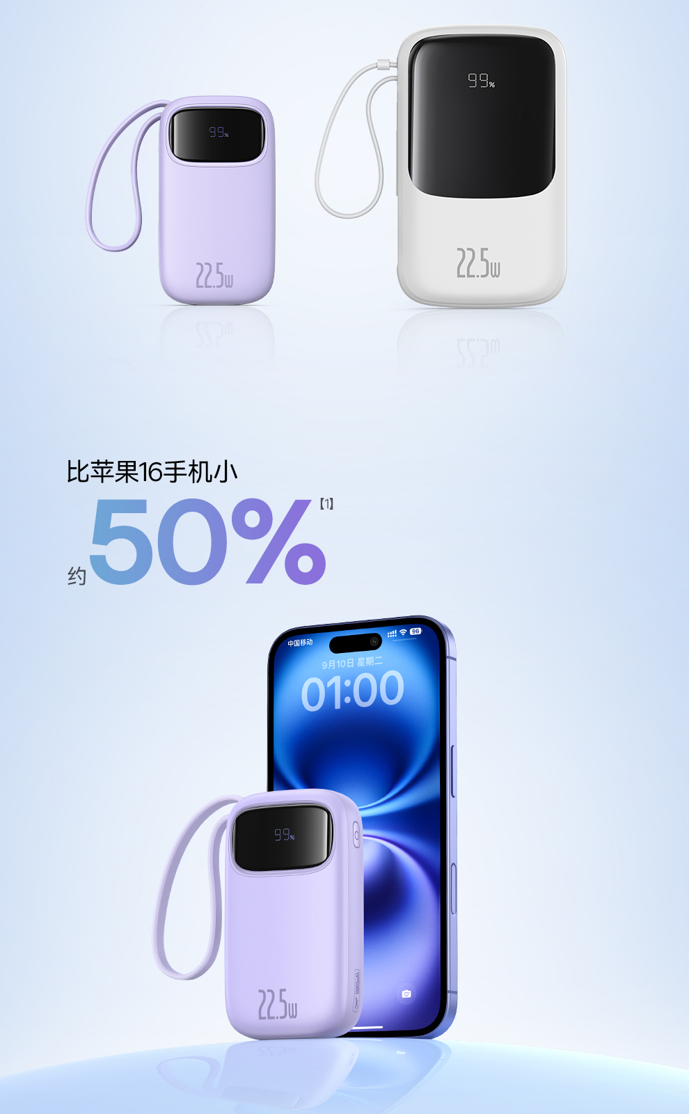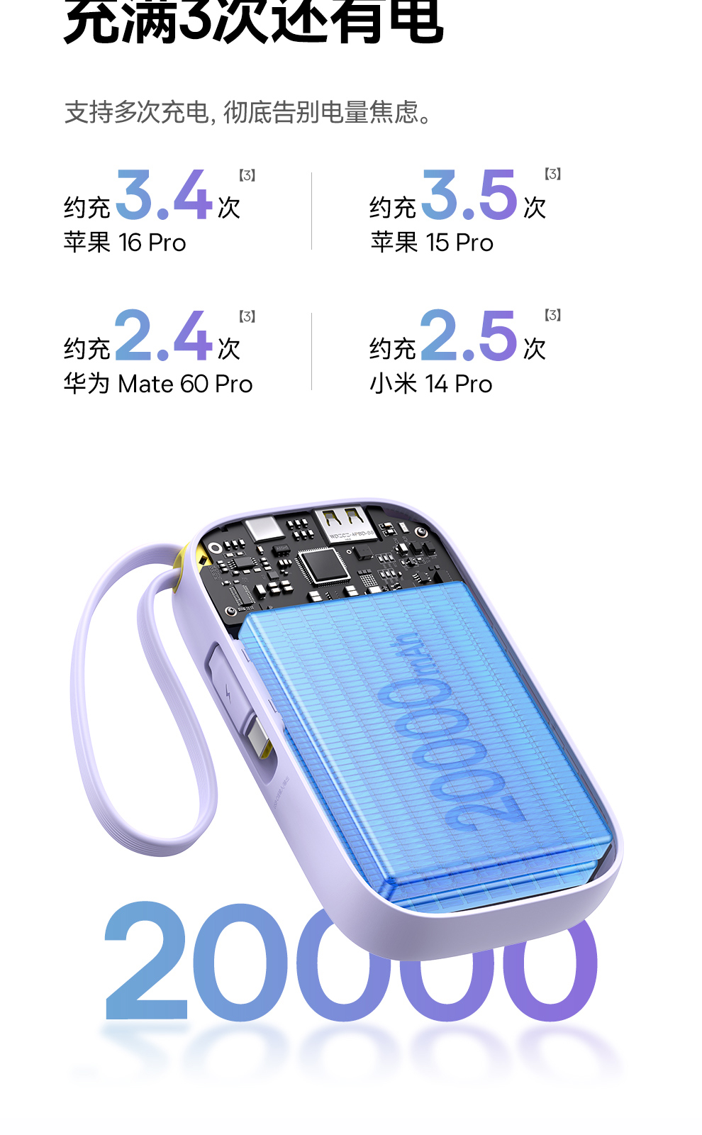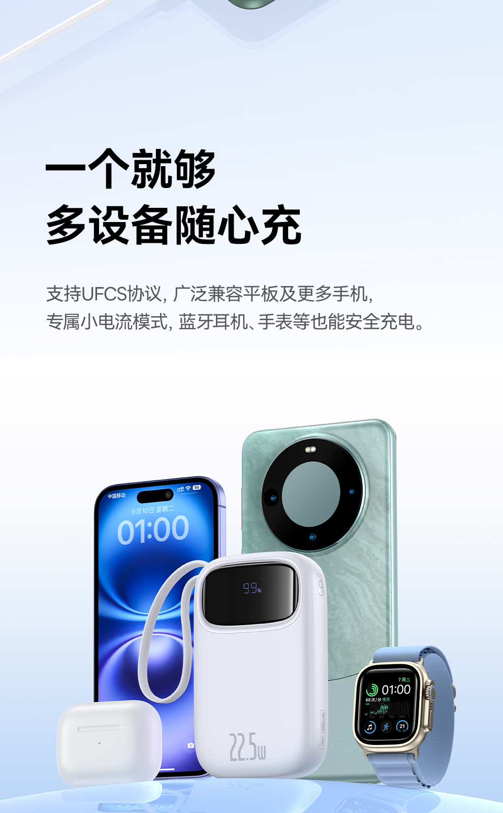 倍思 Q电3 数显快充移动电源 单线版