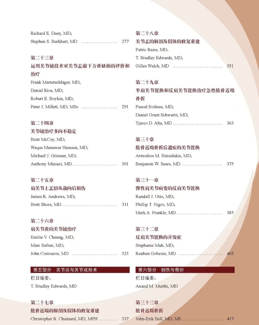 本书是由美国骨科医师学会(AAOS)组织编写的大型骨科学丛书的肩肘分册,是AAOS官方授权出版的简体中文版专著。当今世界肩肘外科学领域的顶尖专家汇聚一堂编写本书,旨在为读者提供领先的新知识,讨论学科新进展和有争议的问题,包括肩袖修复、胶原蛋白补片的使用等。书中还深入探讨了一些创新性的评估和治疗方案,如肩关节不稳定、反肩关节置换的生物力学、肩锁关节重建、复杂的区域疼痛综合征、肘部和肱部创伤等。