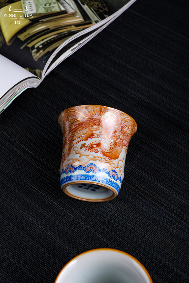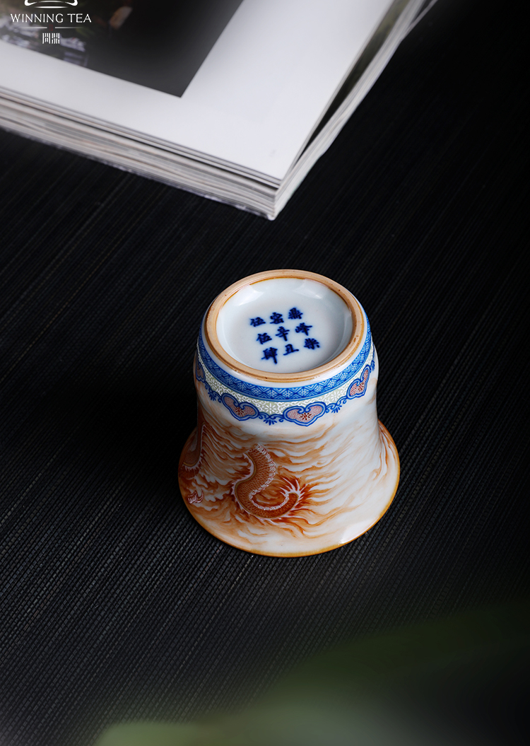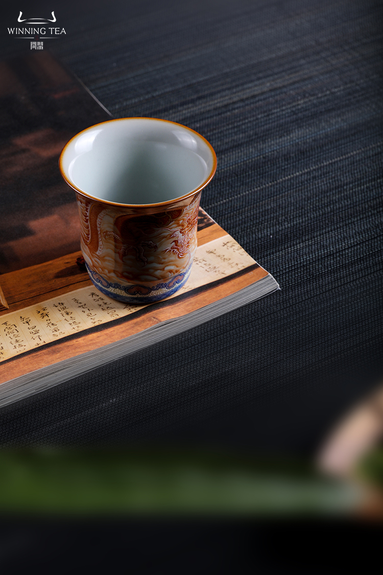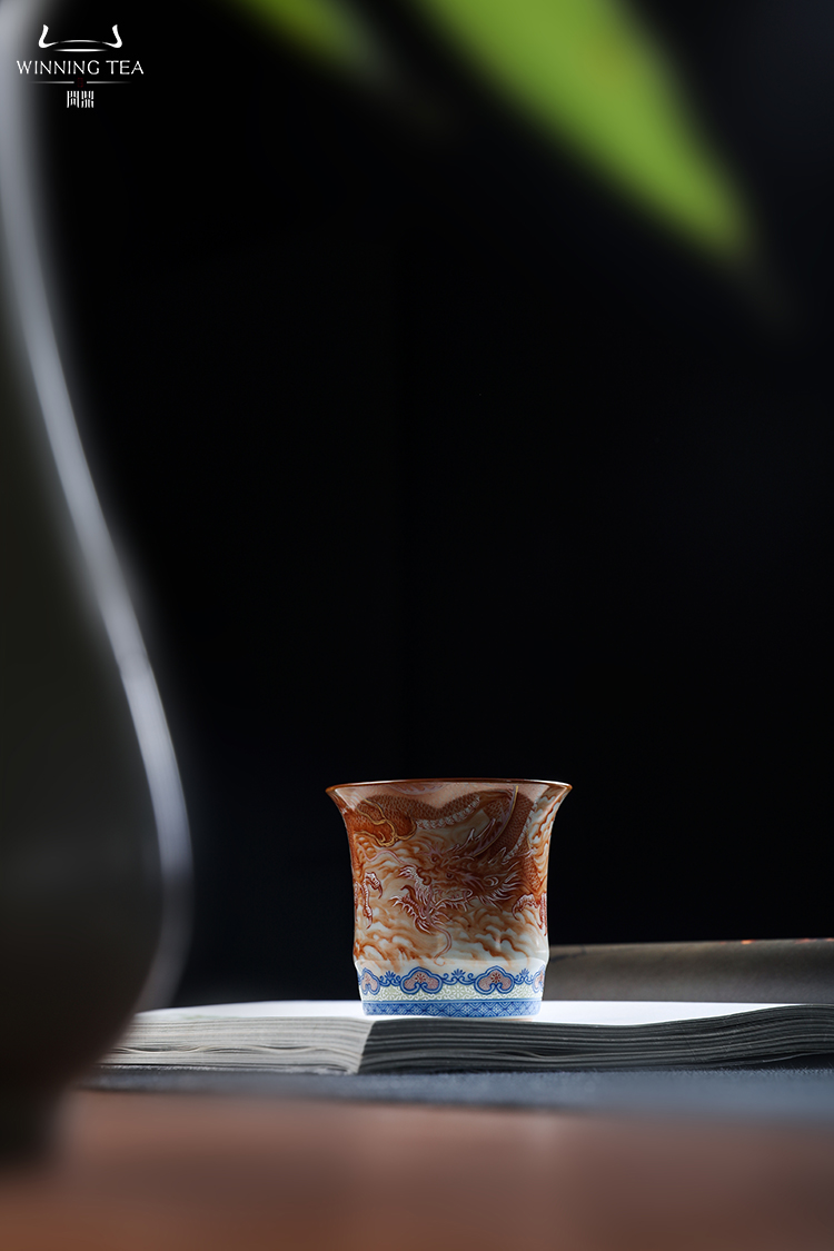 问鼎汝瓷鼎峰柴窑天青竹节杯(龙凤呈祥)(缺货)