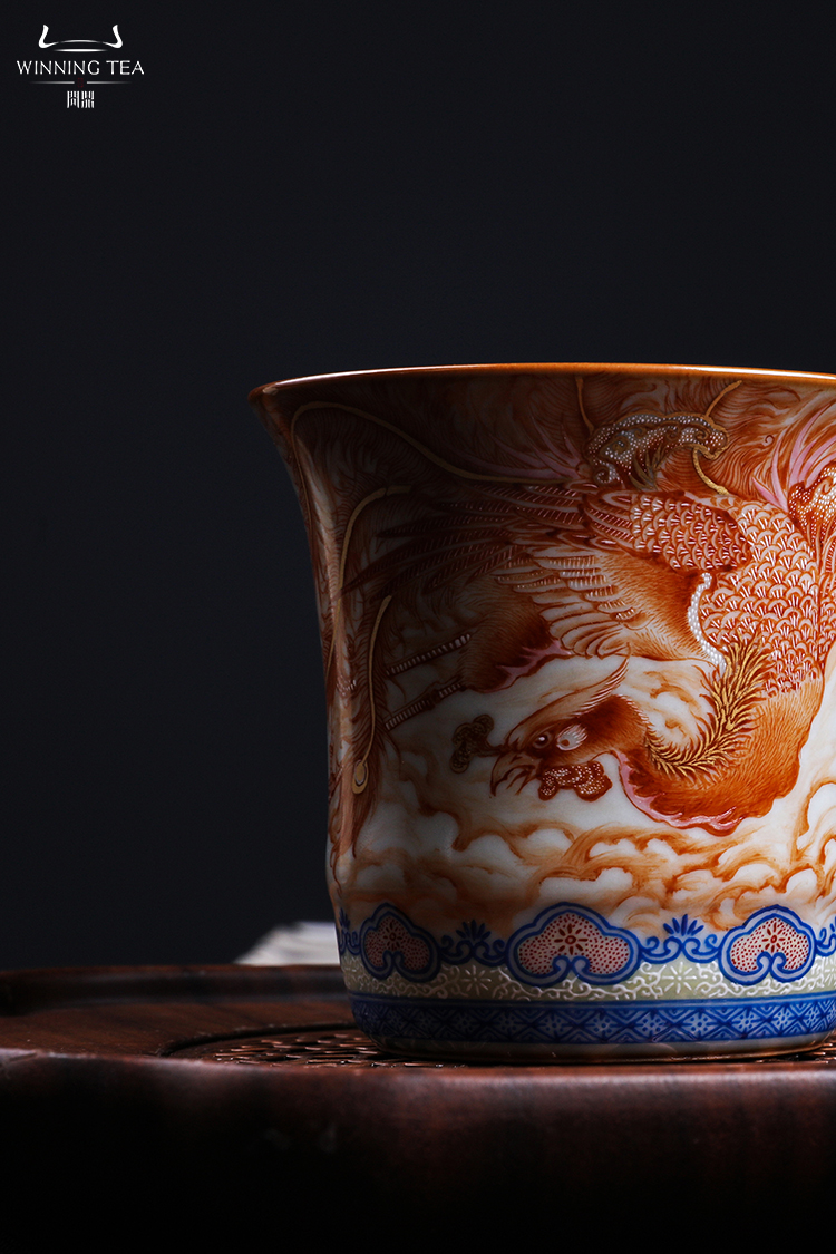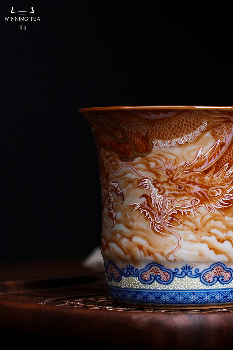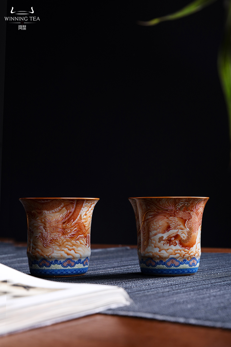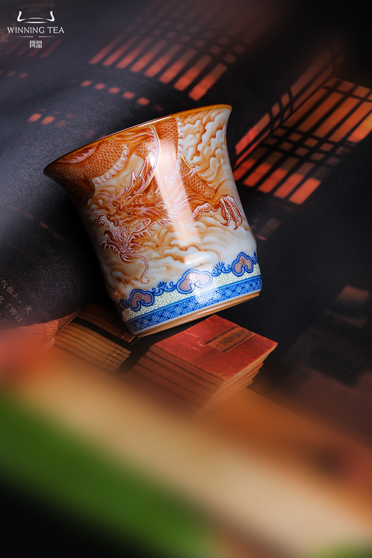 问鼎汝瓷鼎峰柴窑天青竹节杯(龙凤呈祥)(缺货)