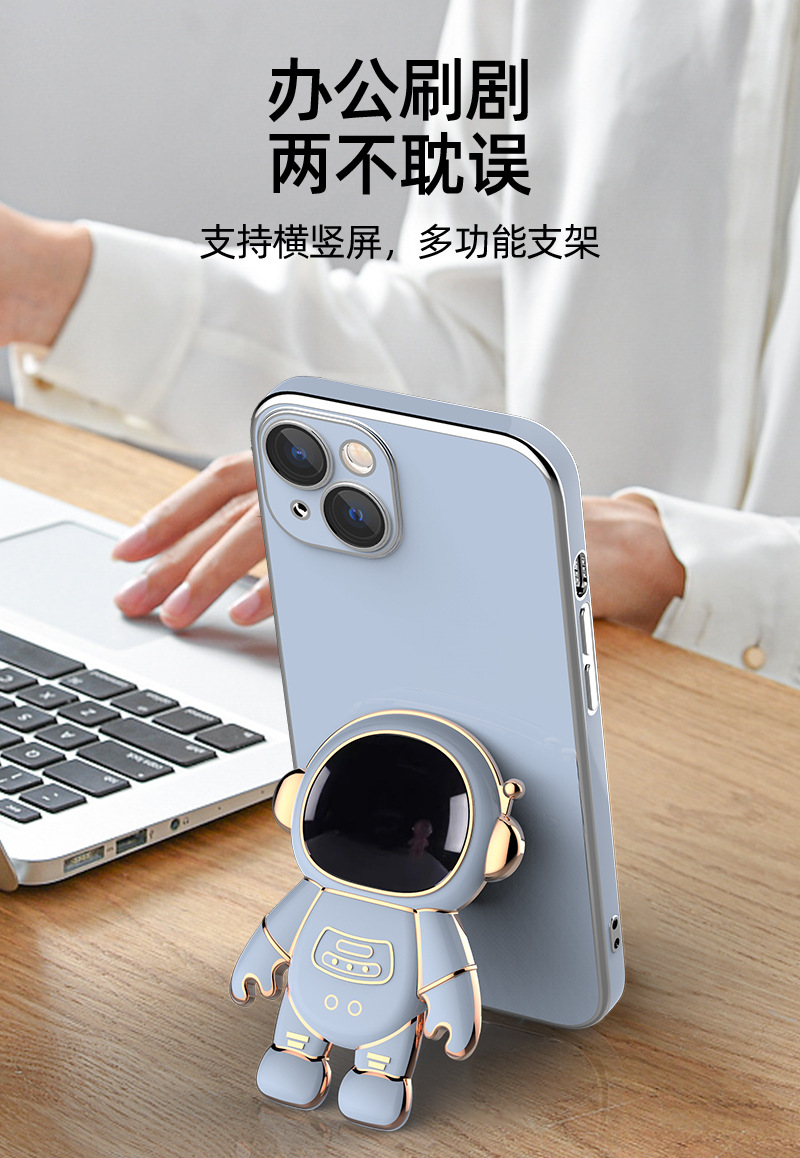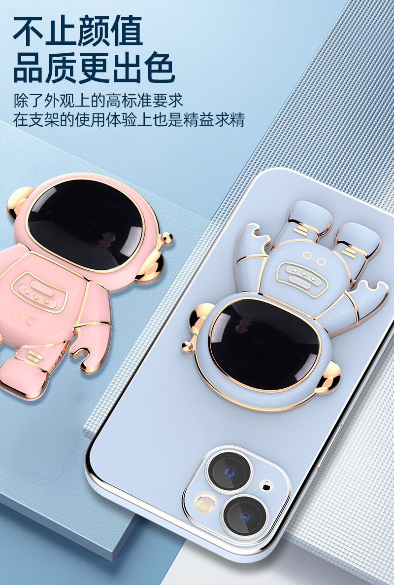 【镜头保护电镀全包边 自带多功能支架】立体宇航员适用iPhone13手机壳全包防摔12ProMax电镀支架保护套苹果全系型号