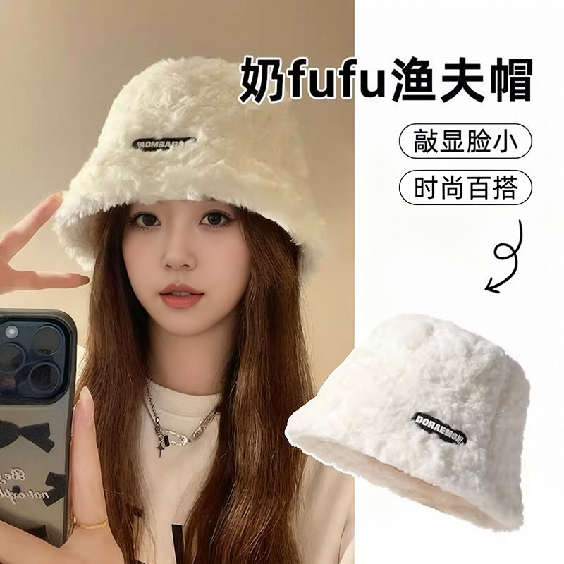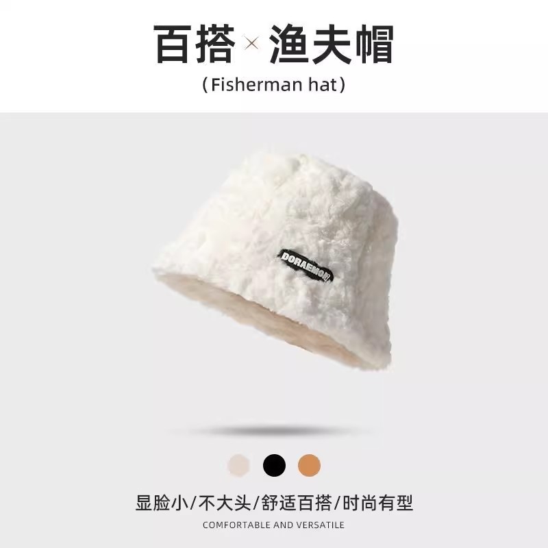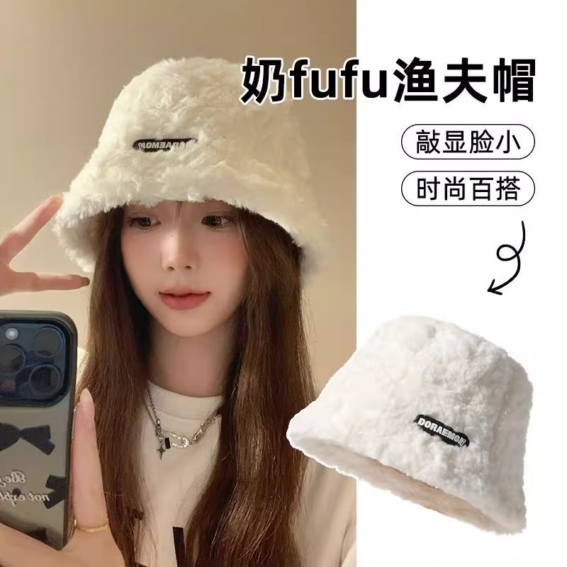 【奶fufu❗️加绒渔夫帽】敲显脸小时尚百搭,绒毛细密舒适贴合,内里隐藏式抽绳微调帽围,舒适百搭保暖防风护耳雷锋帽日系骑行显脸小盆帽QQ