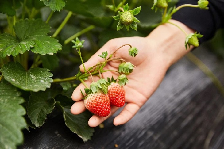 红鹤有机草莓,作为日本静冈县「章姬」与「幸香」杂交育成的优良品种,