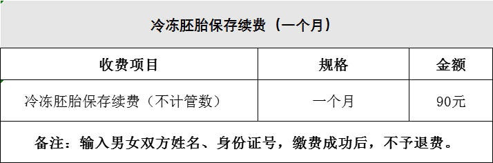 冷冻胚胎保存续费(1个月) 缴费成功后,不予退费