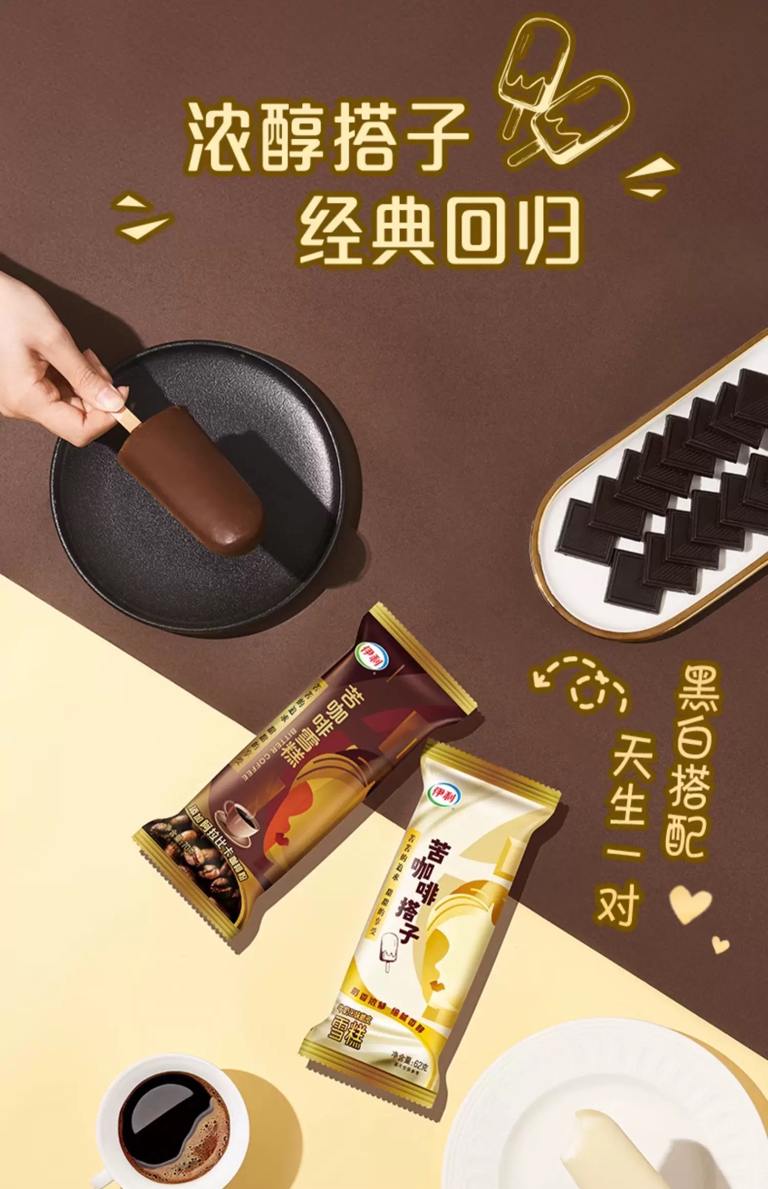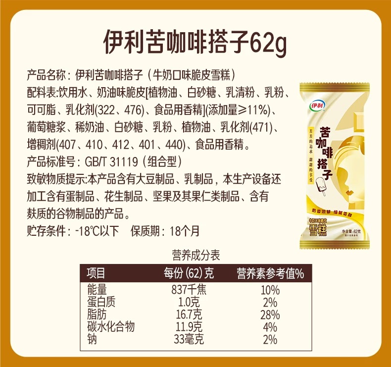 伊利苦咖啡搭子雪糕经典冰激凌62克/袋雪糕冰糕批发