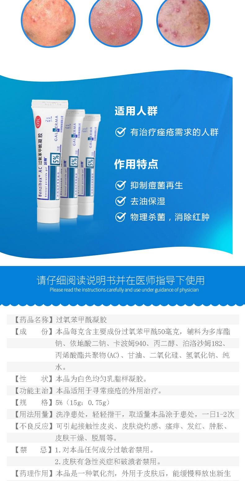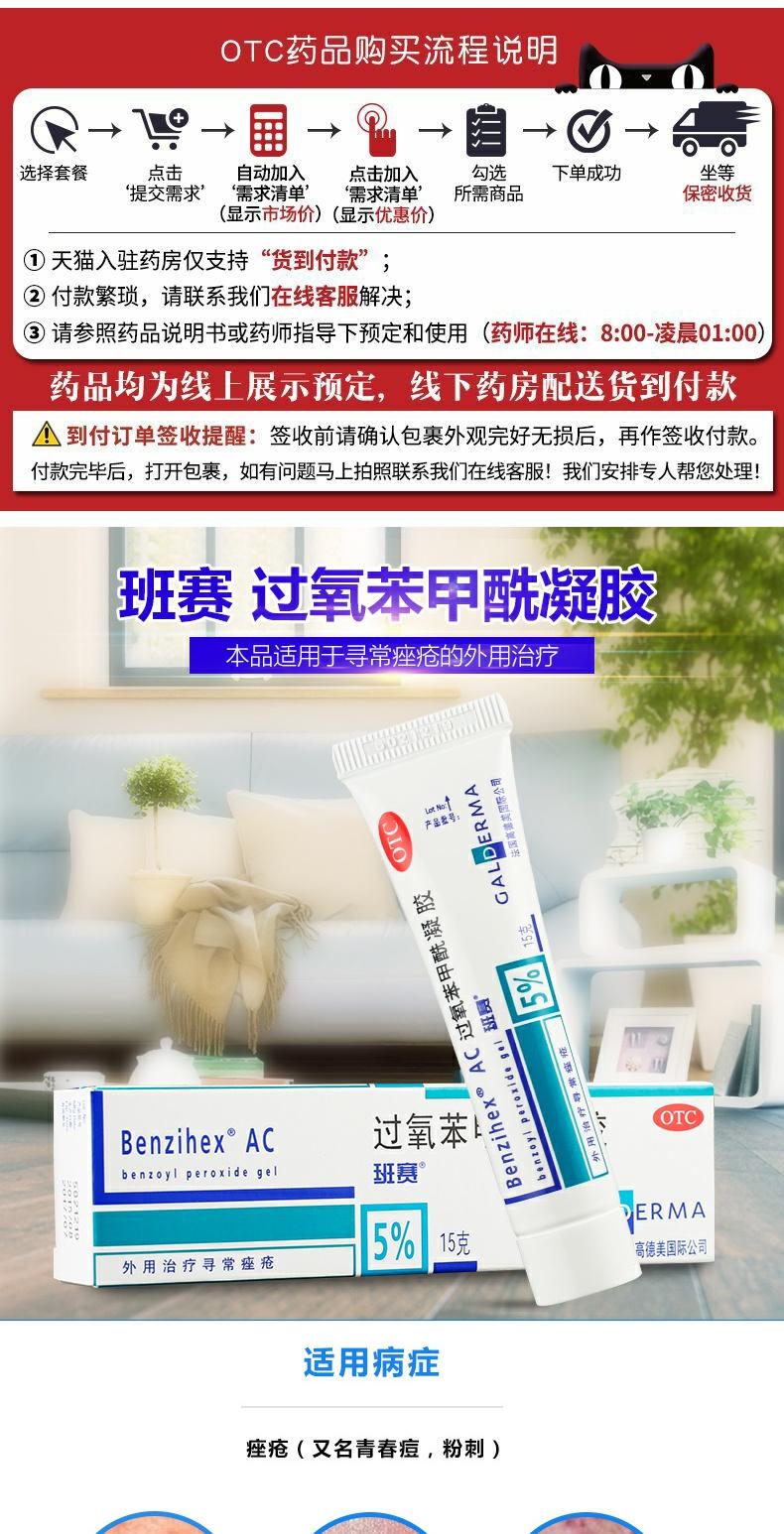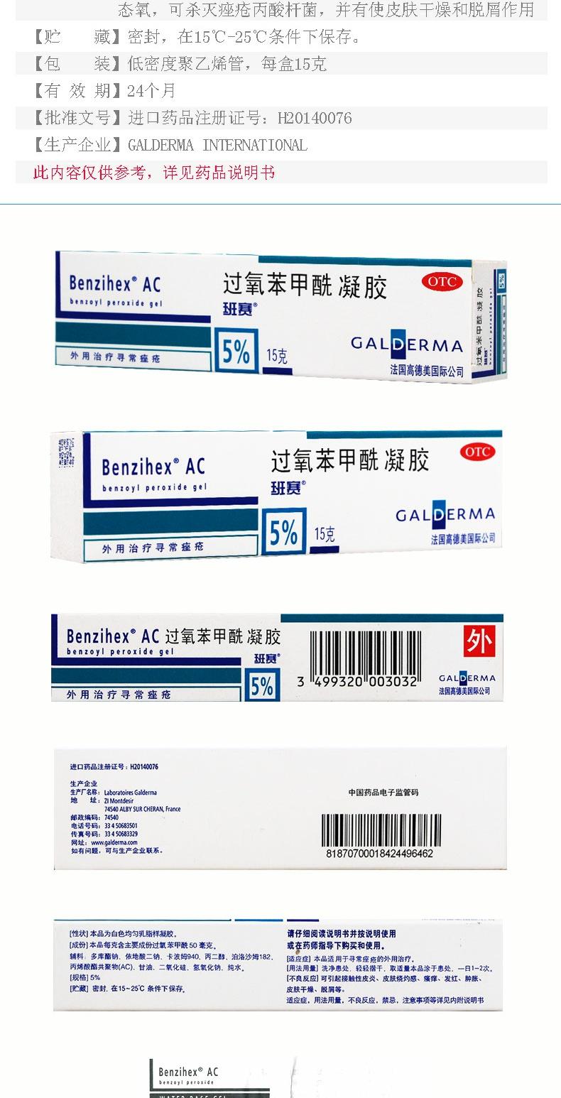 班赛过氧苯甲酰凝胶15g祛痘外用痤疮软膏青春痘暗疮去粉刺