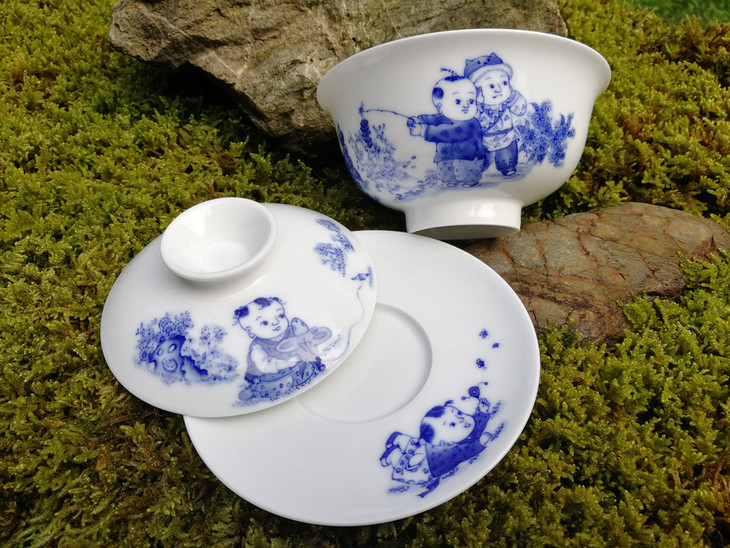 九段烧注册品牌 段窑婴戏盖碗闹元宵盖碗