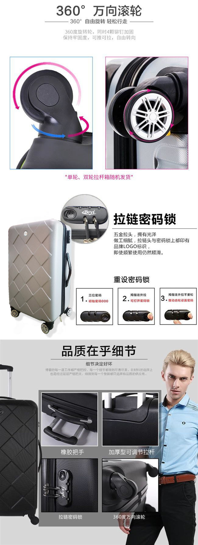 2、细节展示:材质、工艺、做工等;