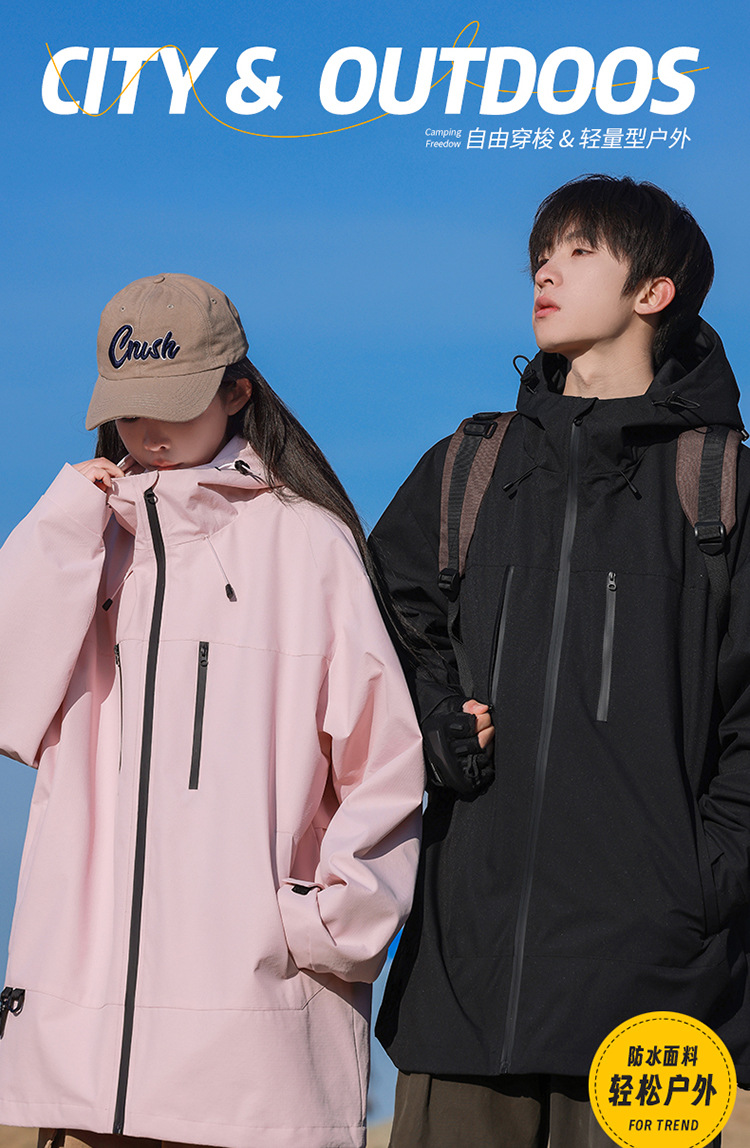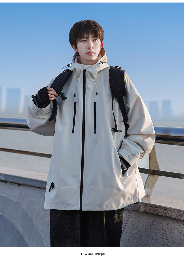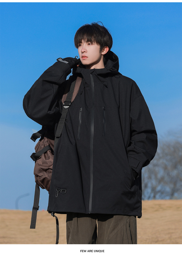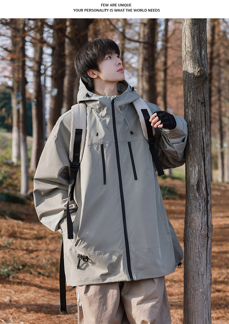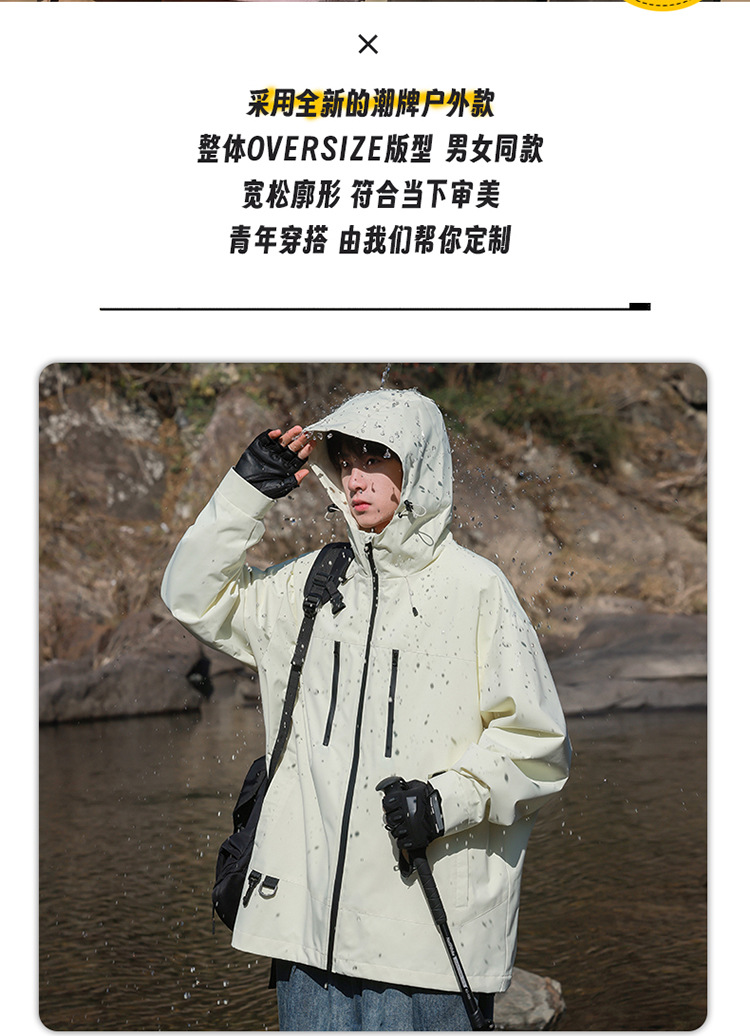 【轻量化出行!山系冲锋衣】整体OVERSIZE版型,男女同款,春秋季男士连帽外,潮牌户外登山休闲美式夹克,情侣防水防风外套L