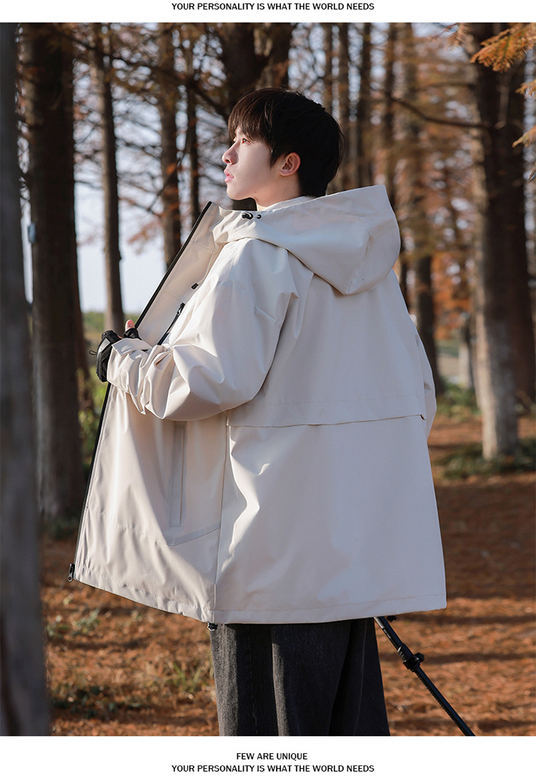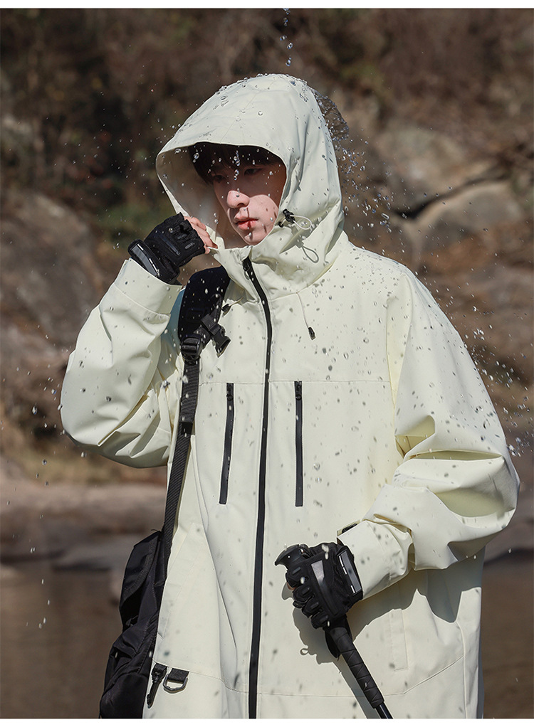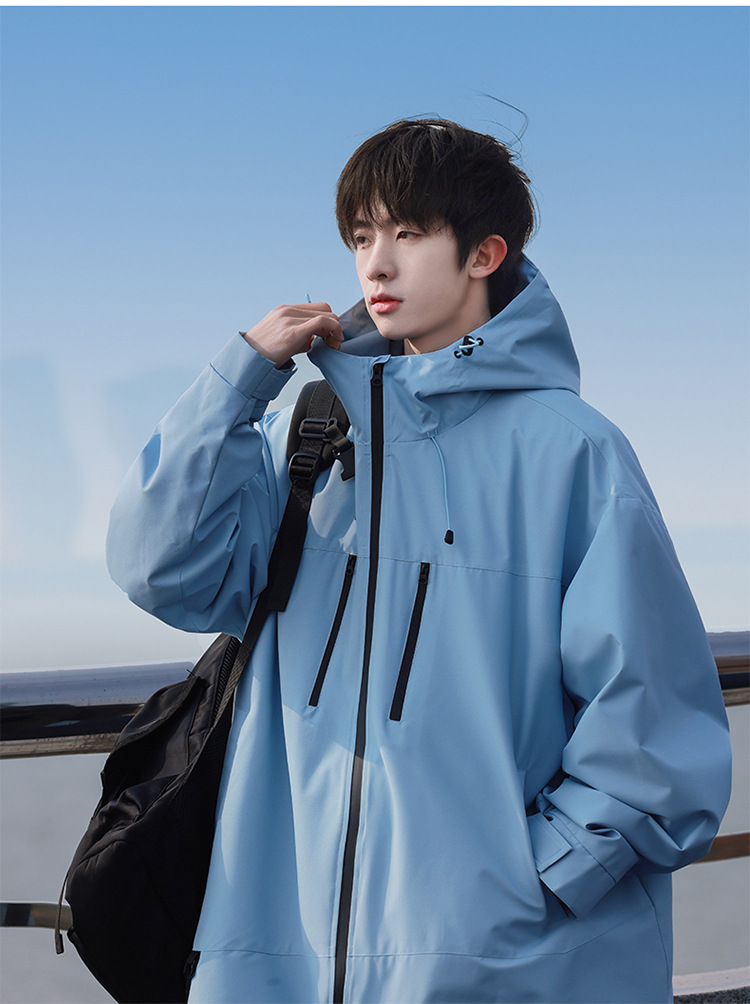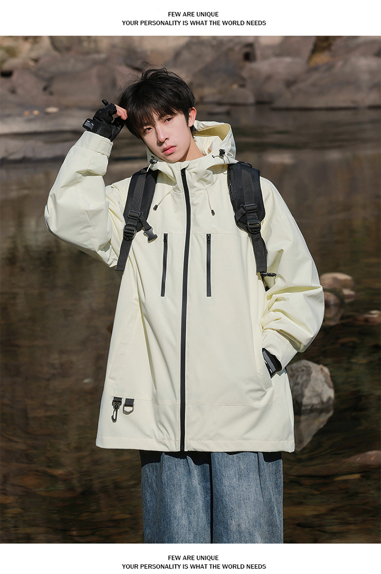 【轻量化出行!山系冲锋衣】整体OVERSIZE版型,男女同款,春秋季男士连帽外,潮牌户外登山休闲美式夹克,情侣防水防风外套L
