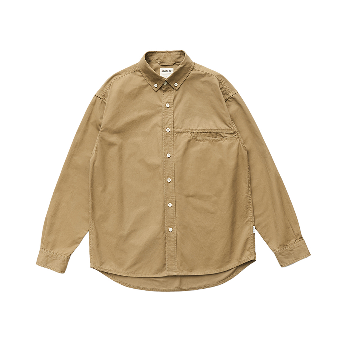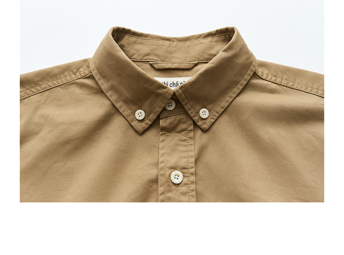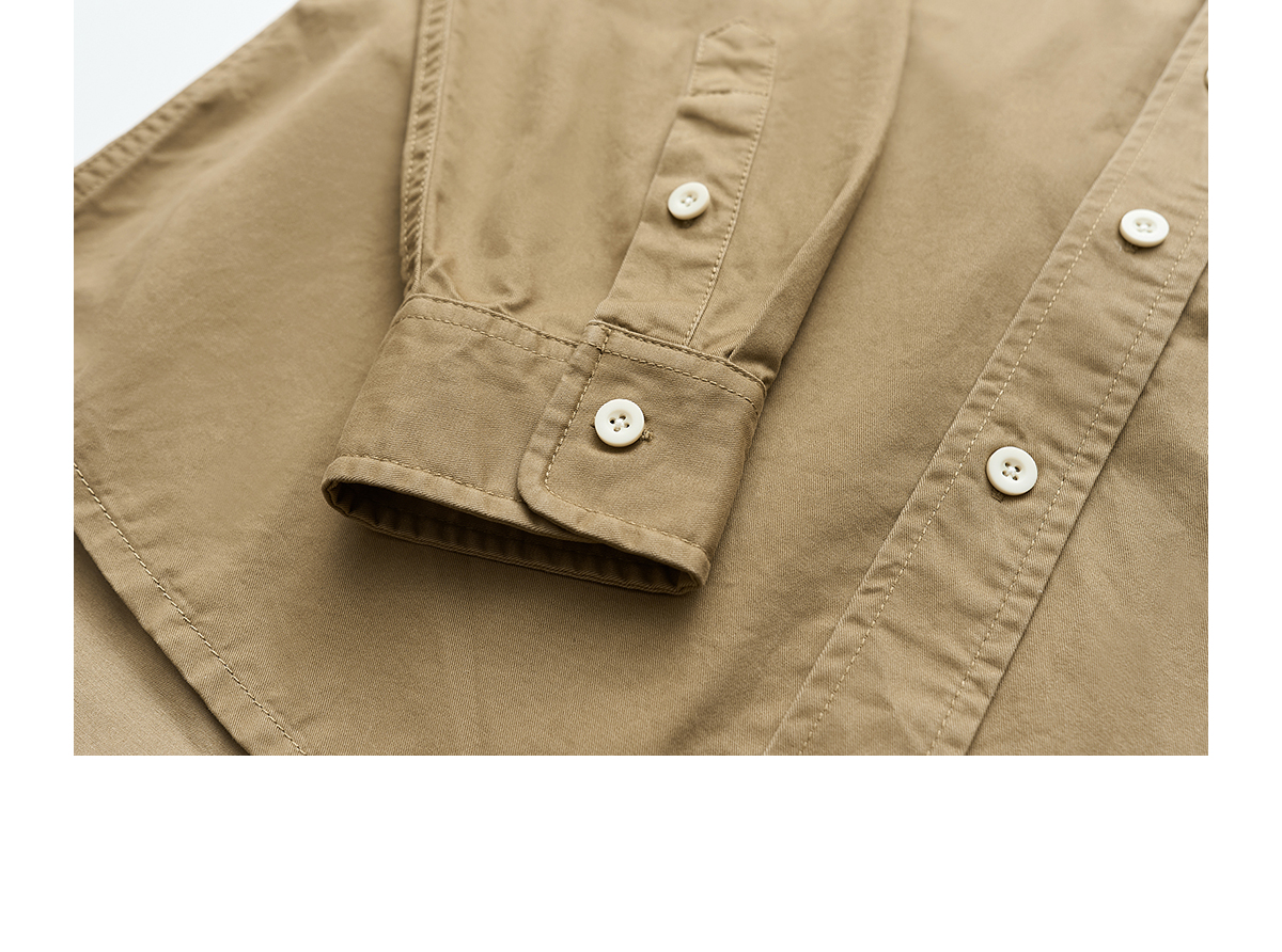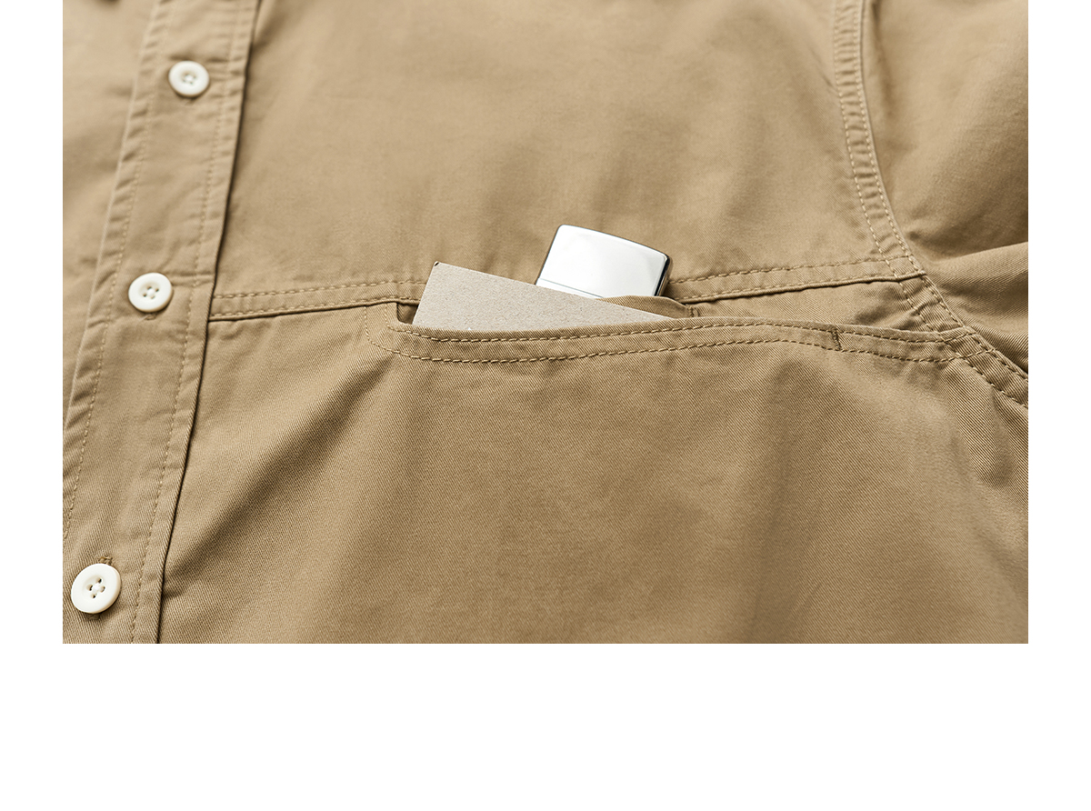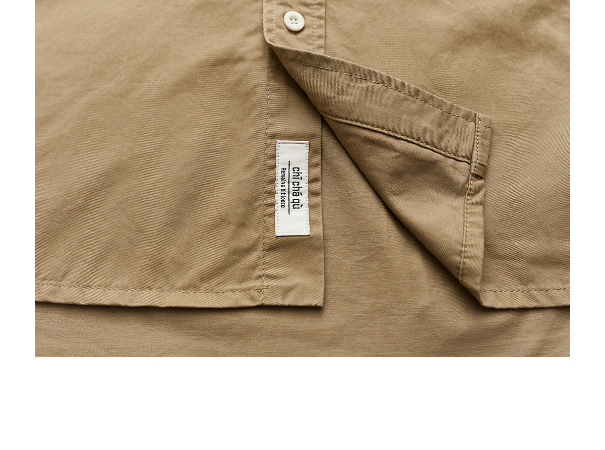 吃茶去chichaqu全棉斜纹口袋休闲长袖衬衫