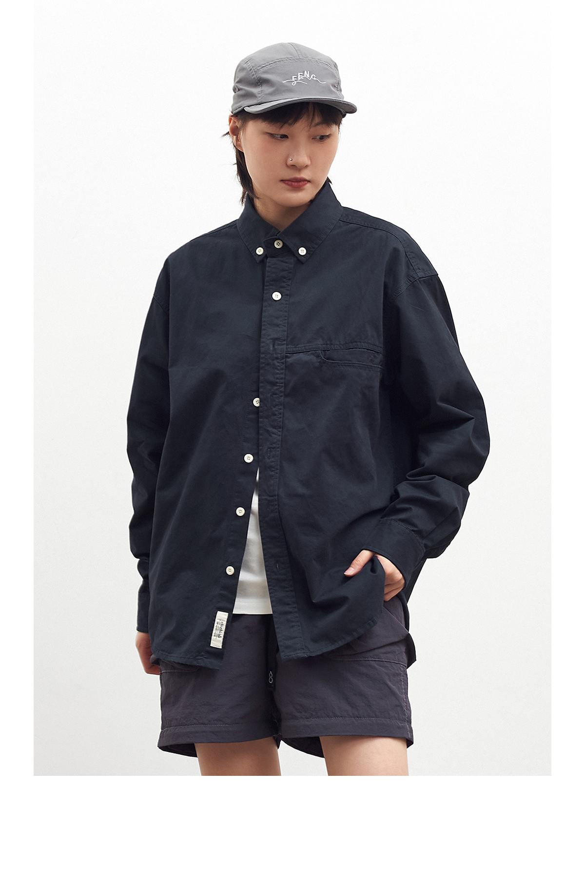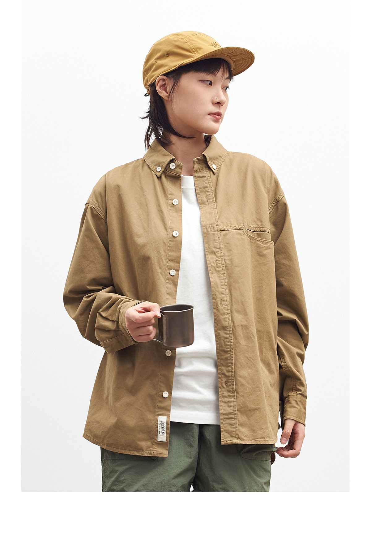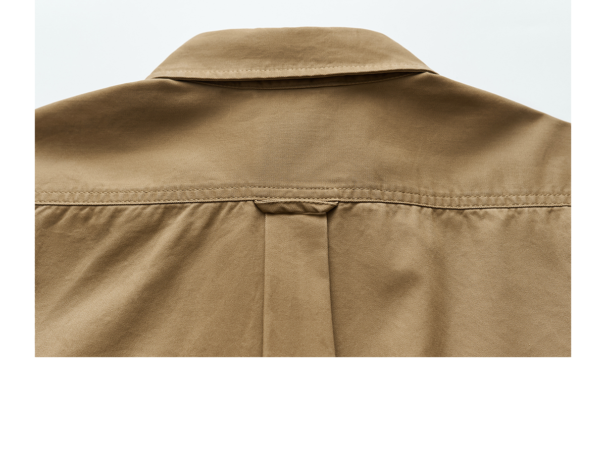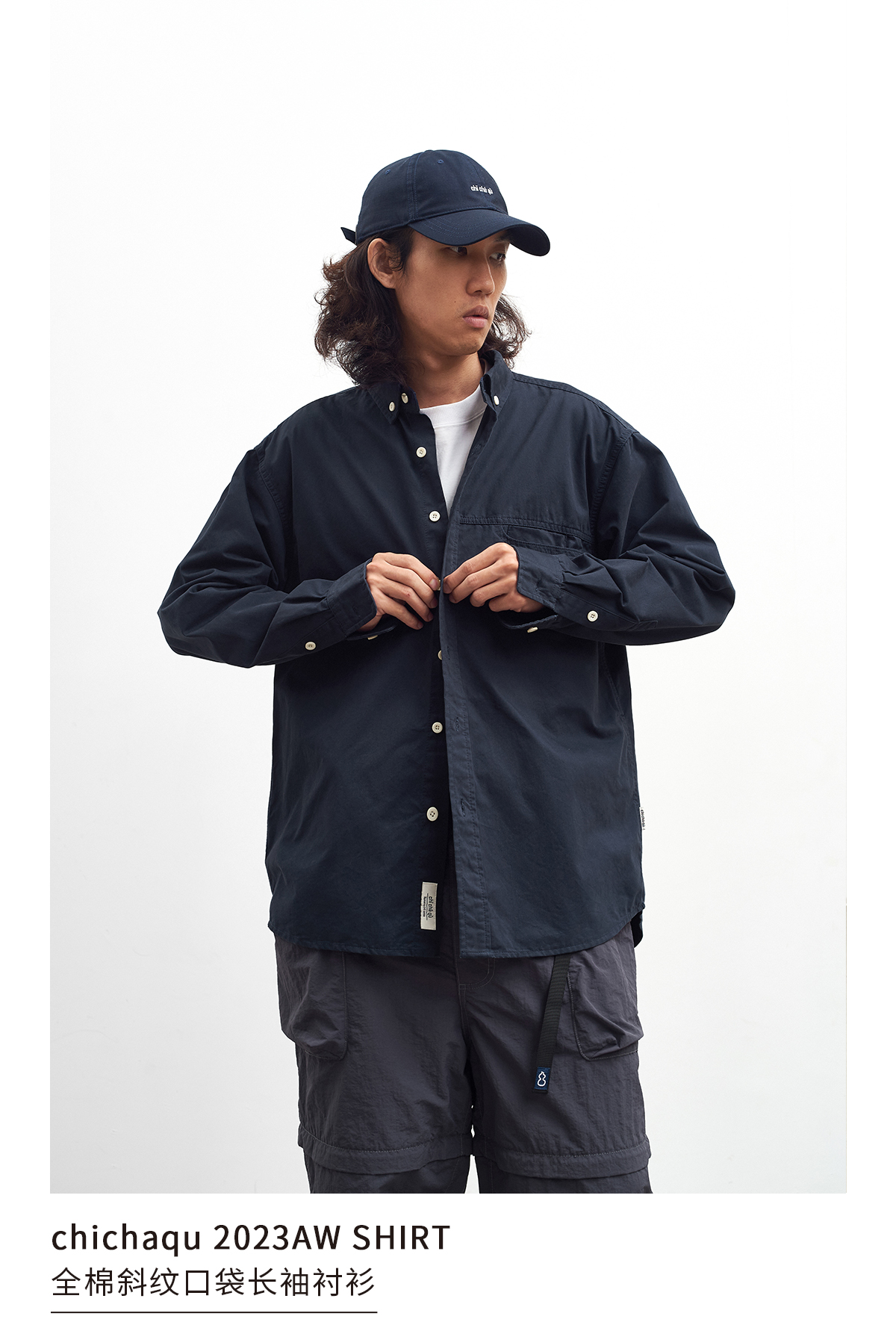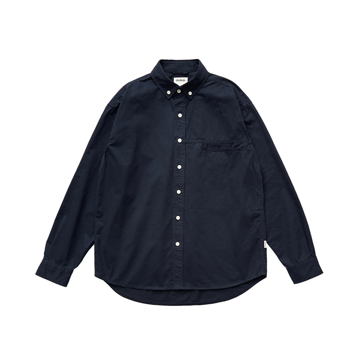 吃茶去chichaqu全棉斜纹口袋休闲长袖衬衫