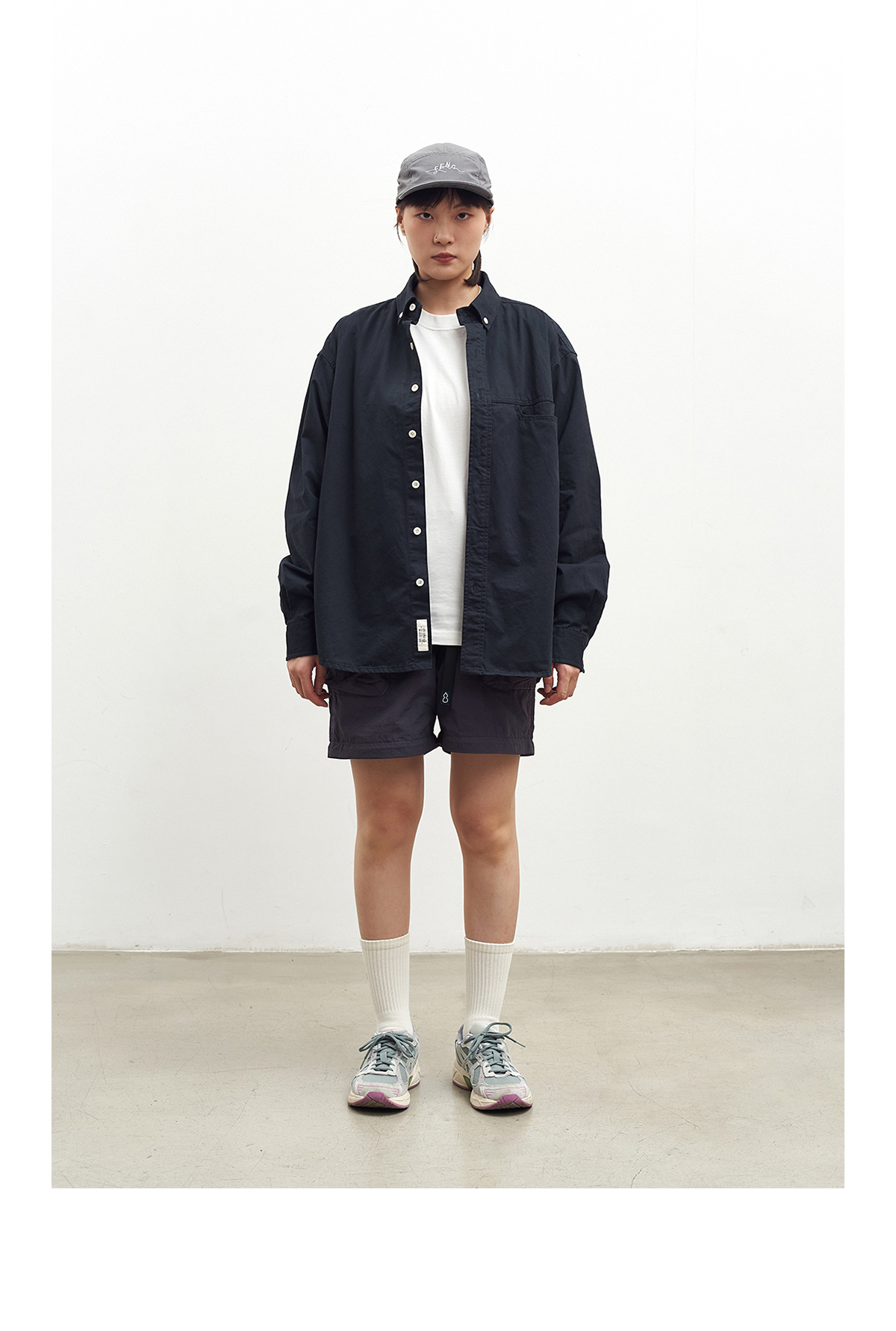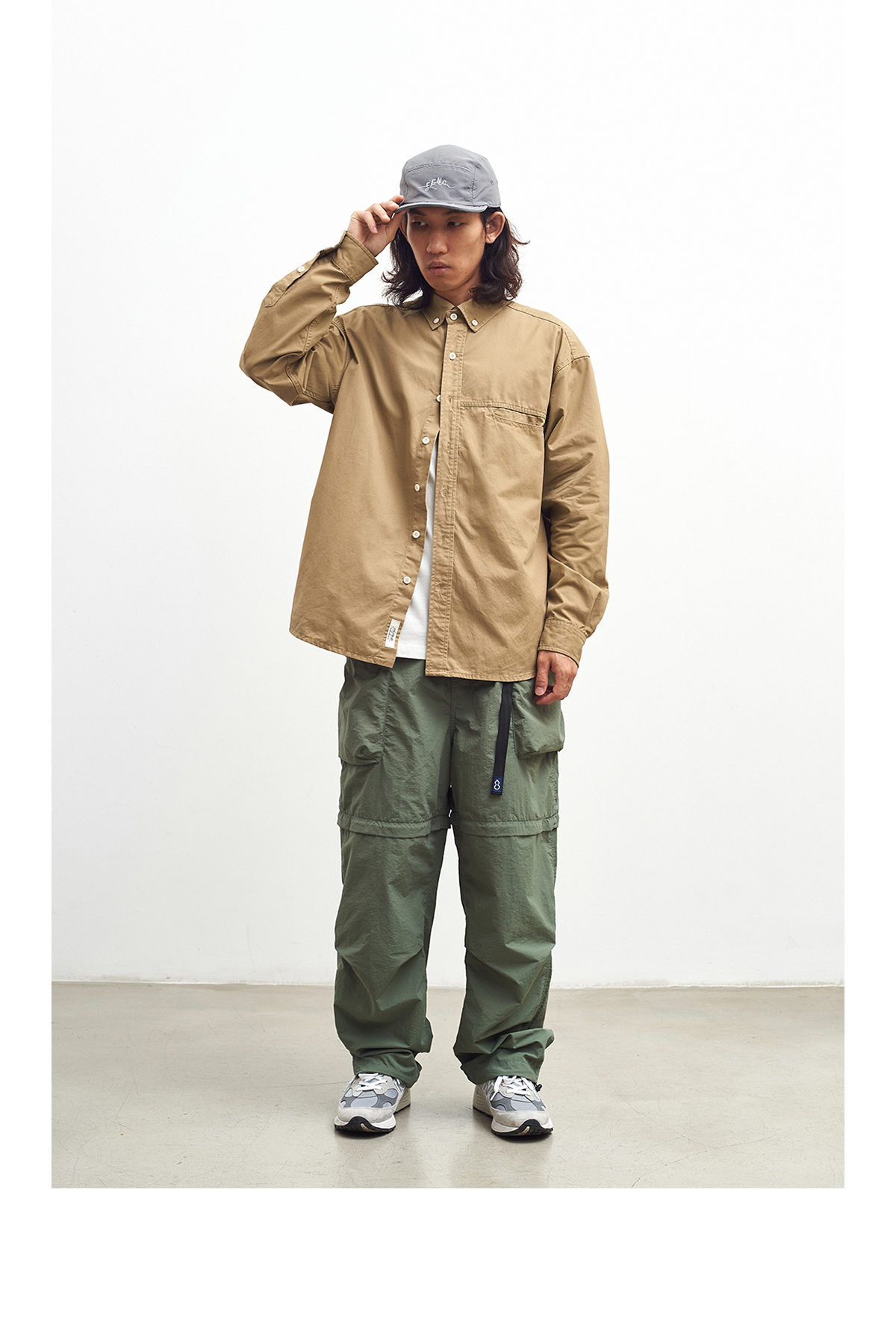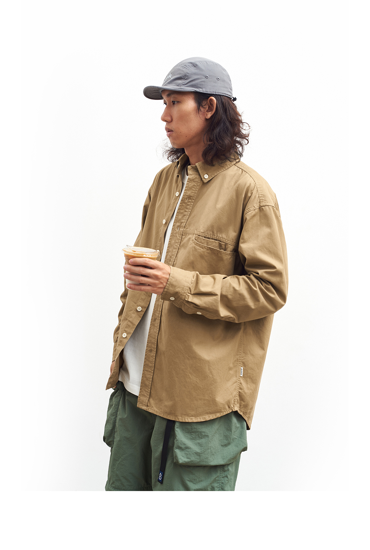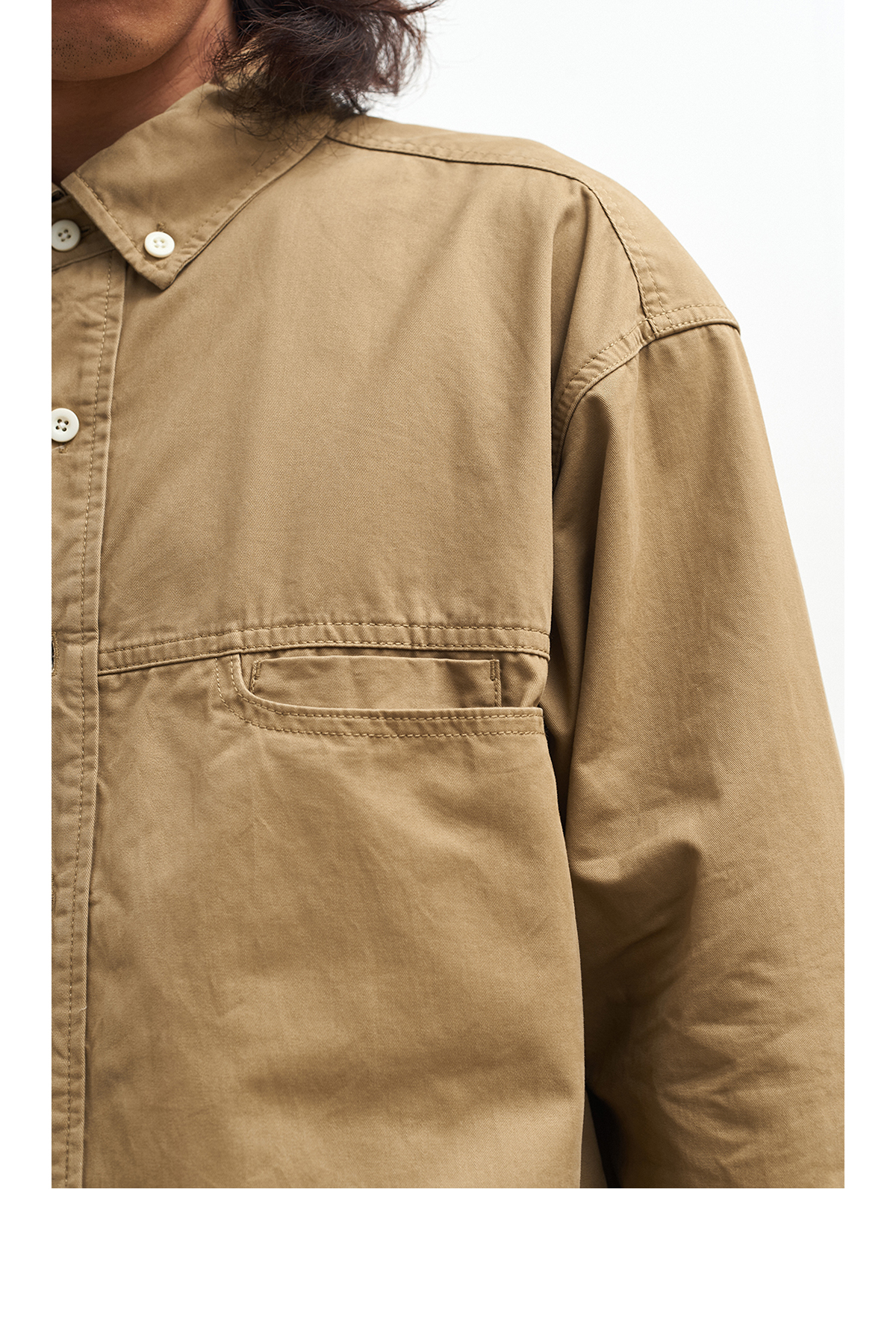 吃茶去chichaqu全棉斜纹口袋休闲长袖衬衫