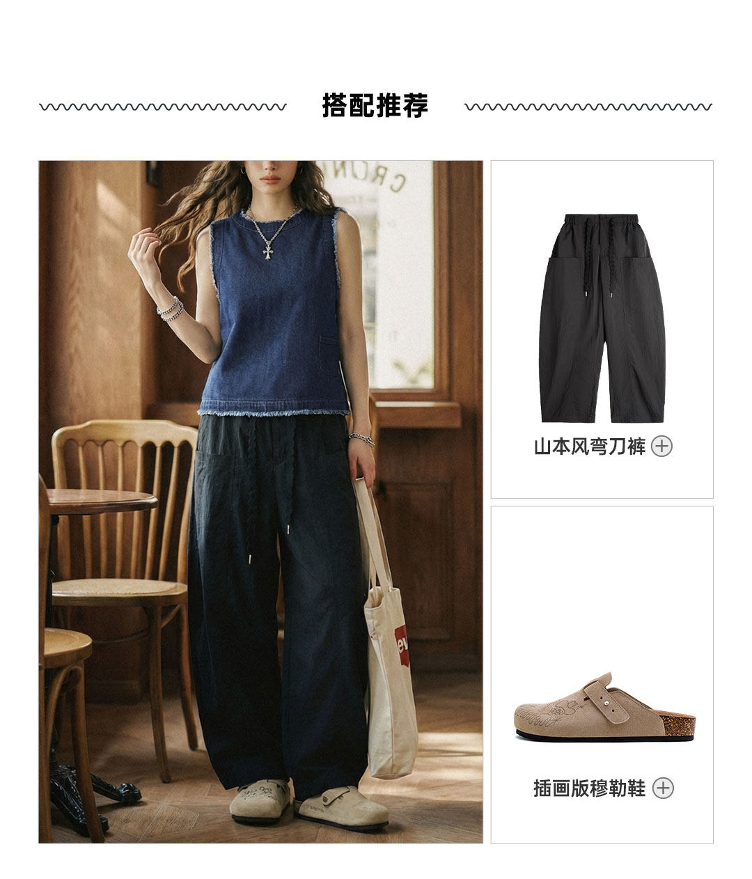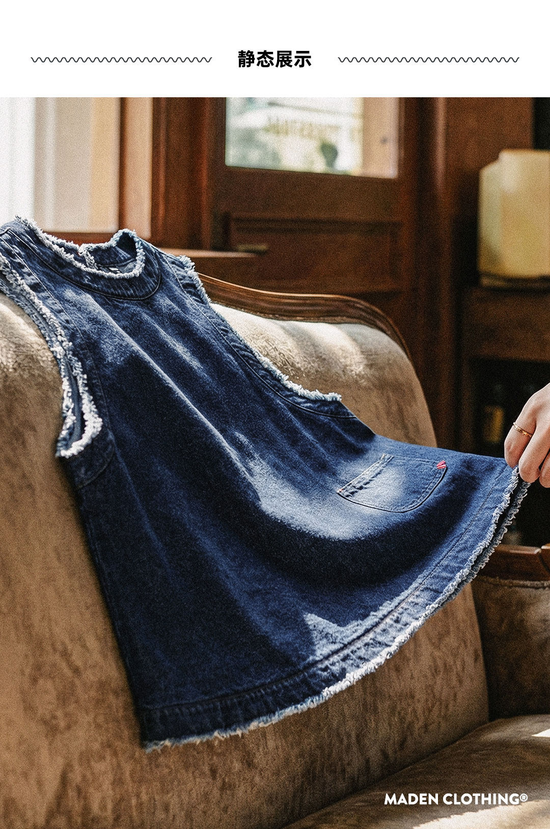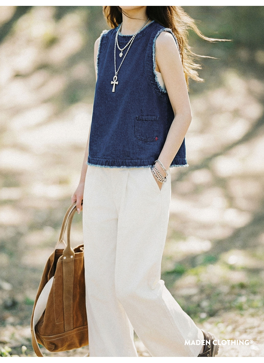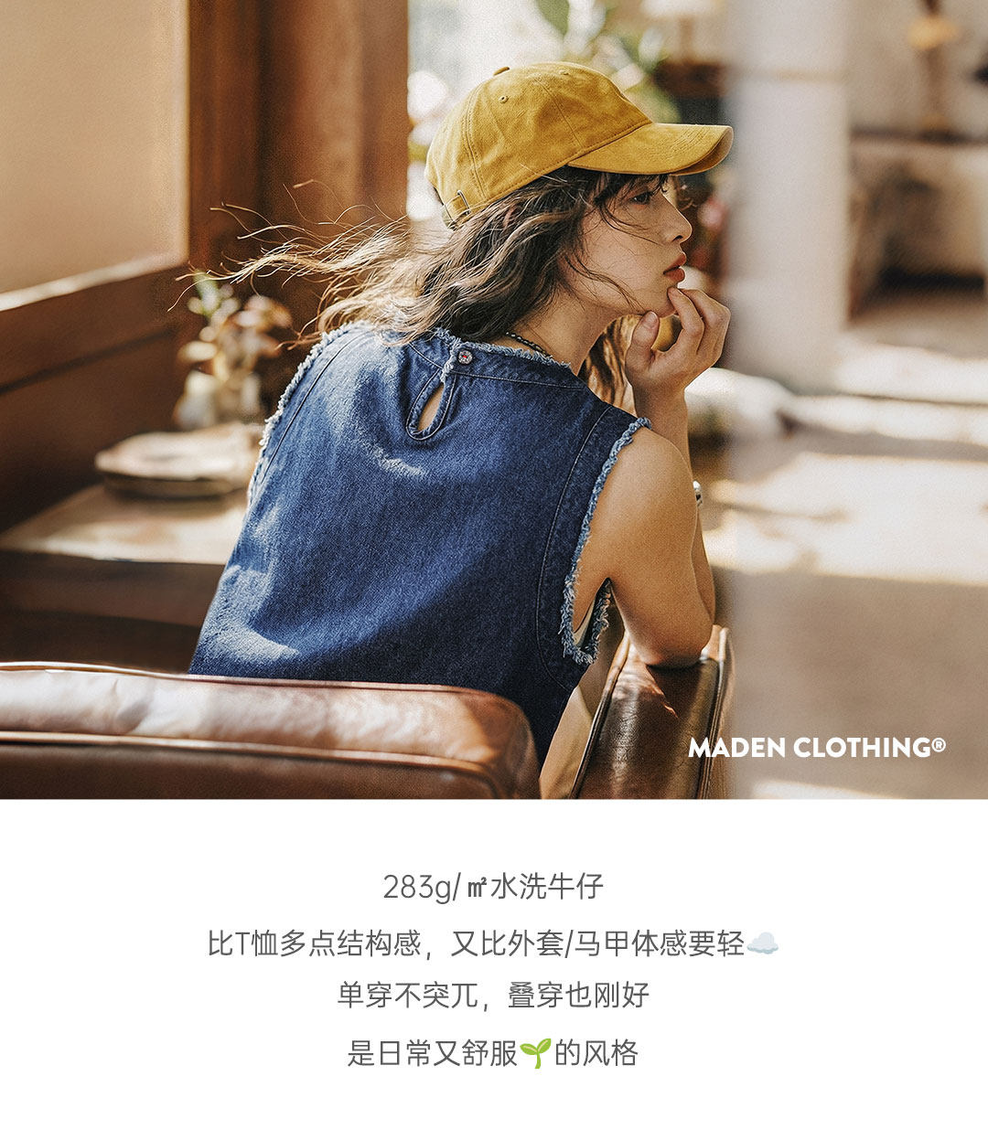 马登日系复古宽松叠单外穿牛仔马甲外套无袖坎肩背心上衣女士春夏