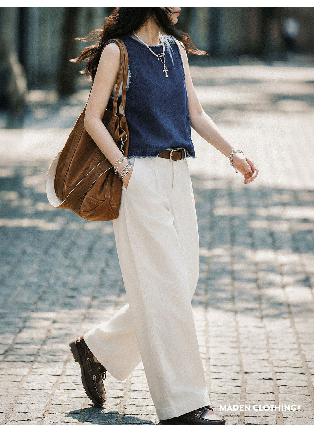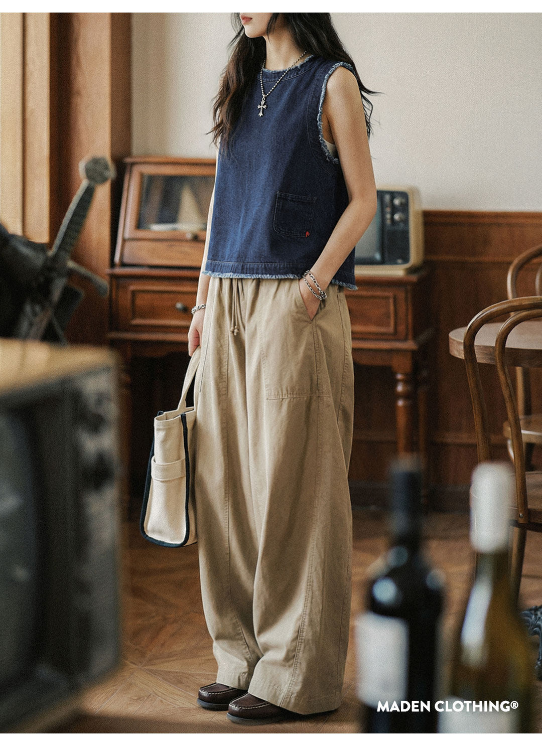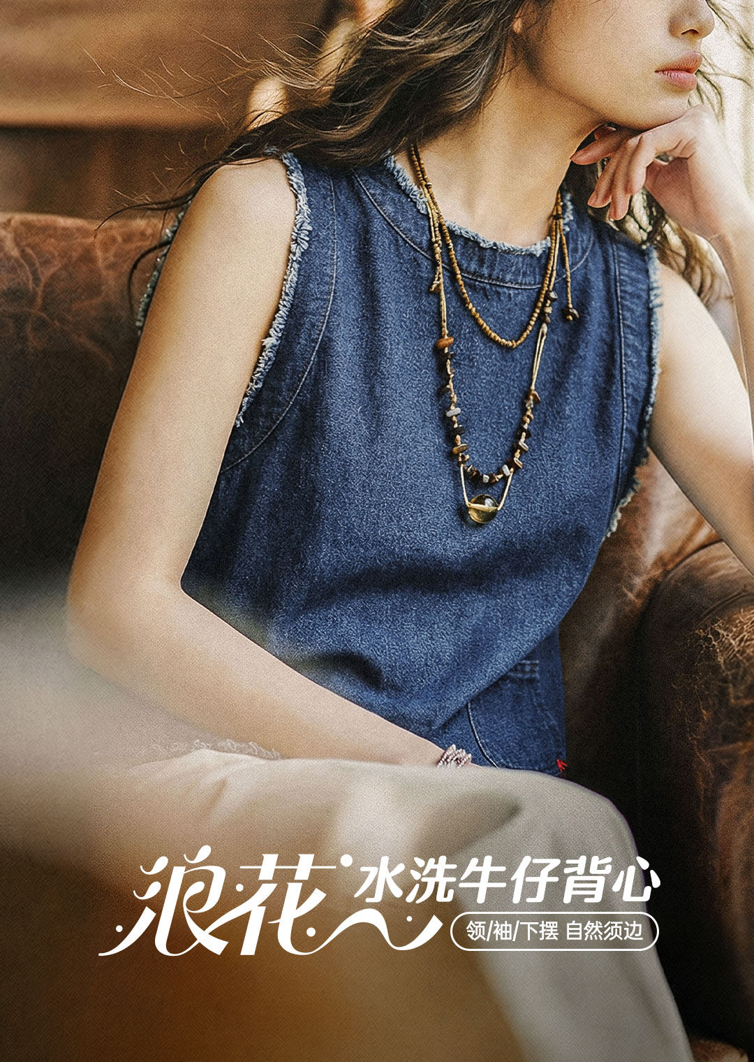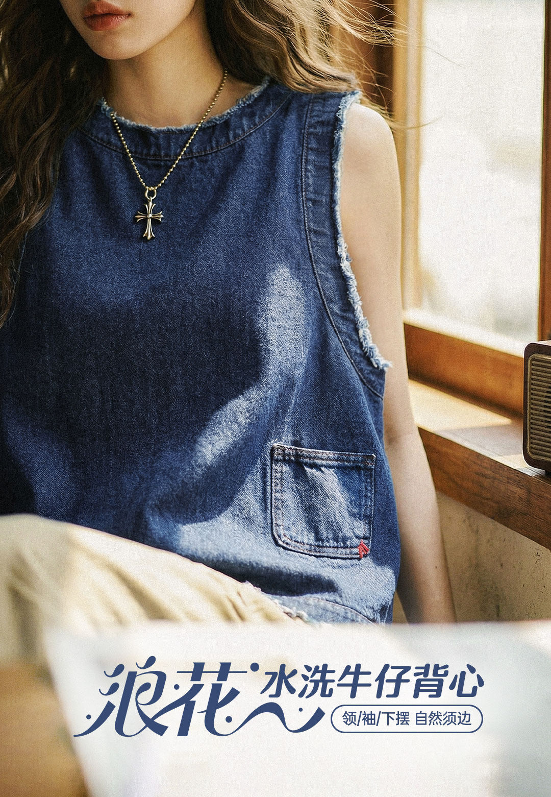 马登日系复古宽松叠单外穿牛仔马甲外套无袖坎肩背心上衣女士春夏