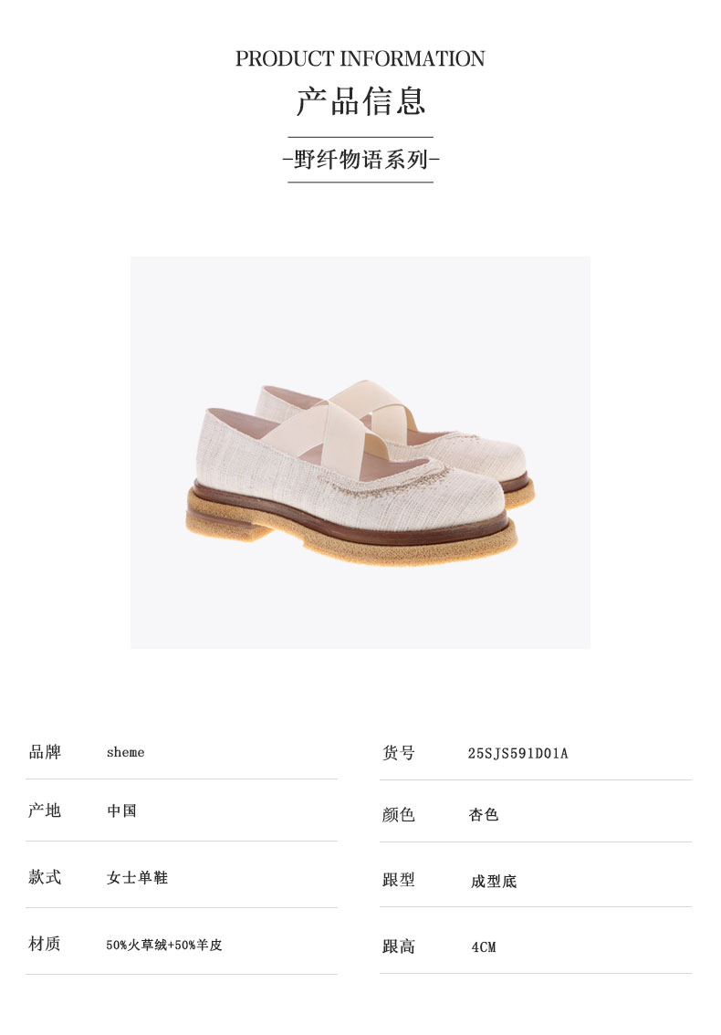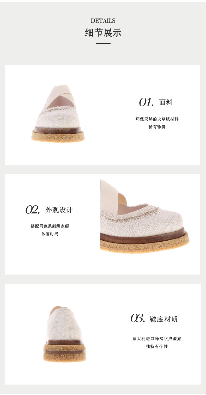 sheme野纤物语系列环保天然火草绒材质刺绣点缀女式芭蕾平底鞋可定制