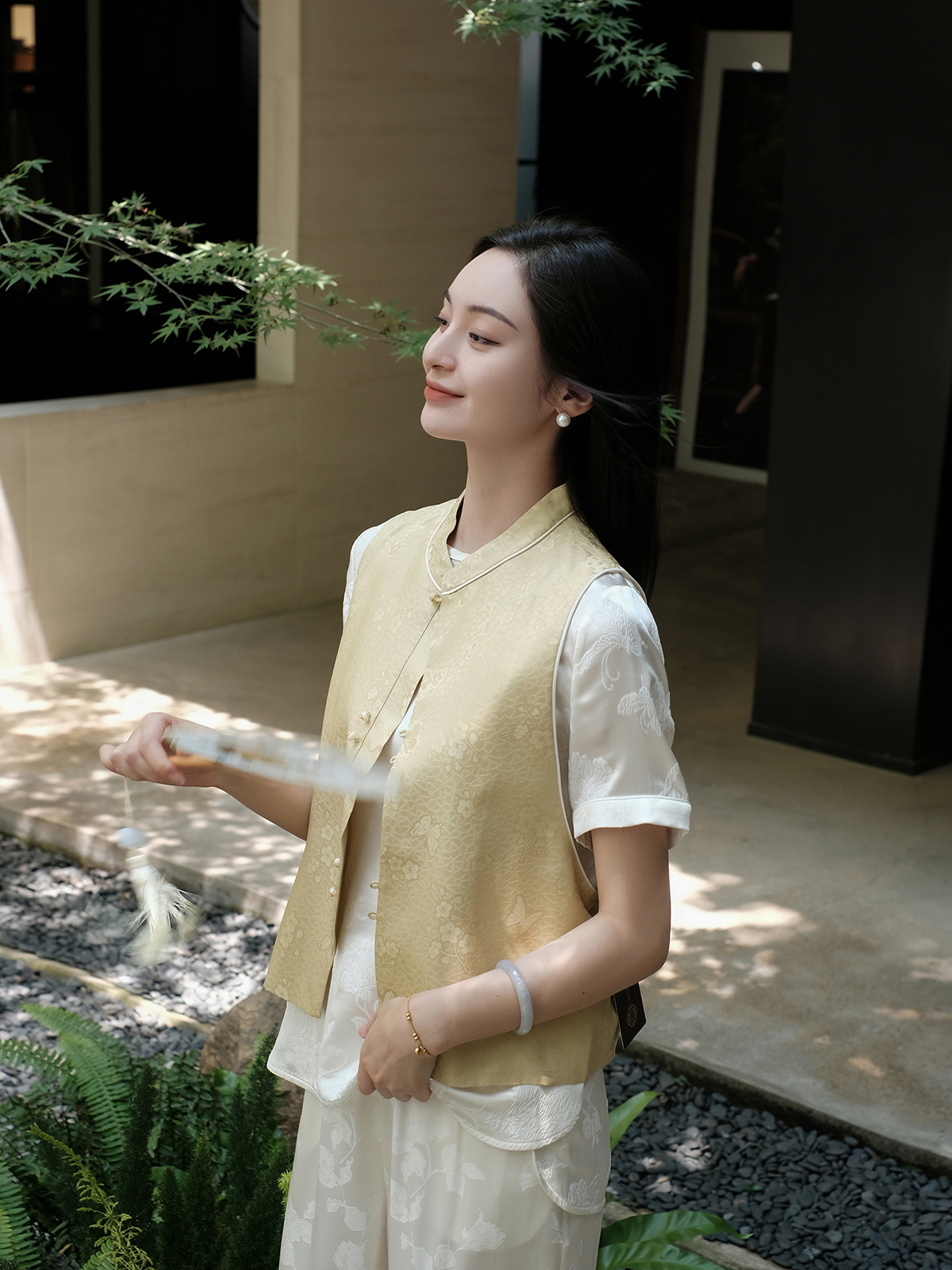 盛唐婧 |真丝花罗芳蝶对襟马甲-黄色