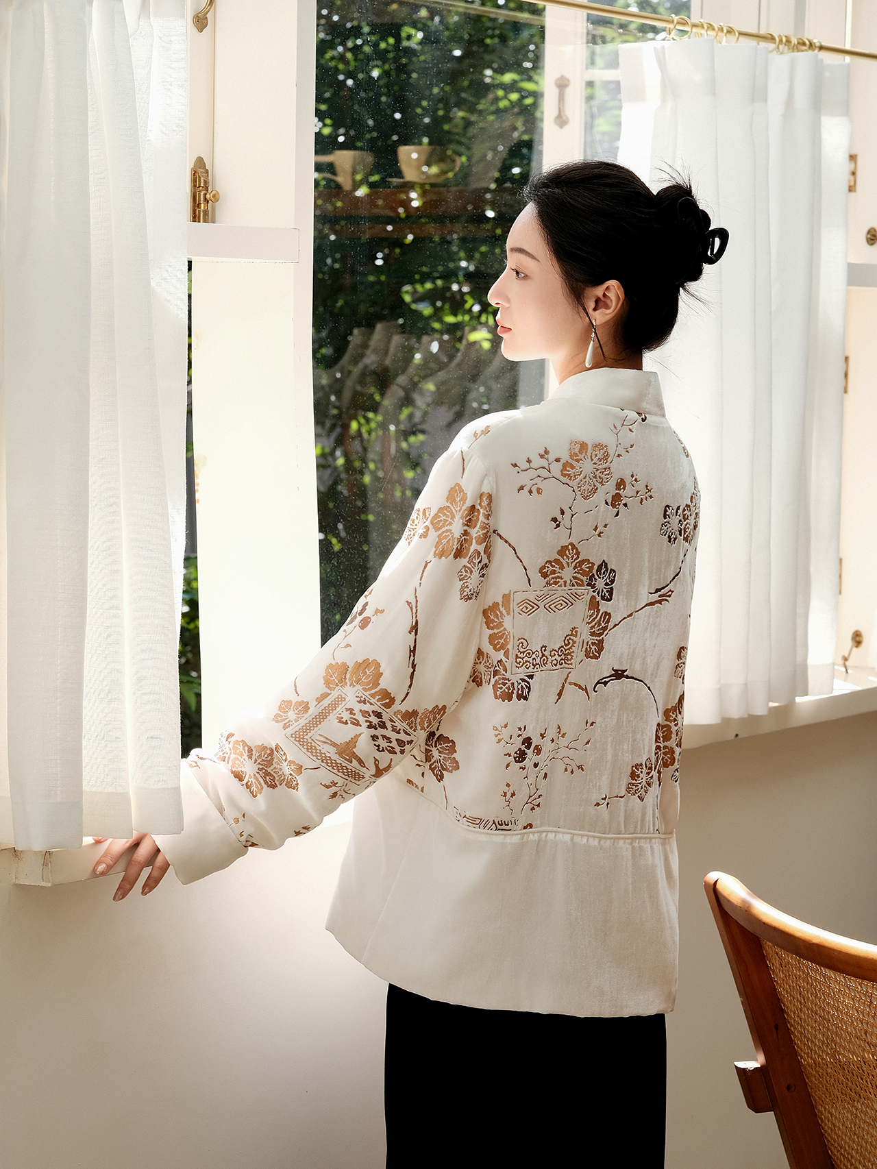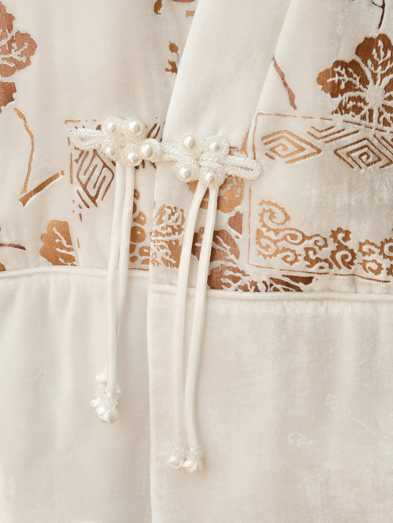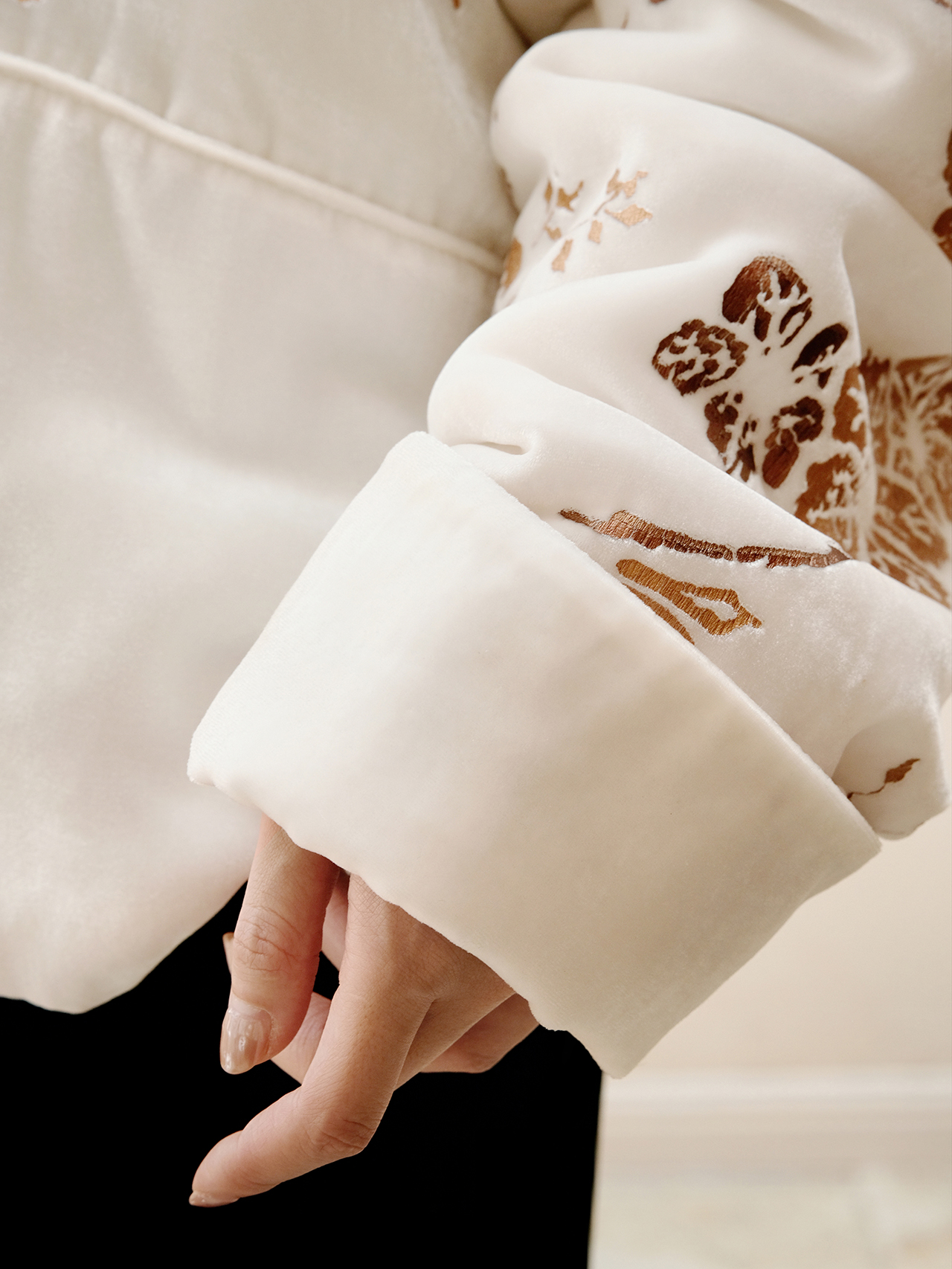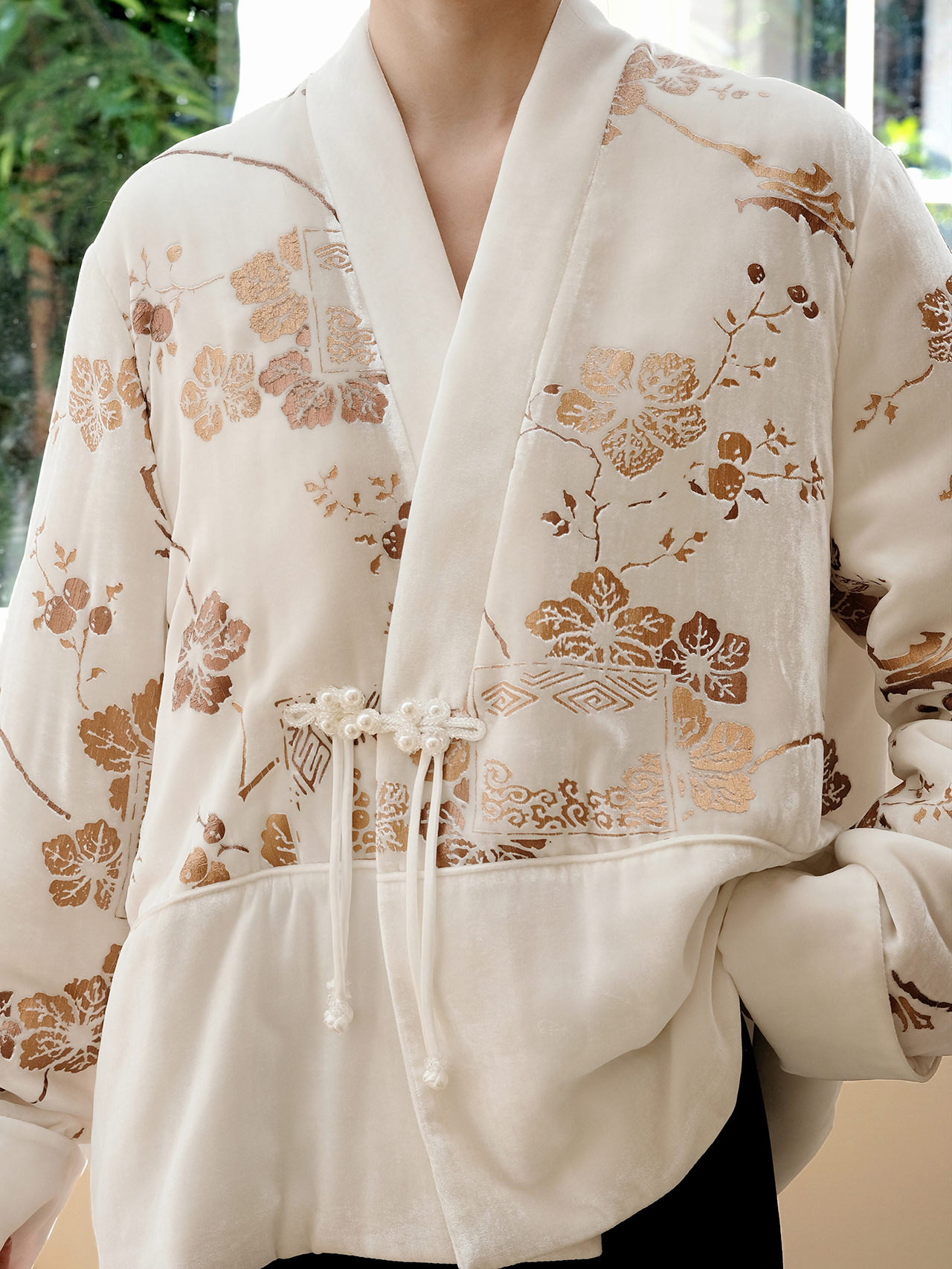 盛唐牡丹 | 丝绒烫金花扣夹棉外套