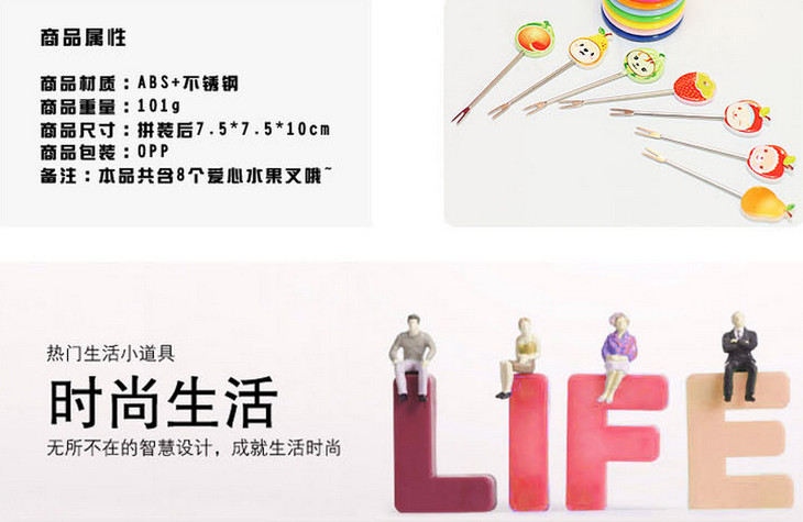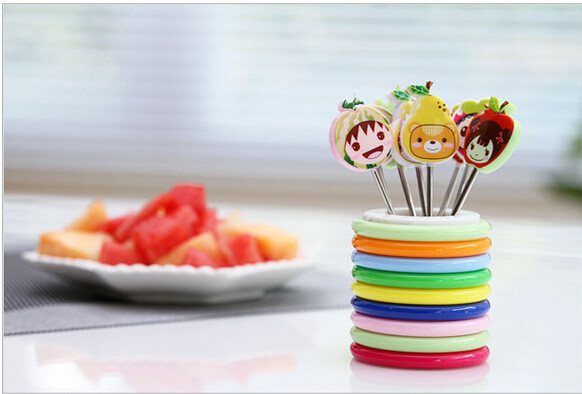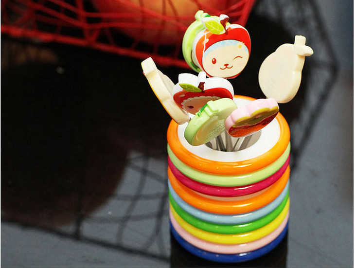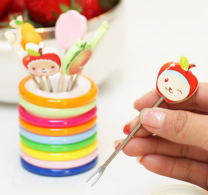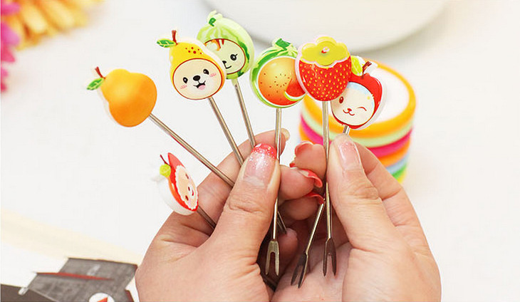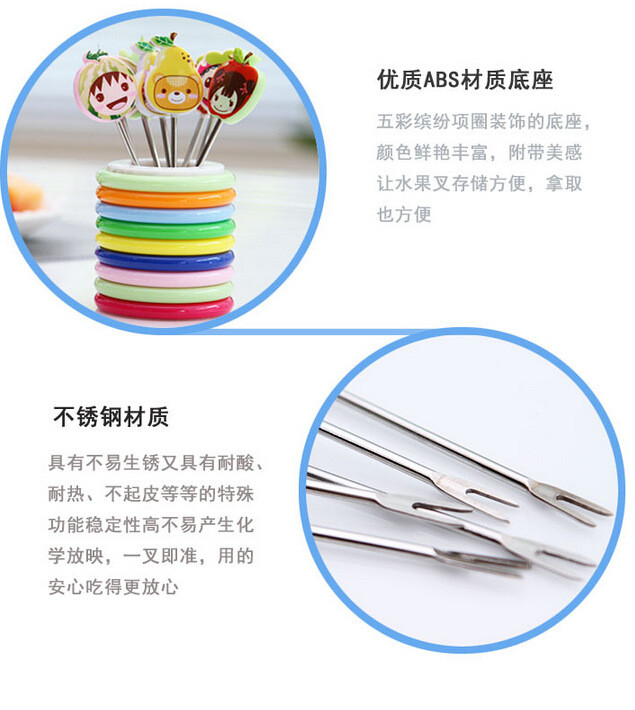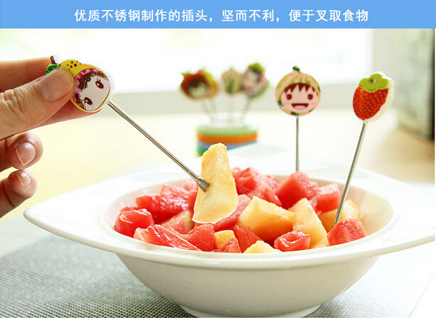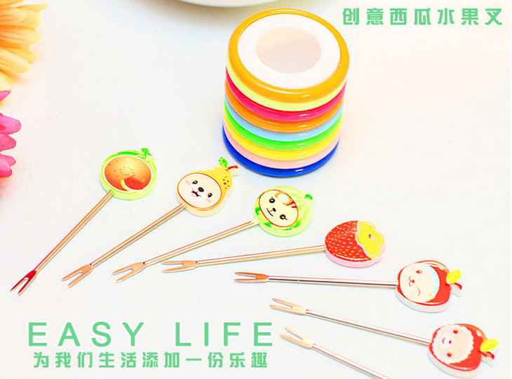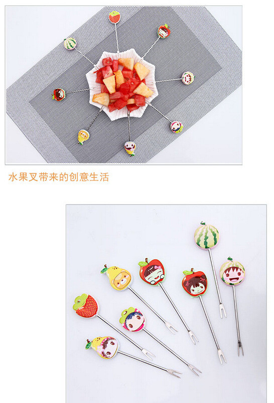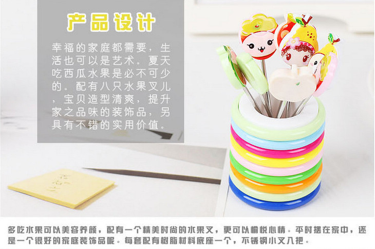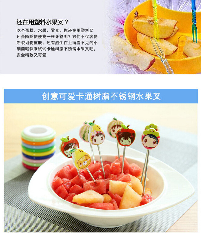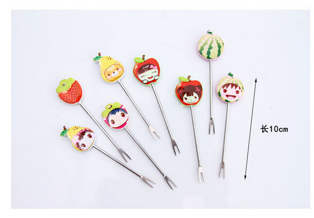 【居家日用】创意可爱卡通树脂不锈钢水果叉(8个装)水果签 创意礼品